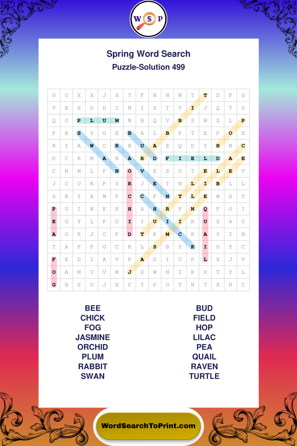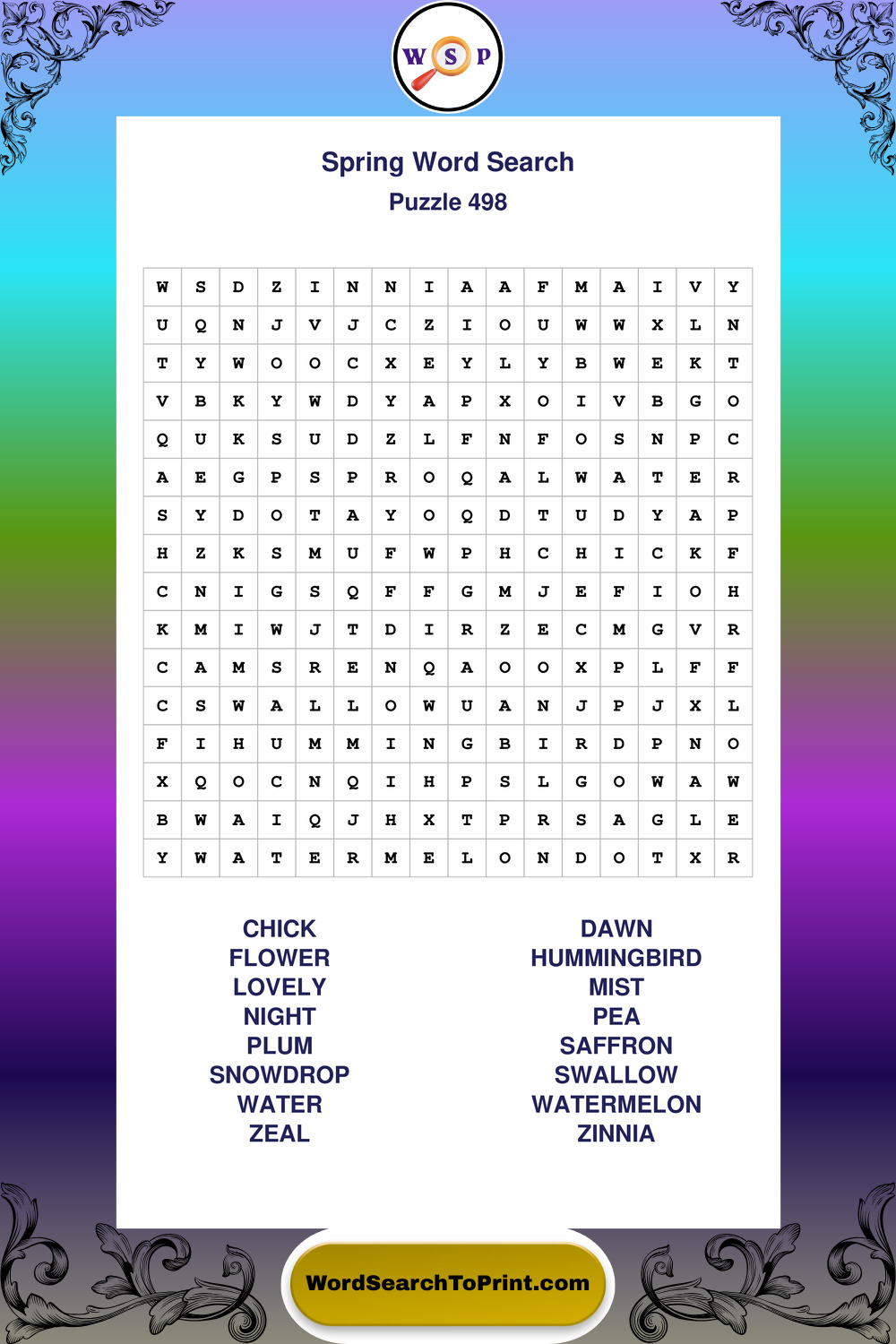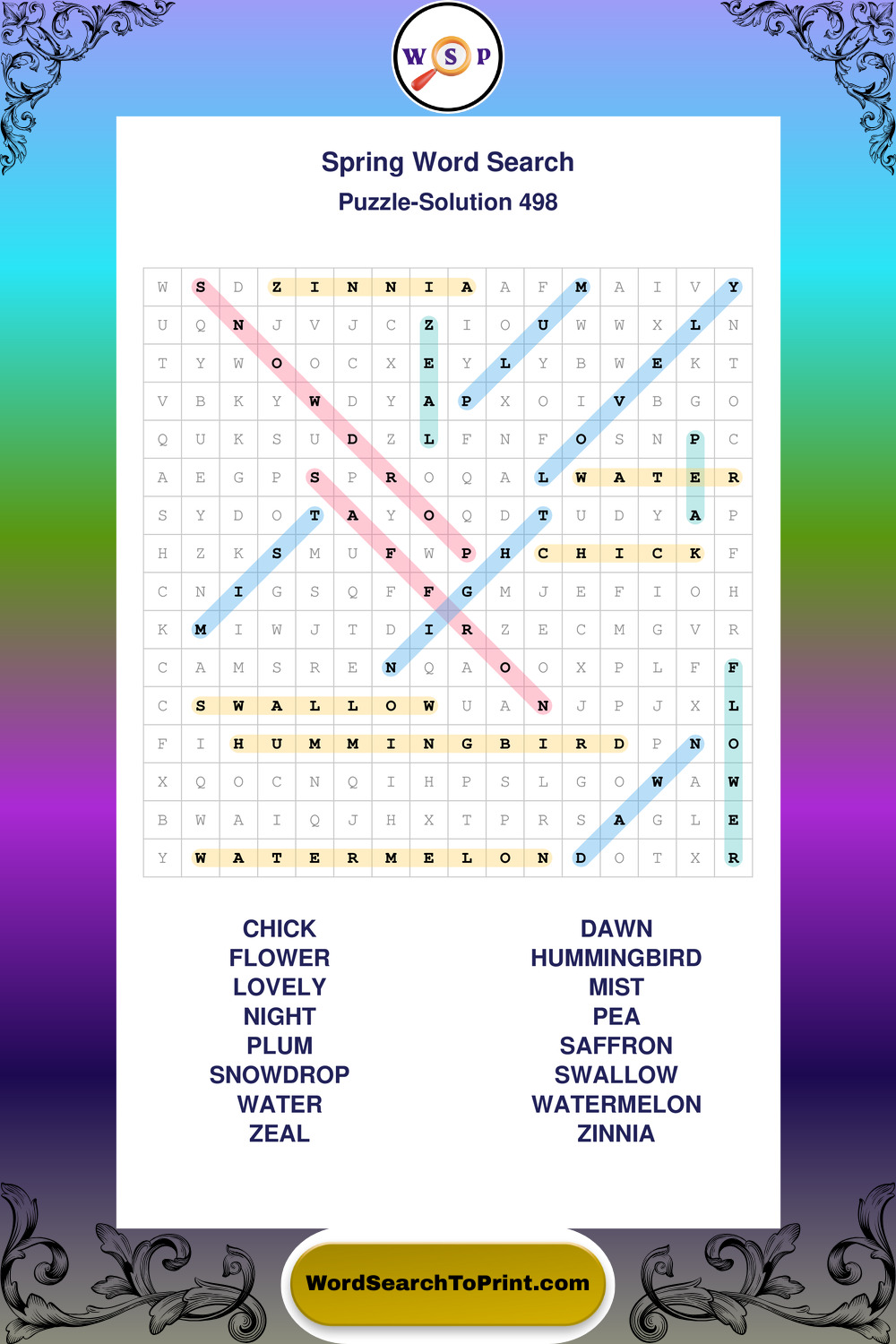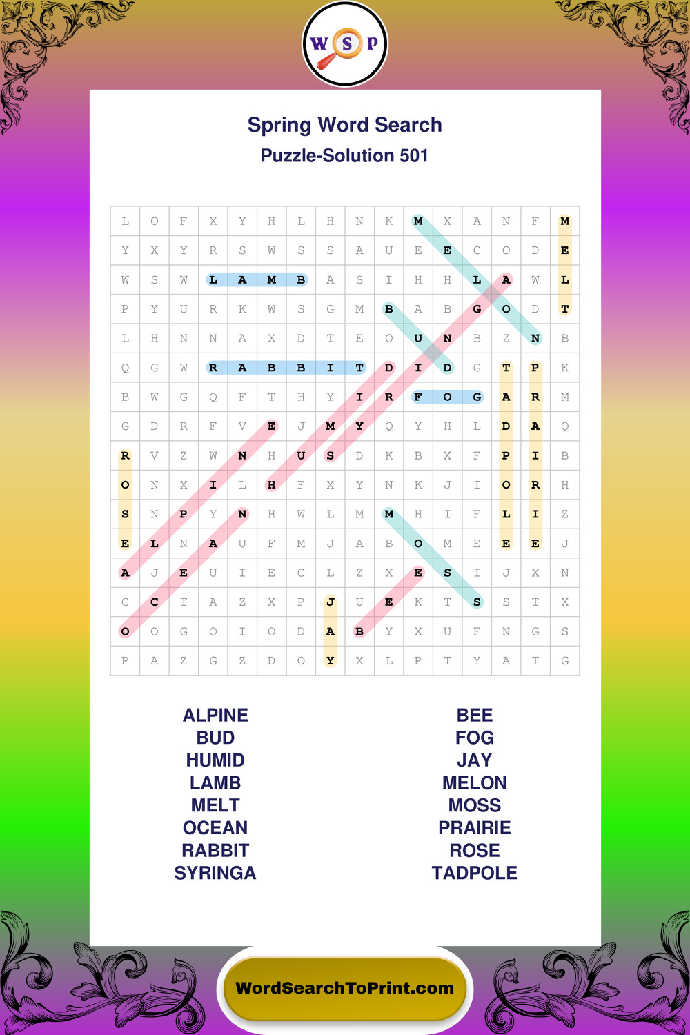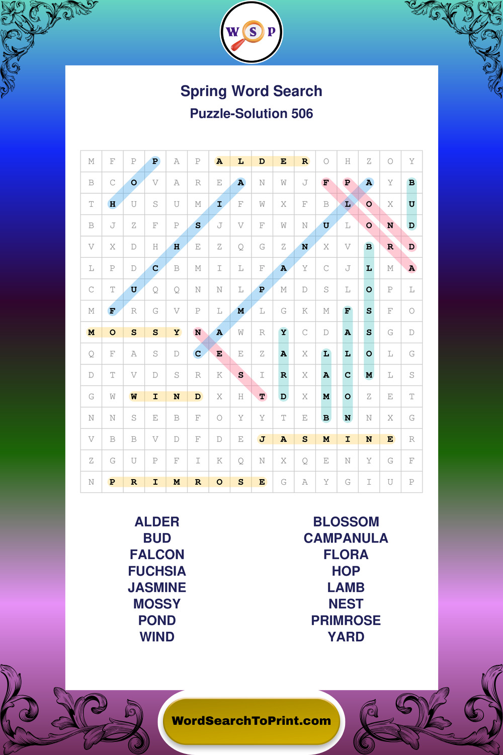 Free Large Print Spring Wordsearches