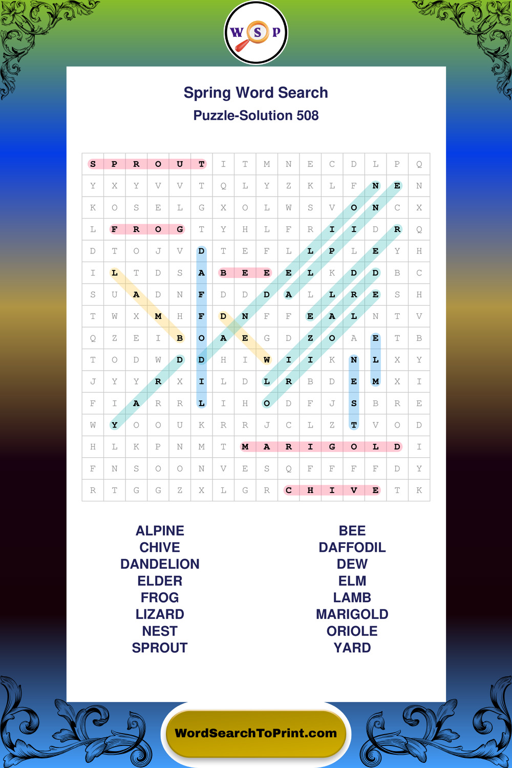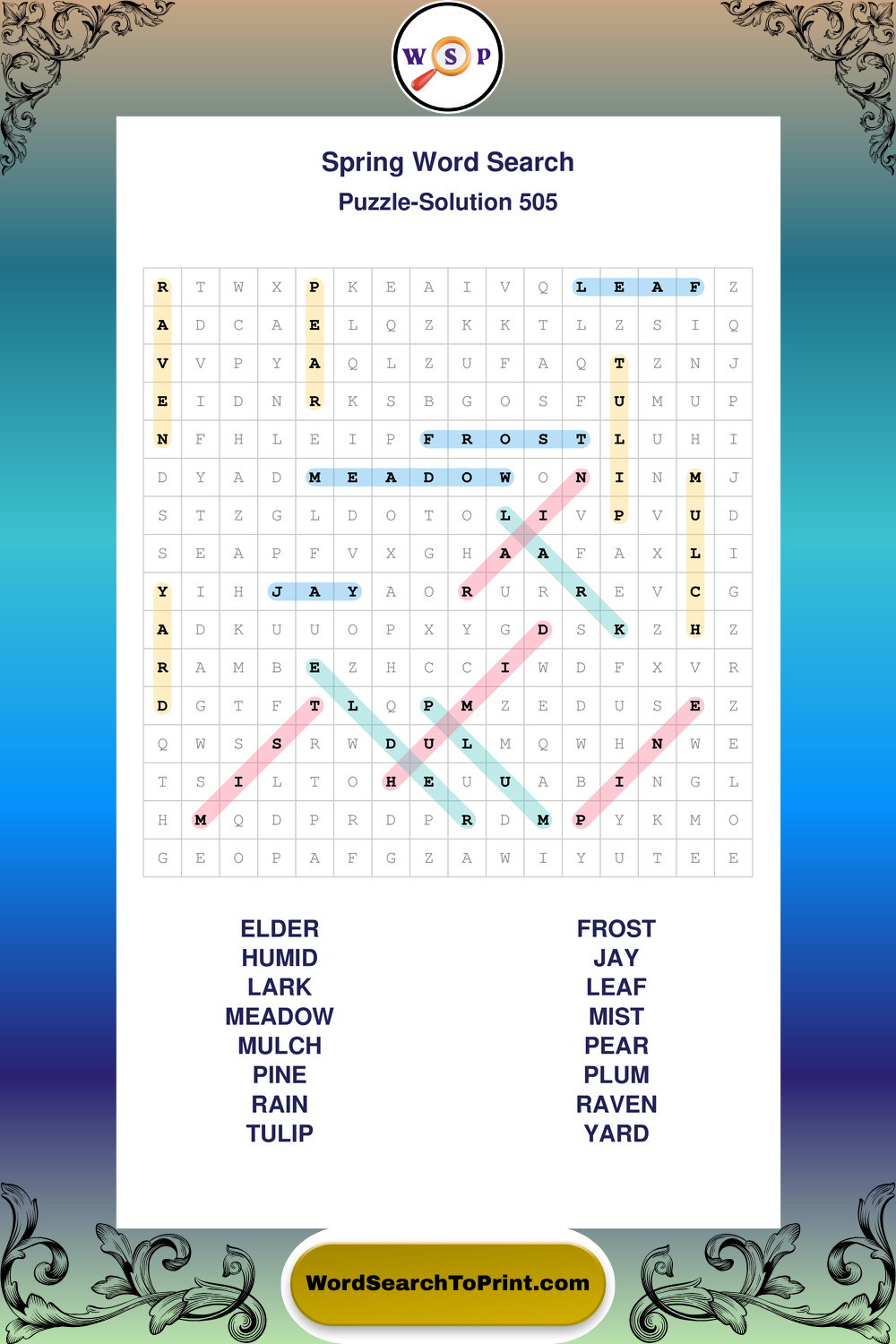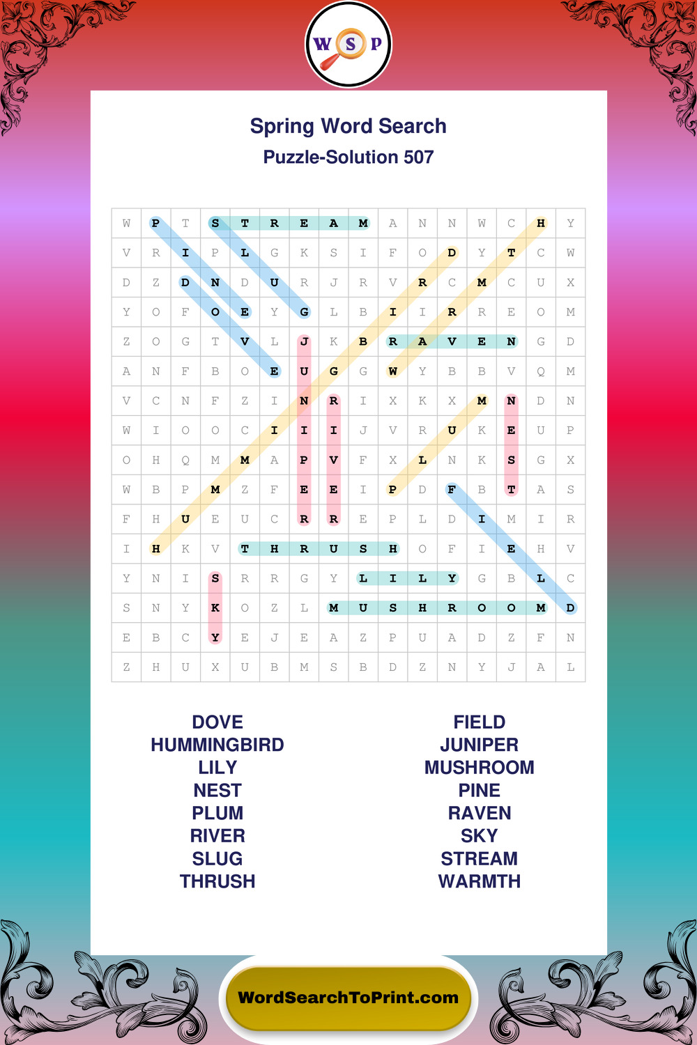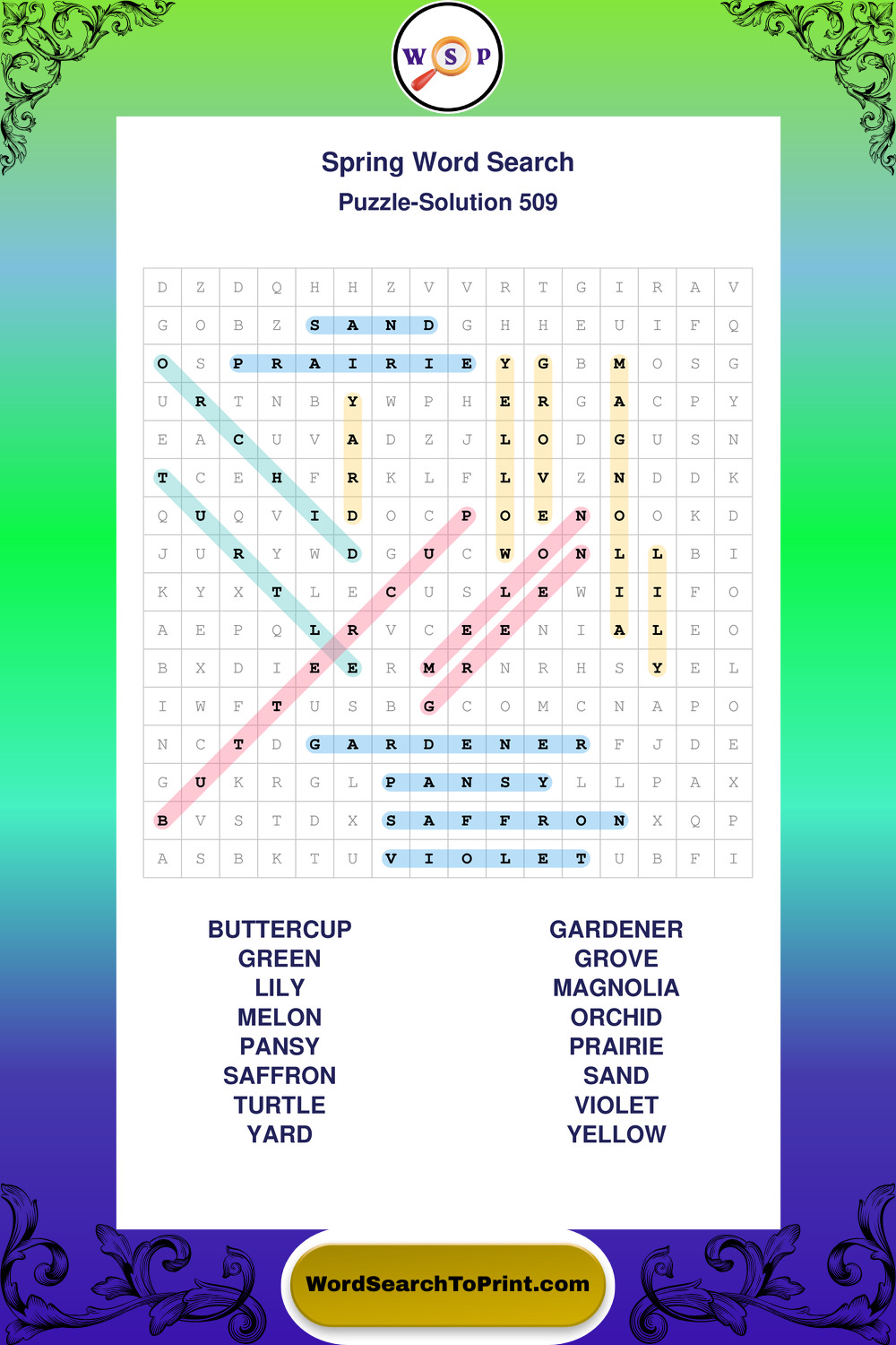 Free Large Print Spring Wordsearches