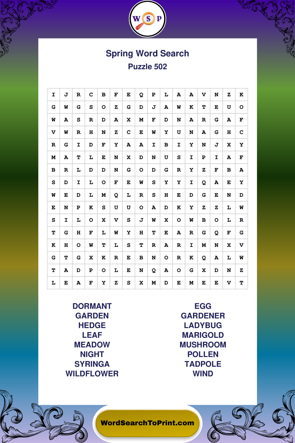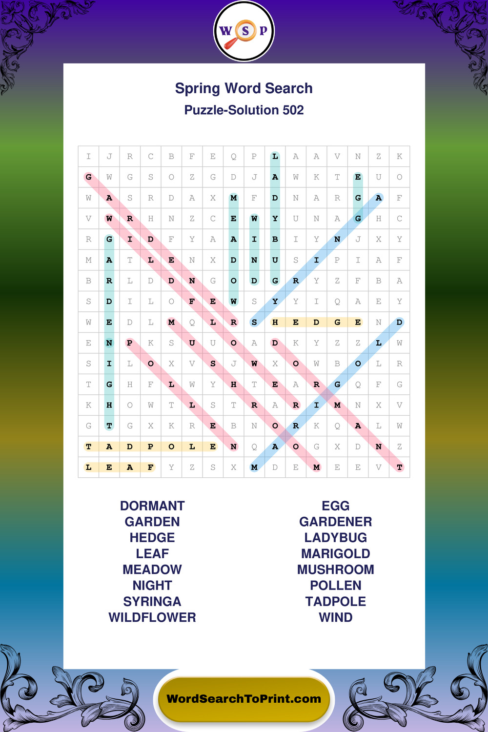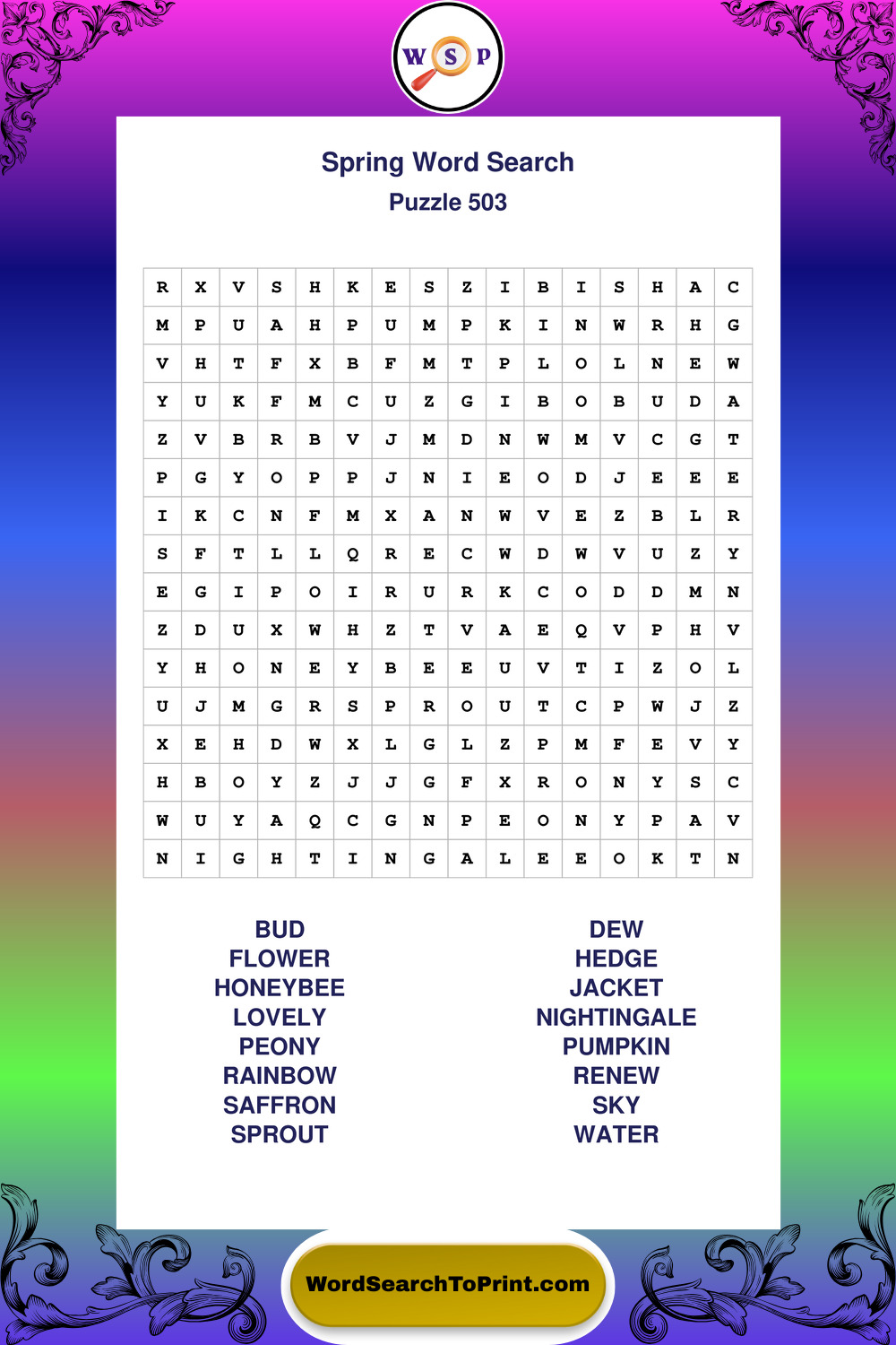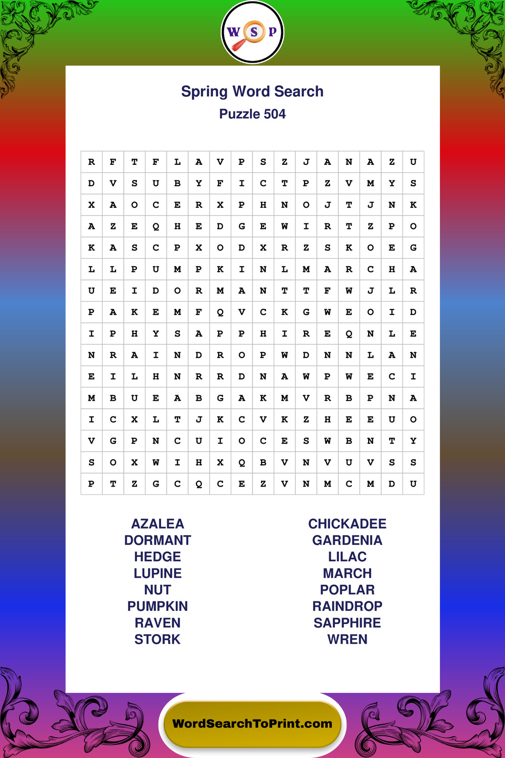 Printable Spring Wordsearch Puzzles