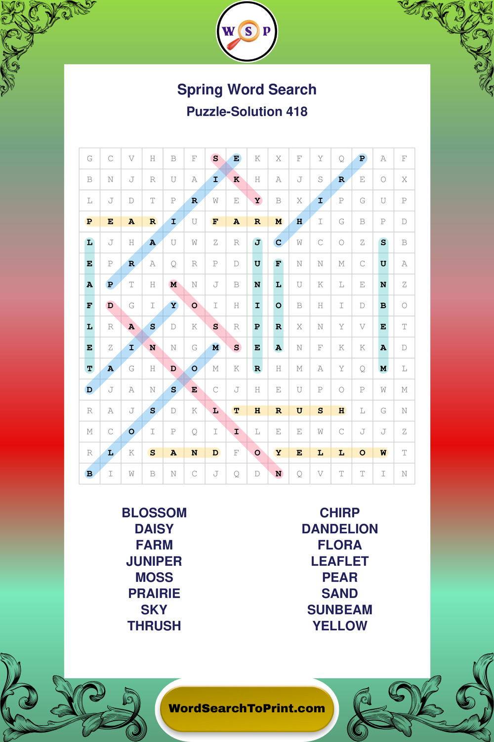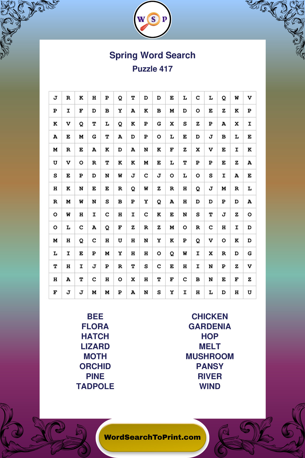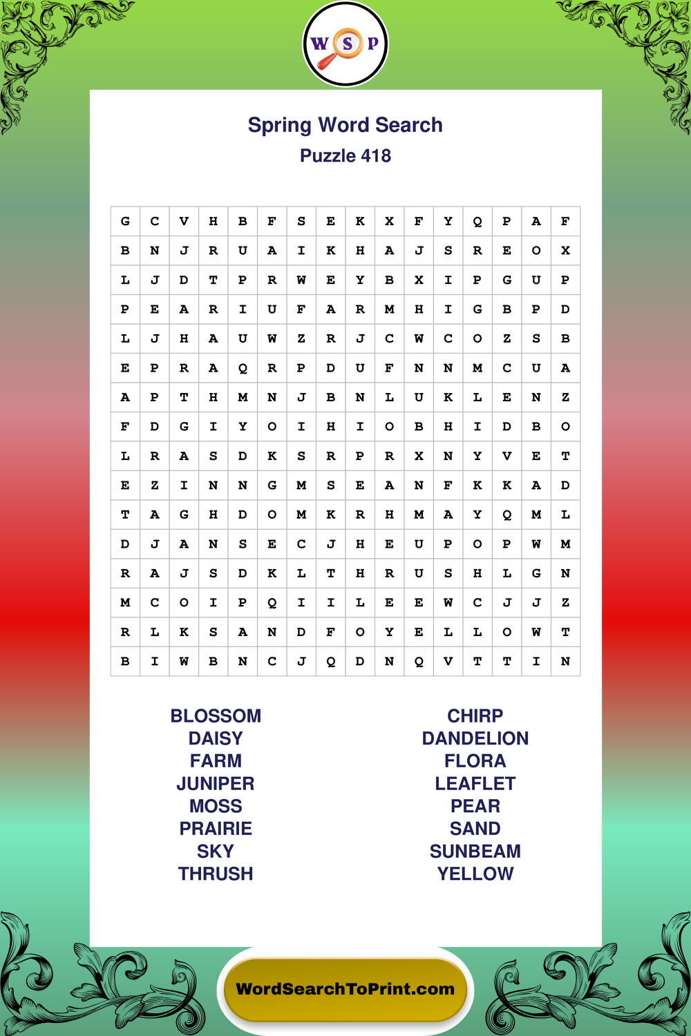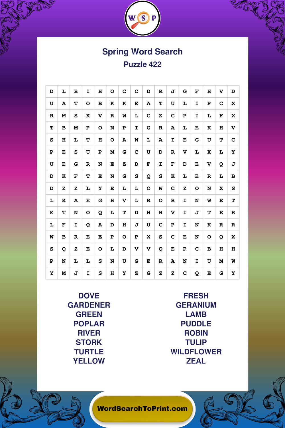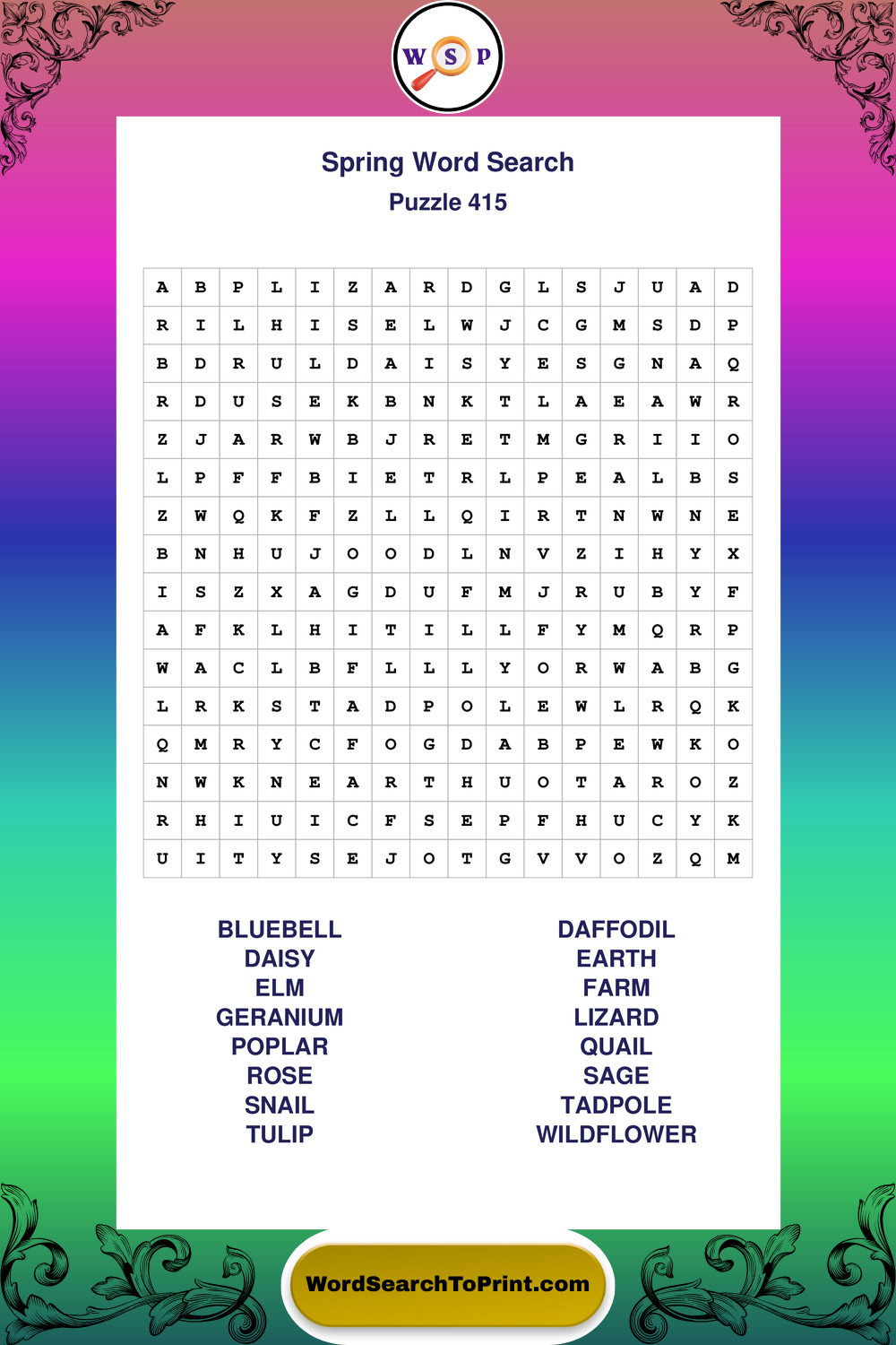 Free Large Print Spring Wordsearches
