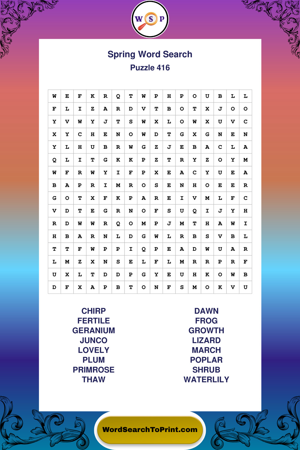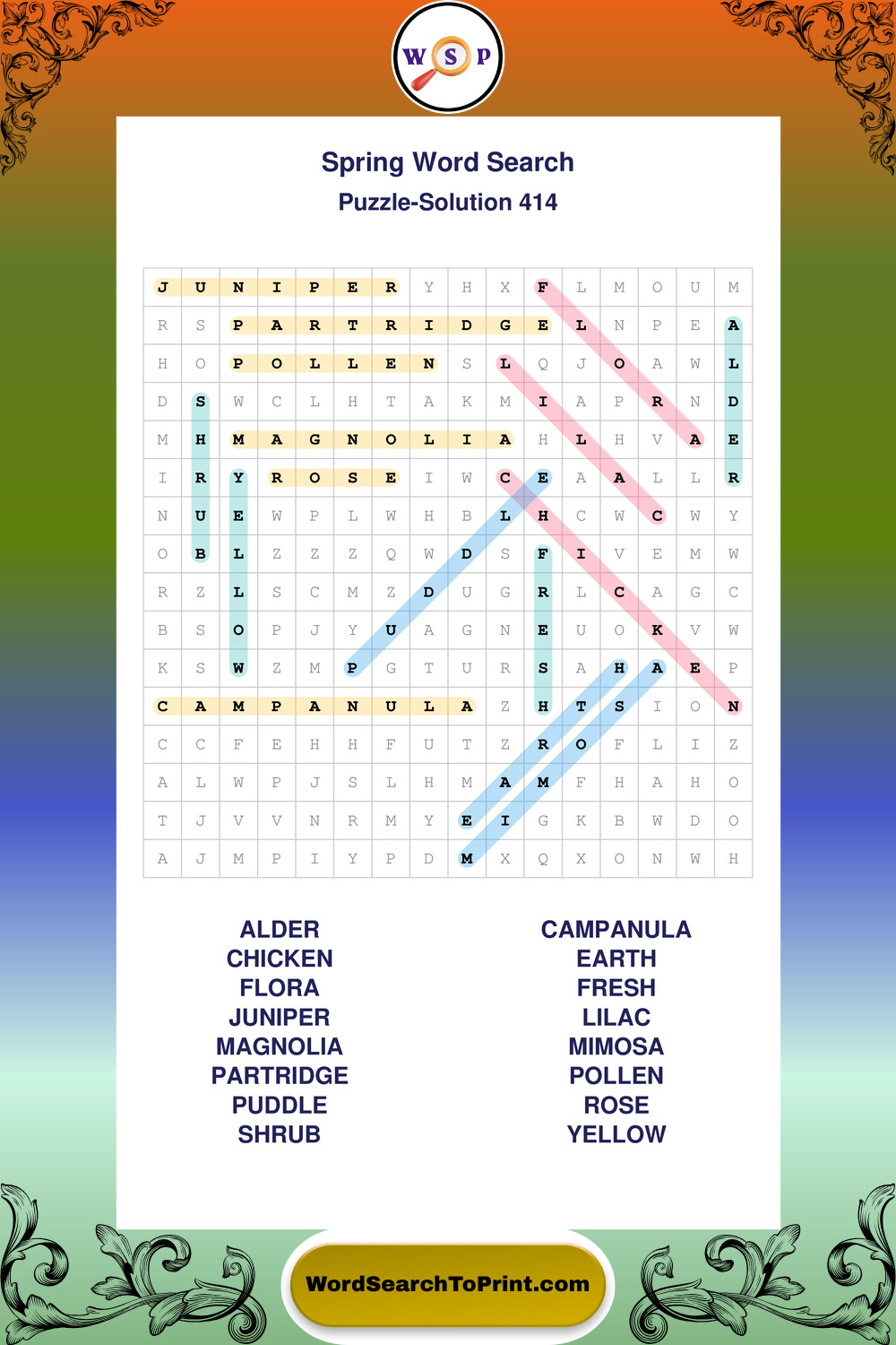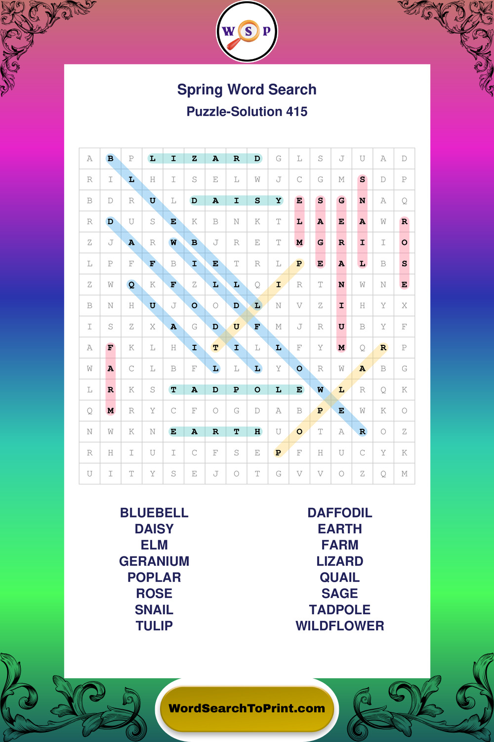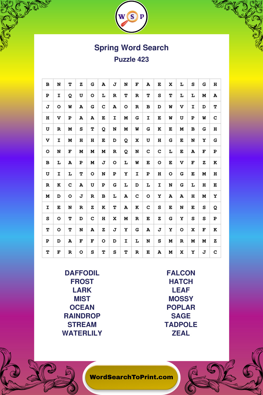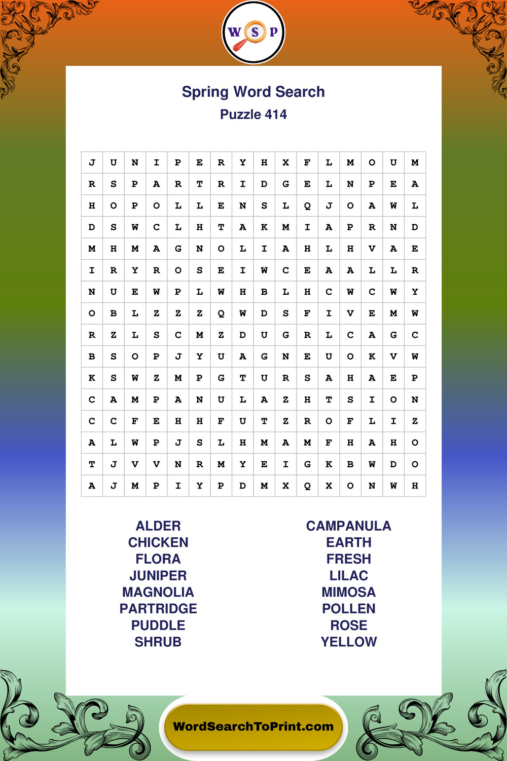 Free Large Print Spring Wordsearches
