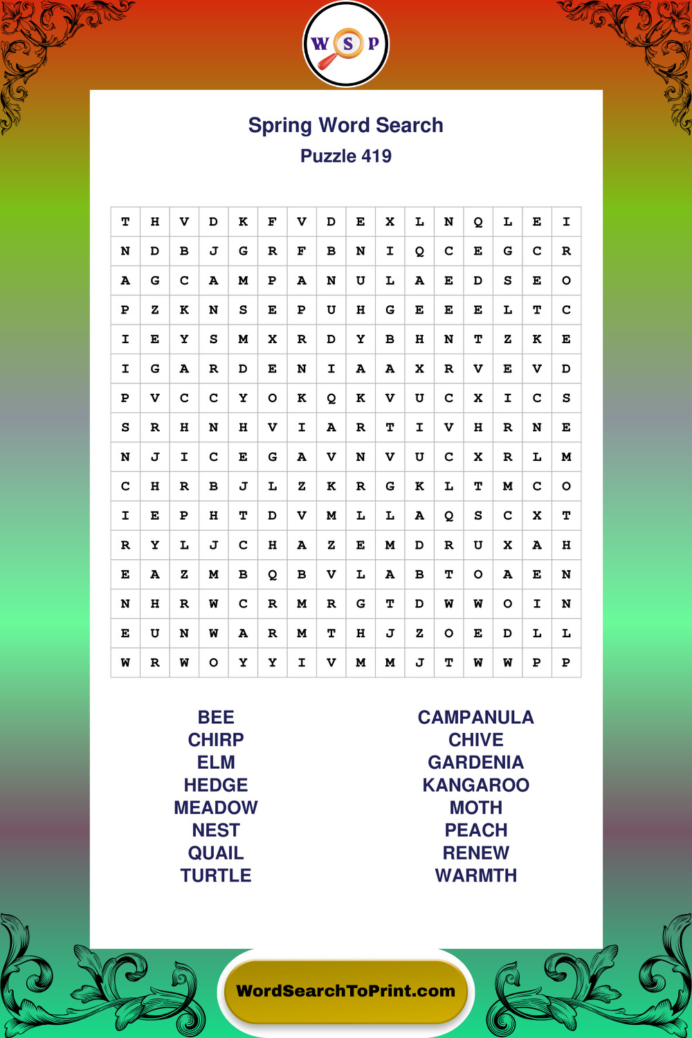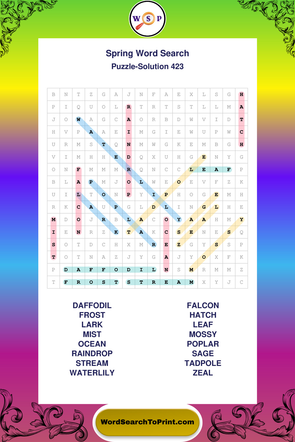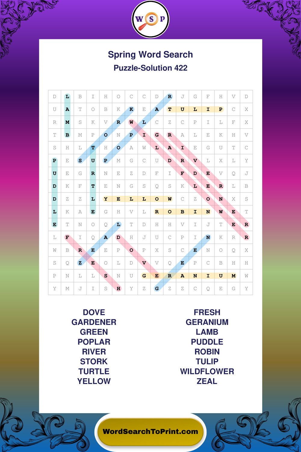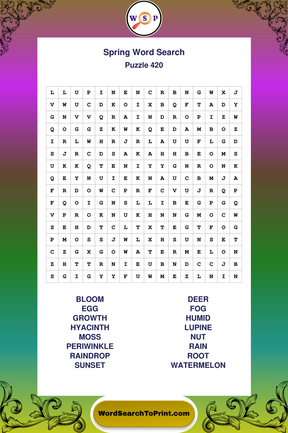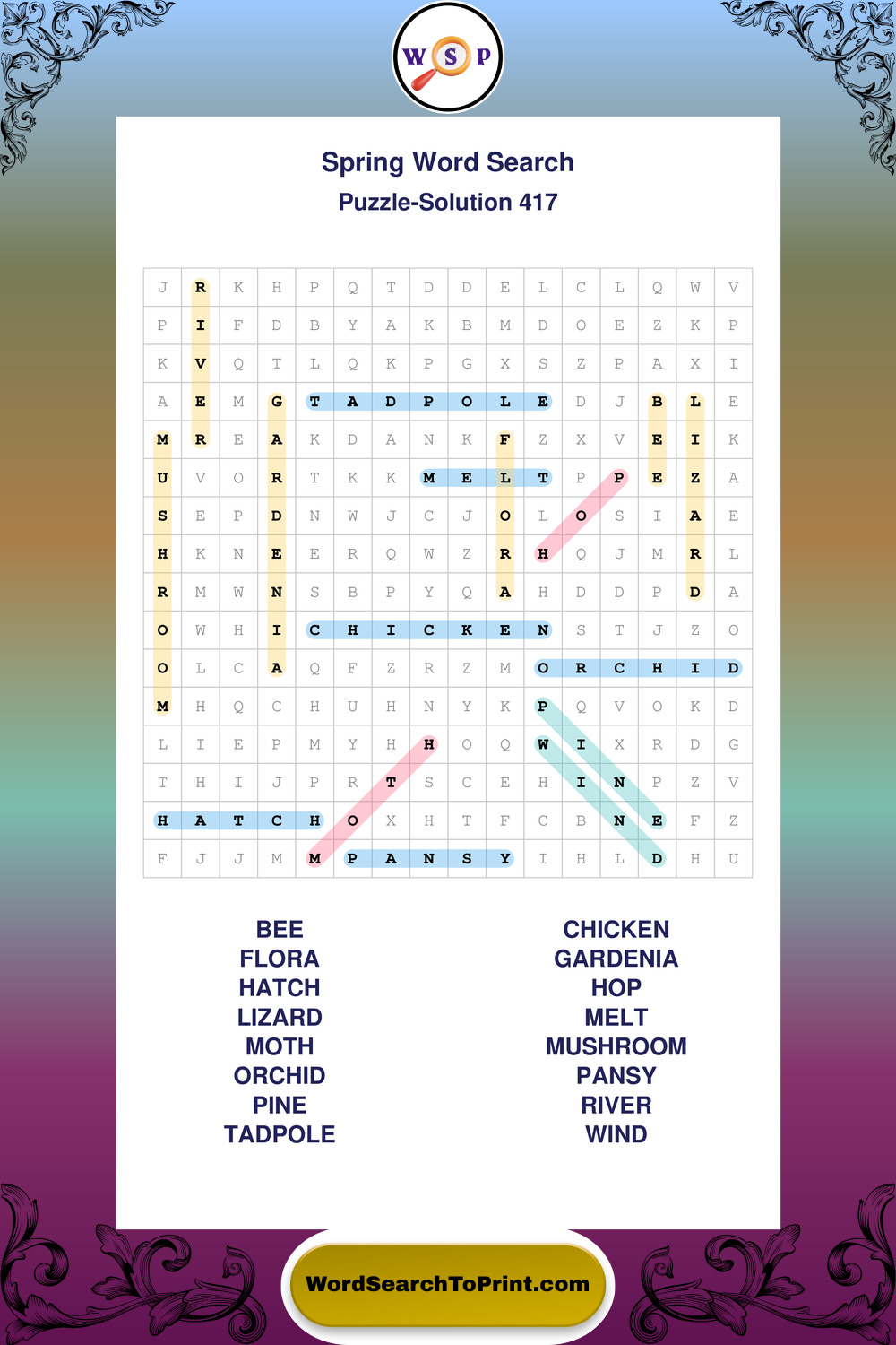Free Large Print Spring Wordsearches