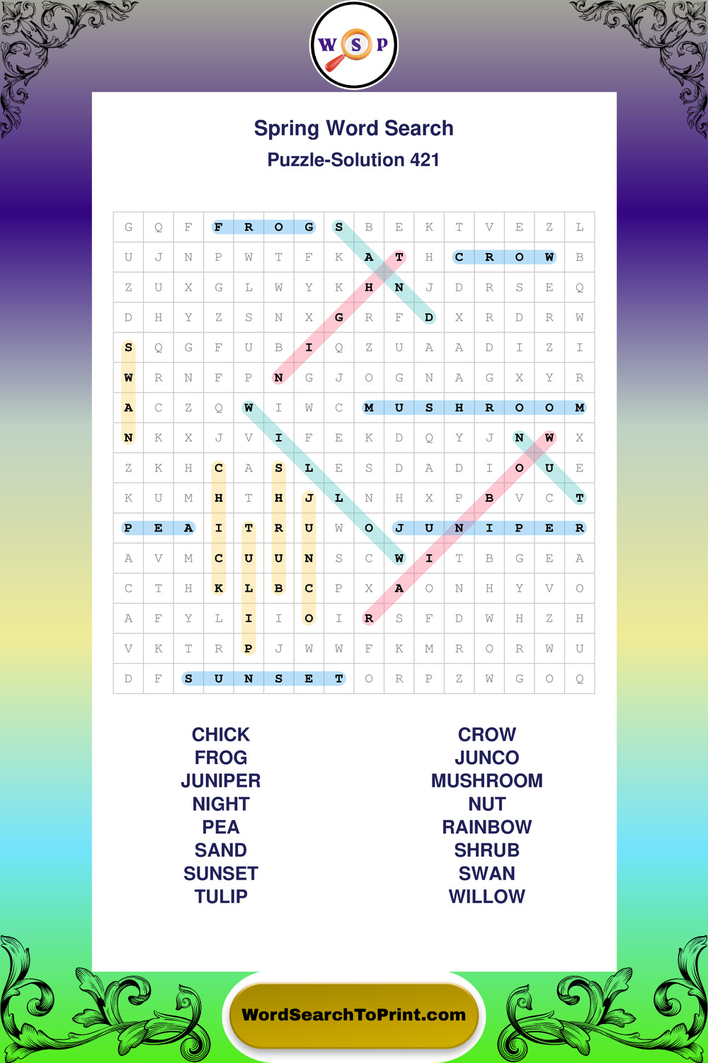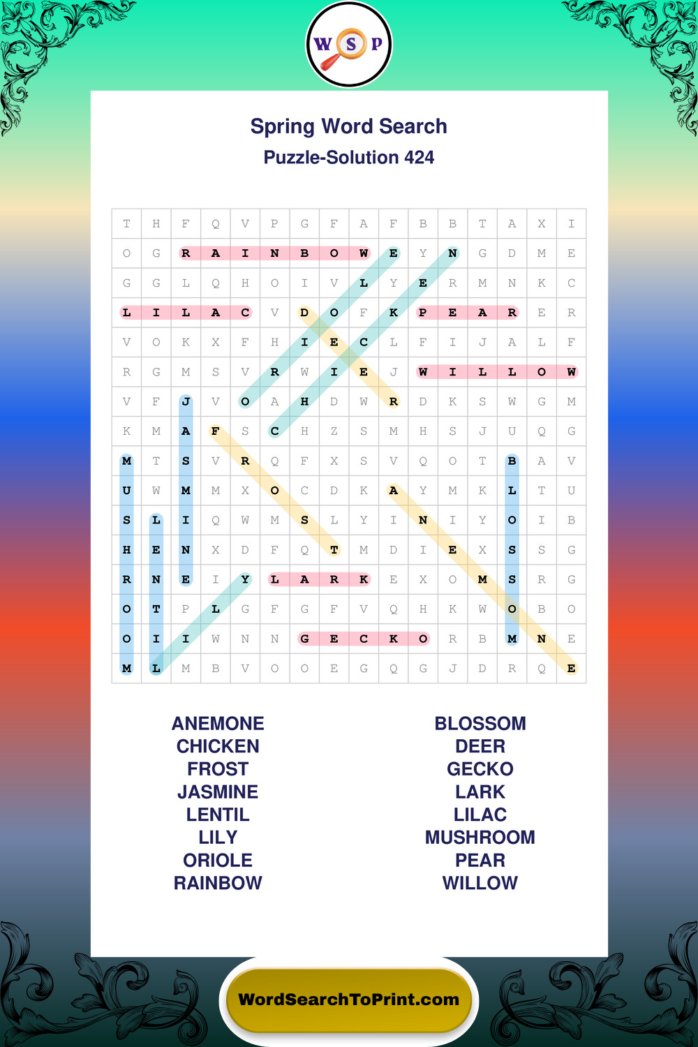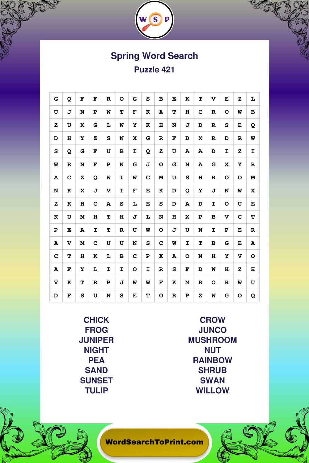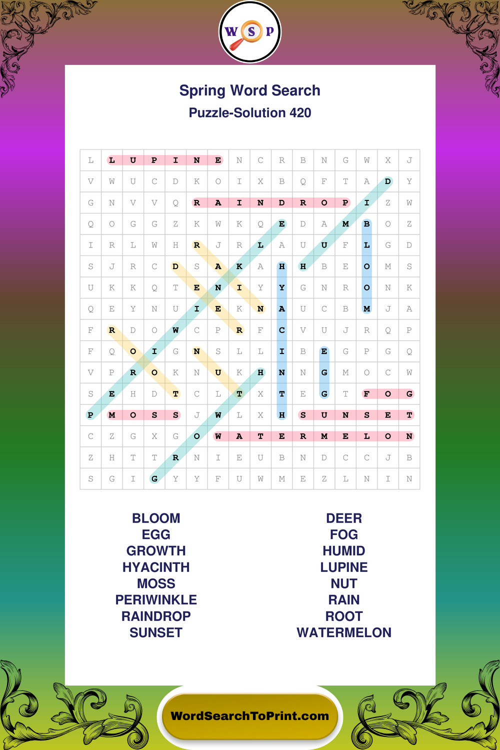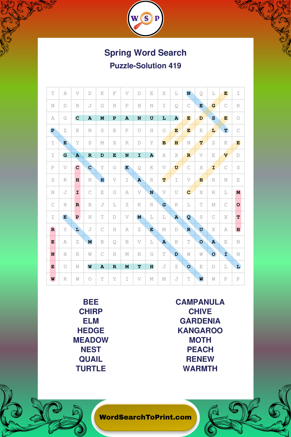 Free Large Print Spring Wordsearches