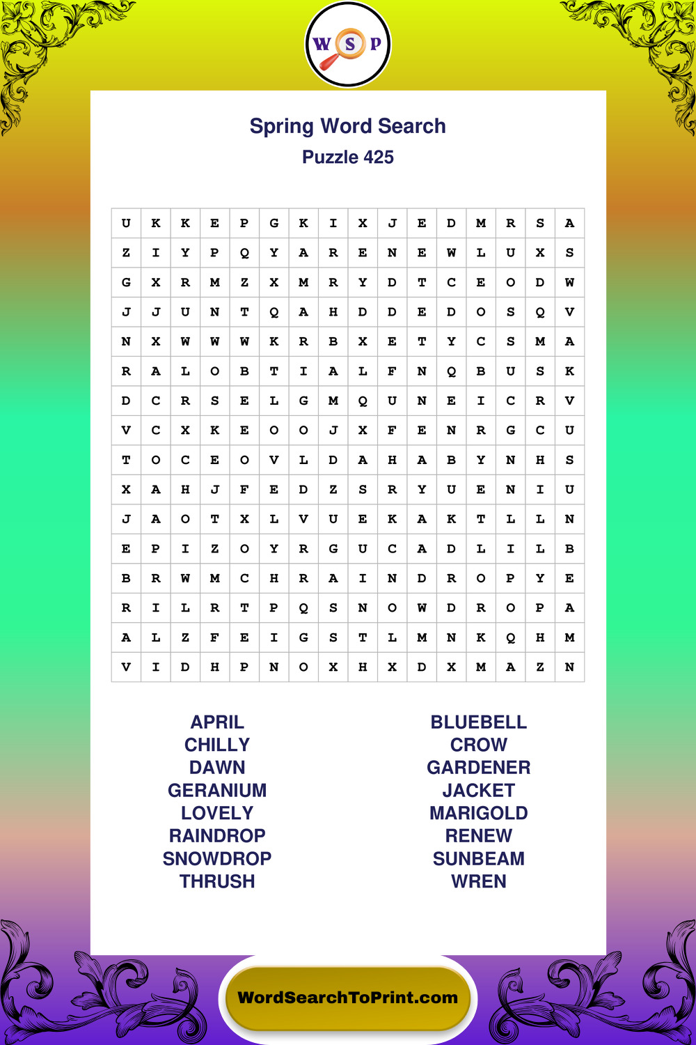 Printable Spring Wordsearch Puzzles