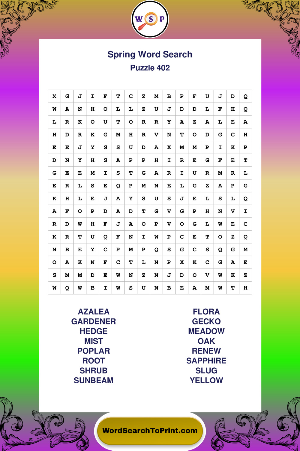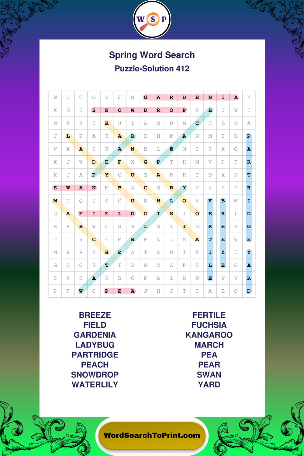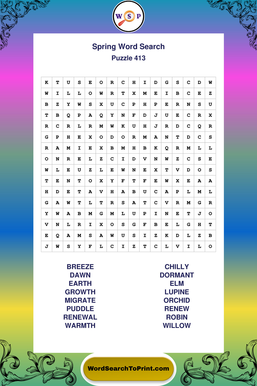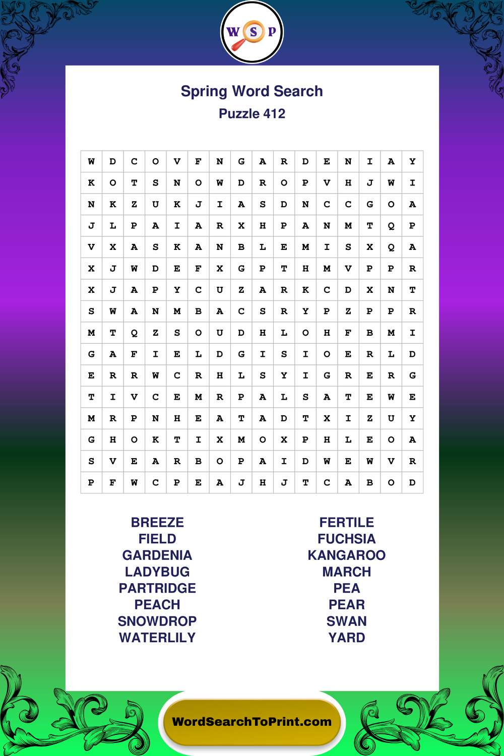 Free Large Print Spring Wordsearches