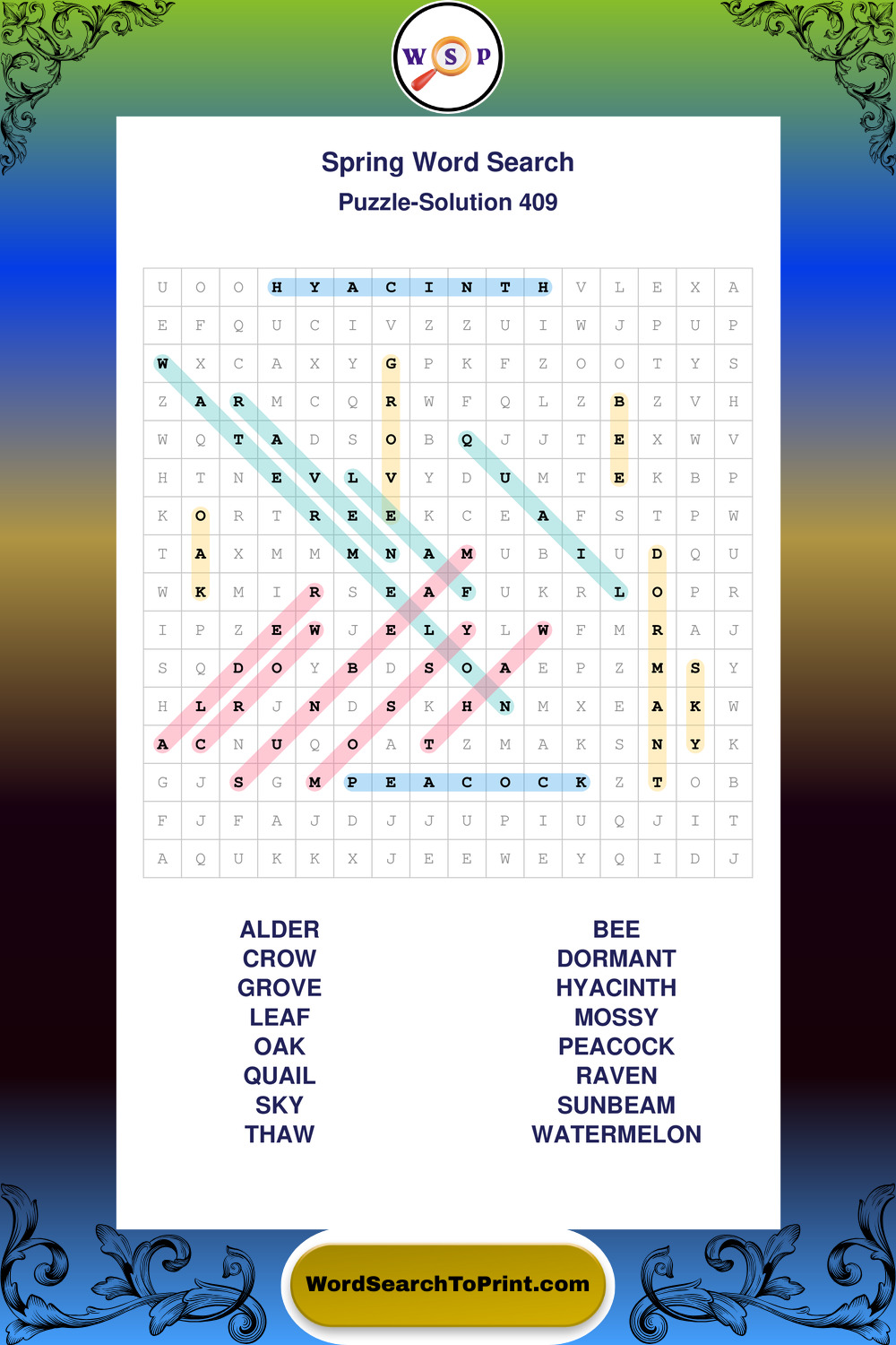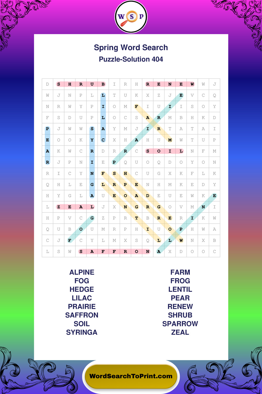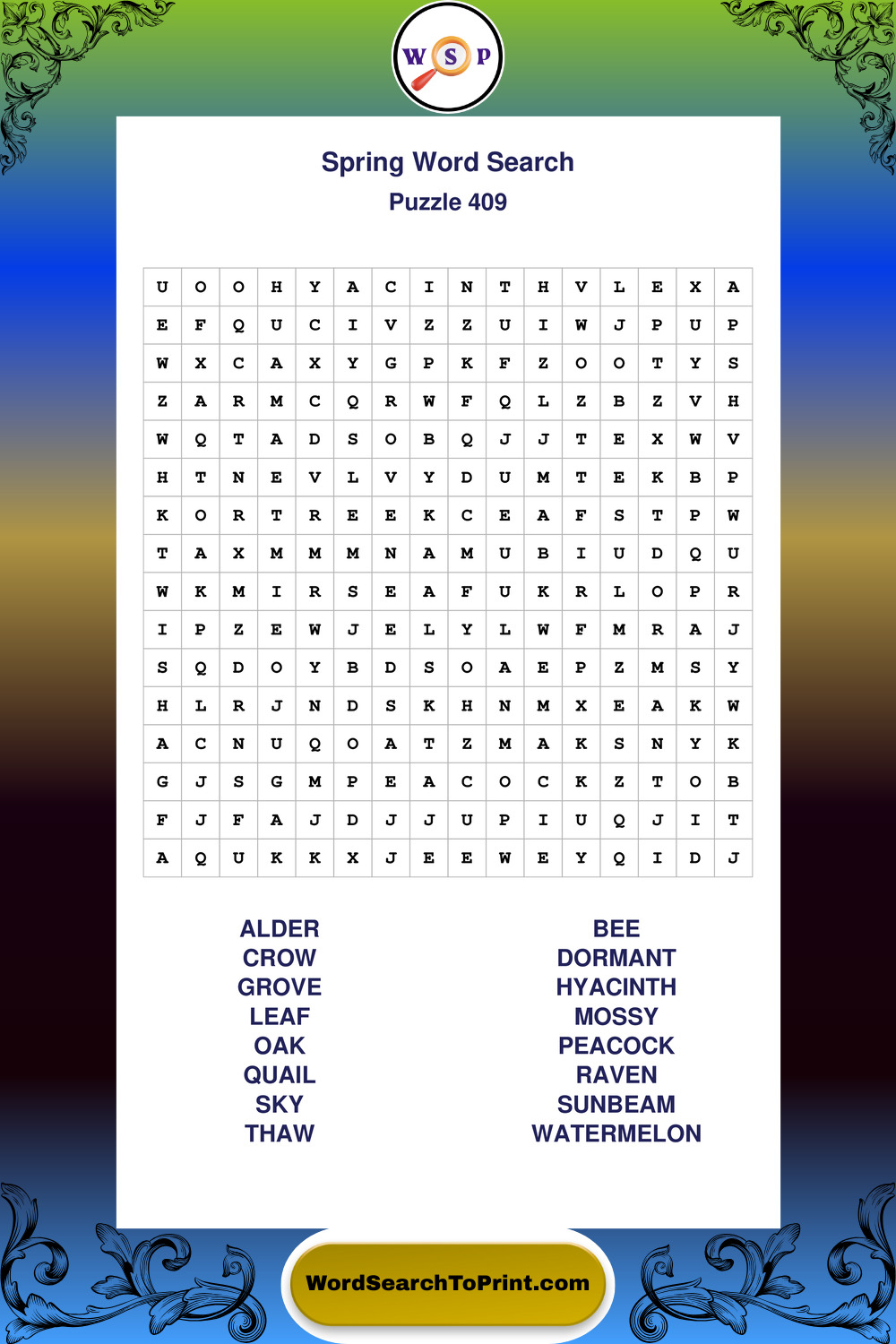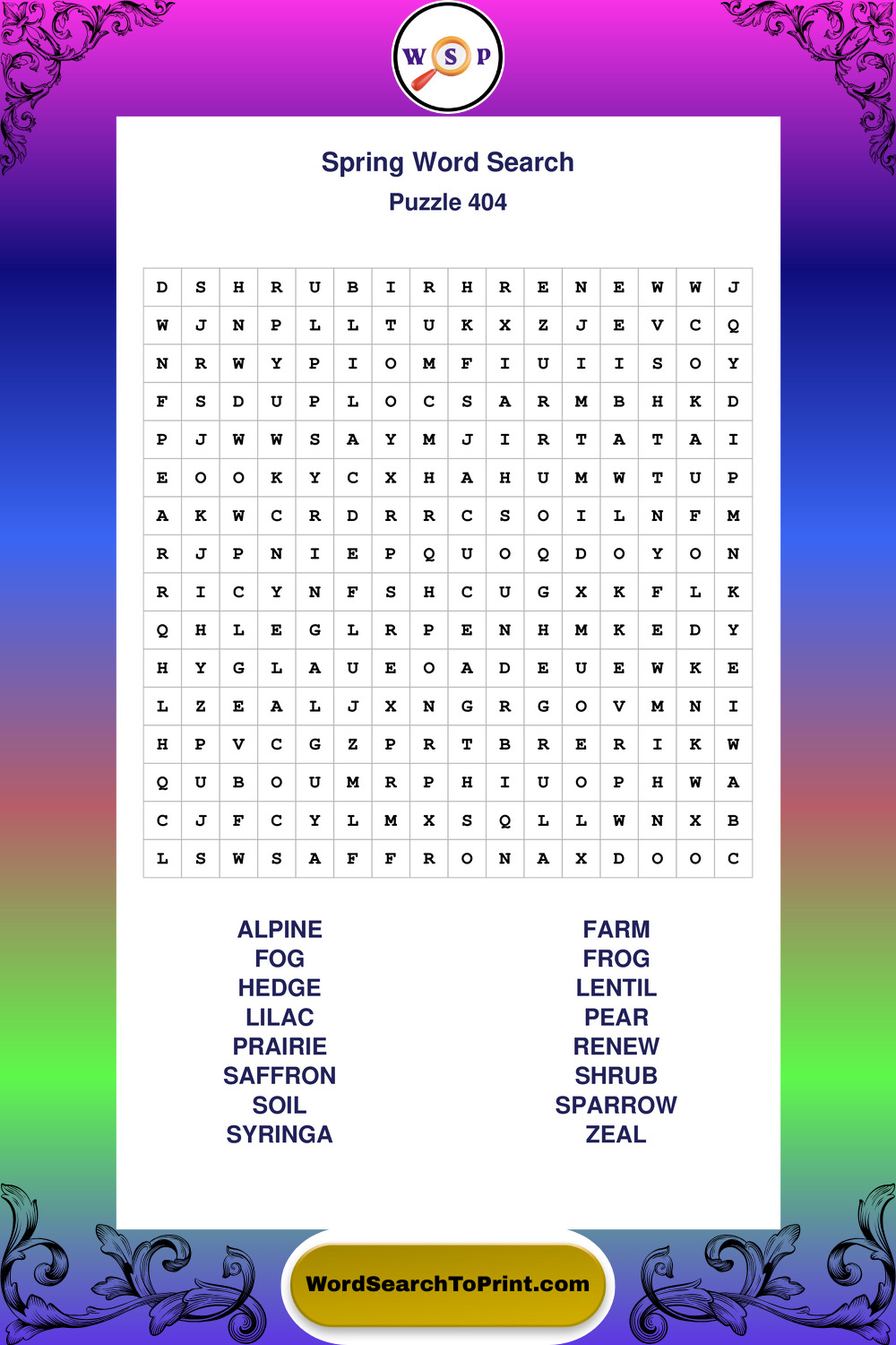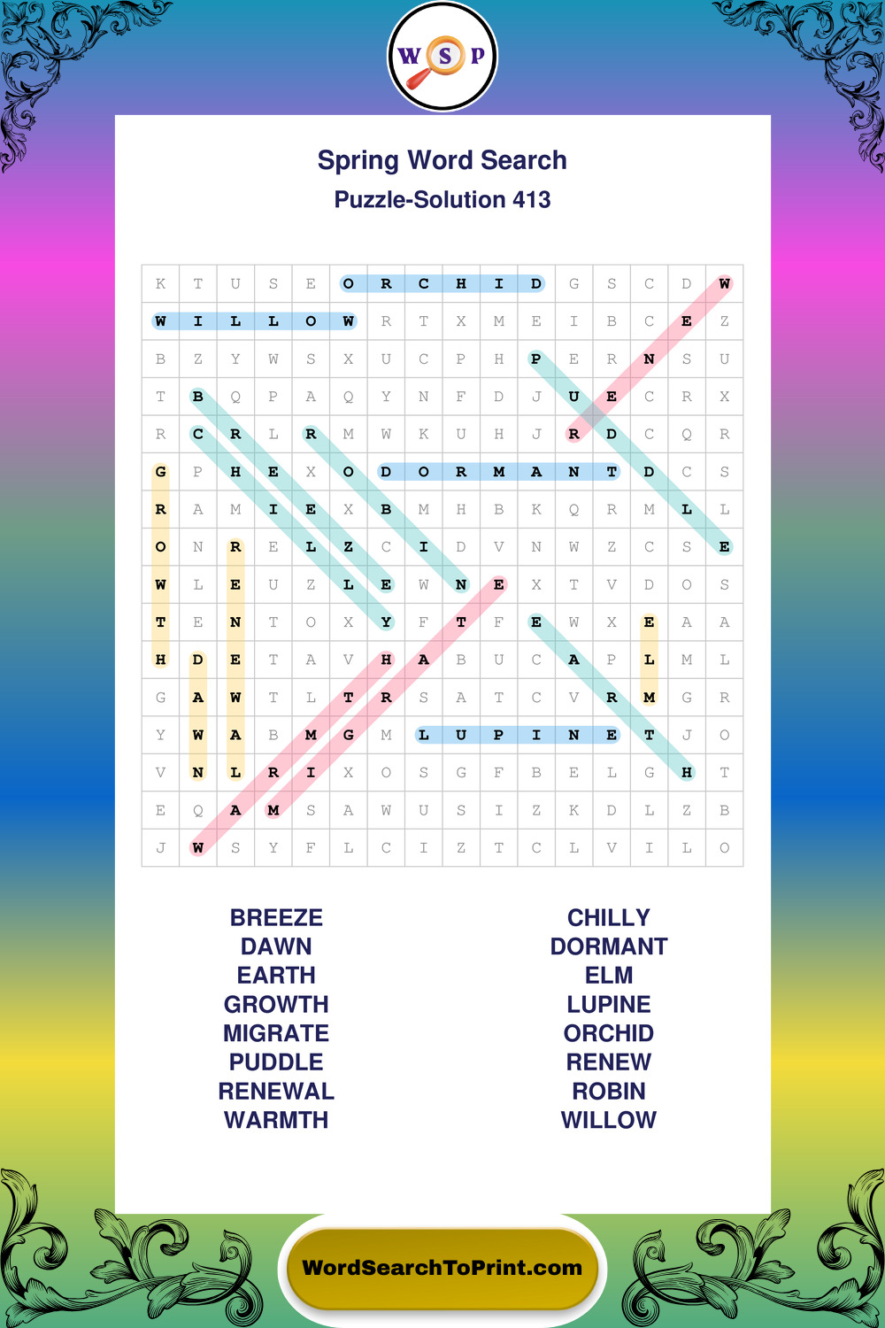 Free Large Print Spring Wordsearches