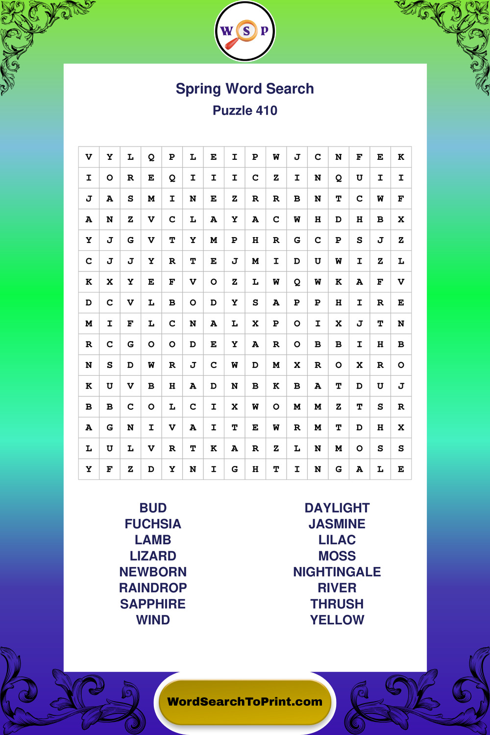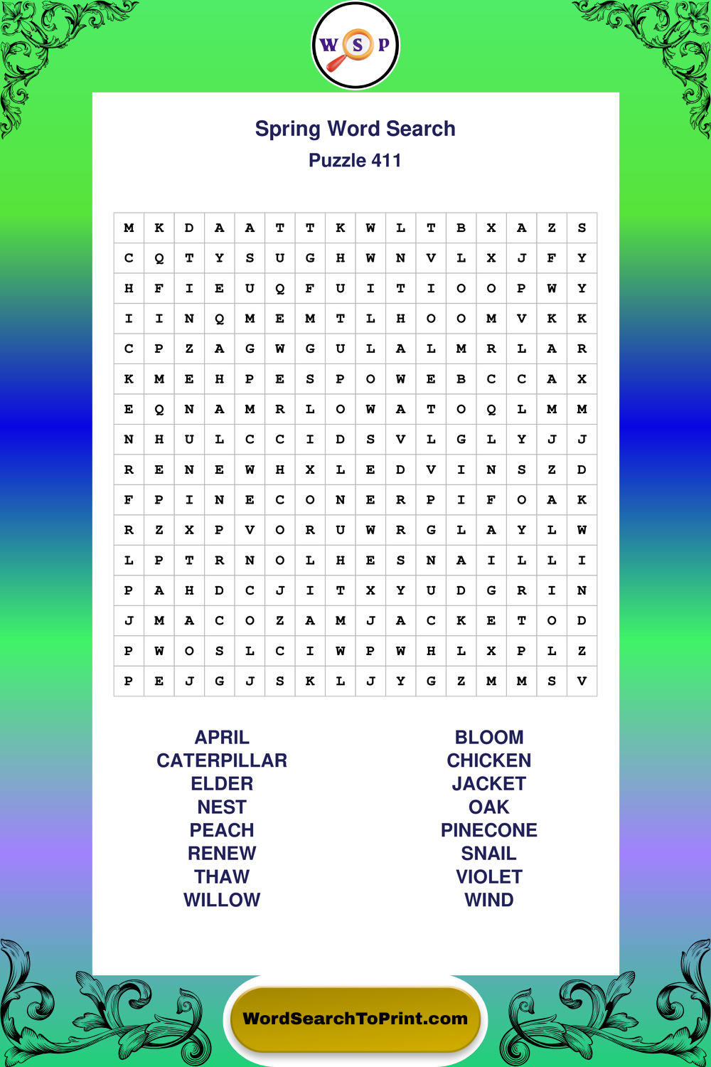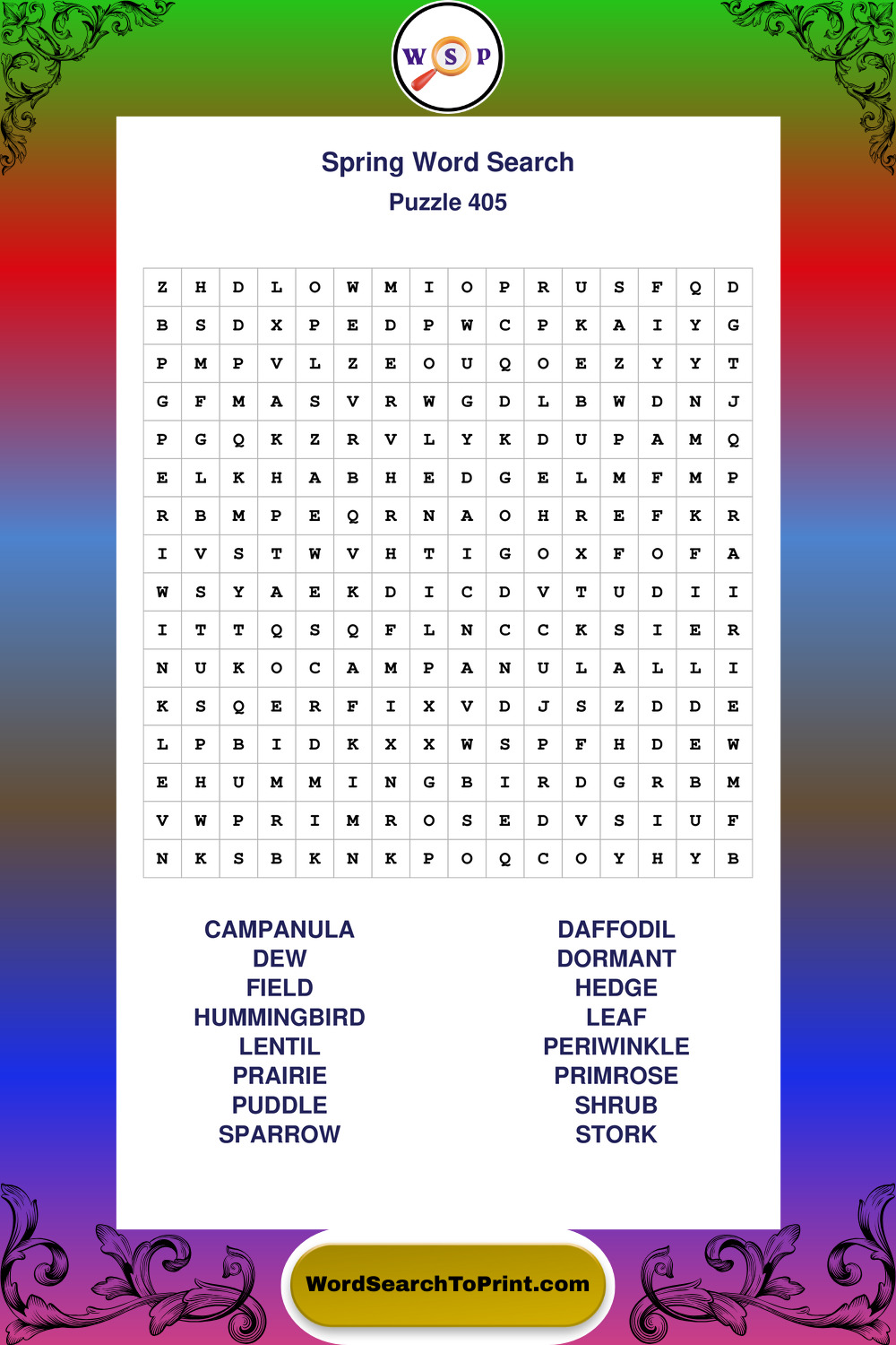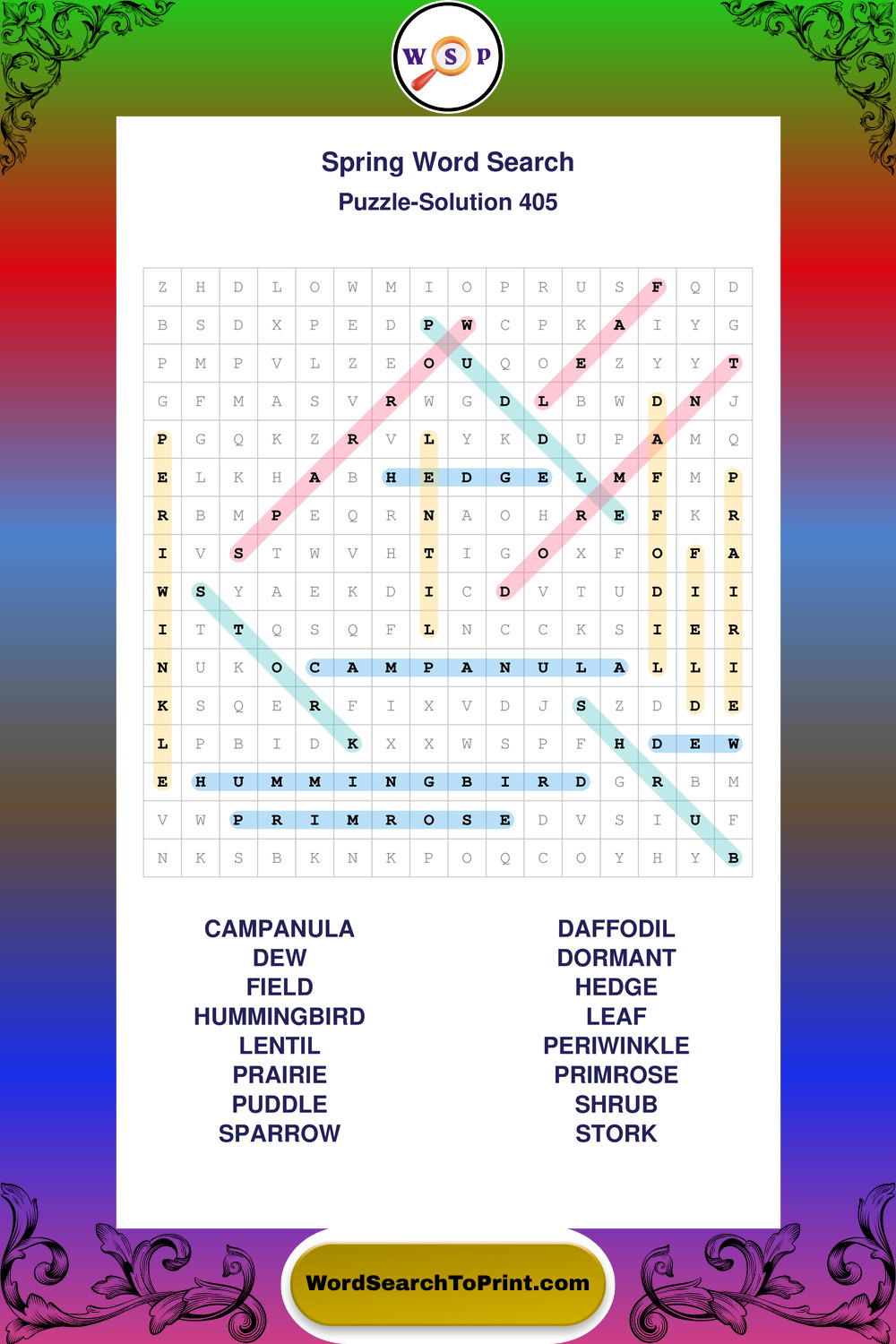 Printable Spring Wordsearch Puzzles