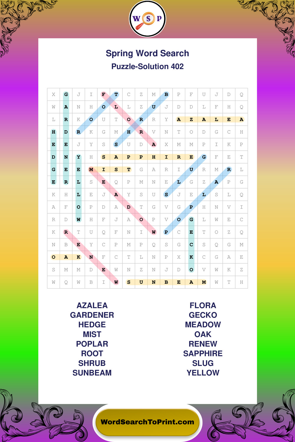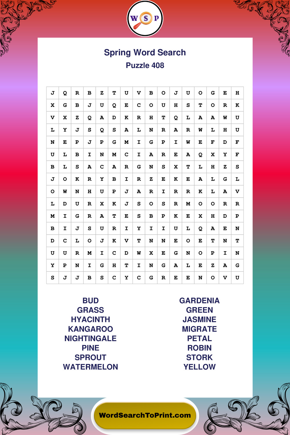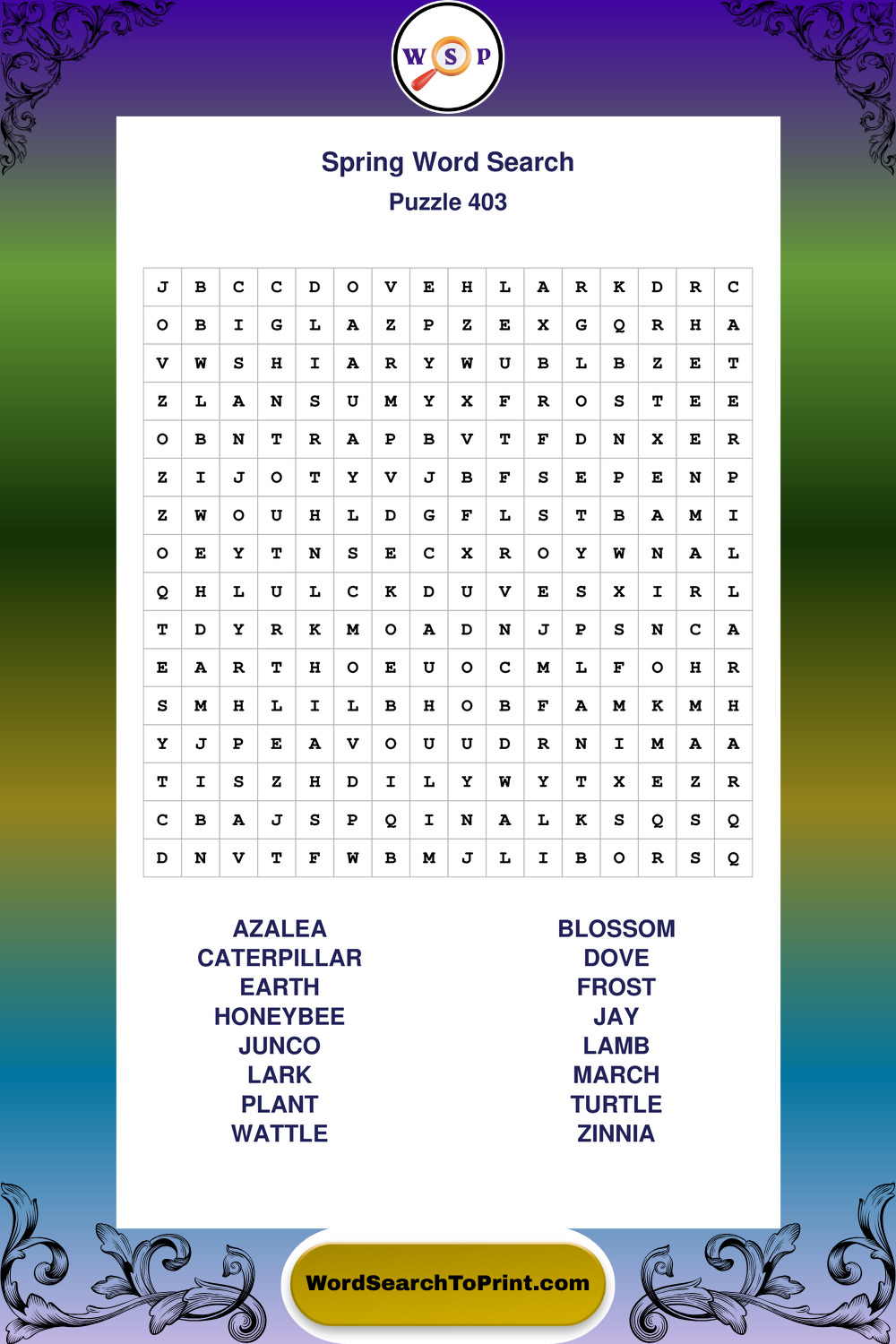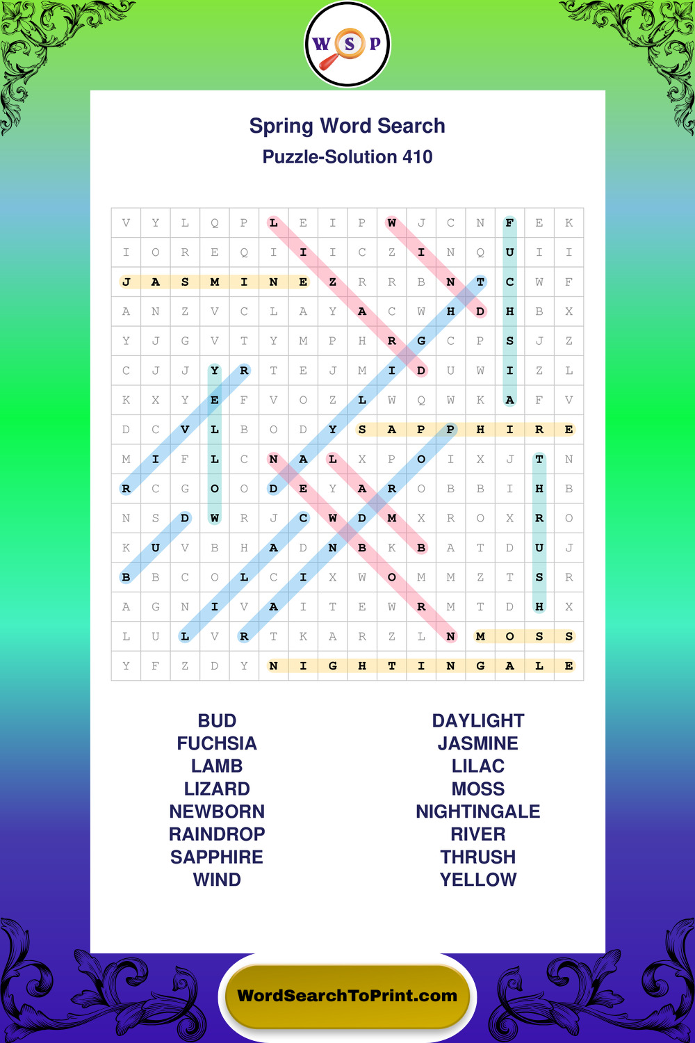 Printable Spring Wordsearch Puzzles