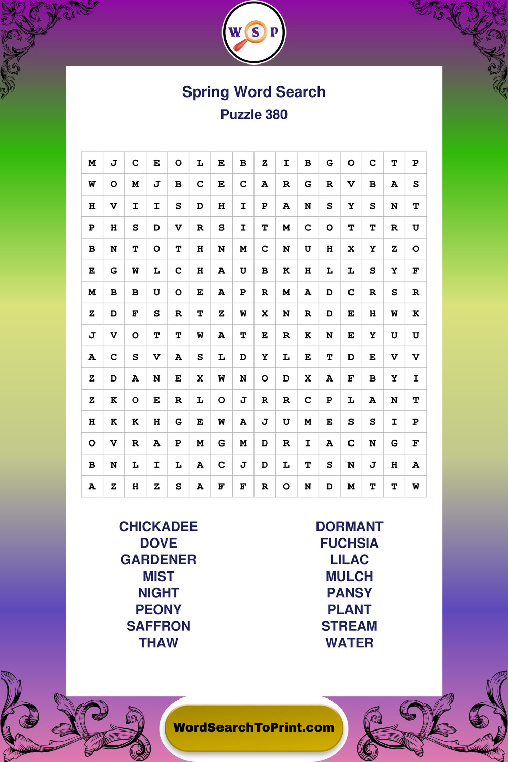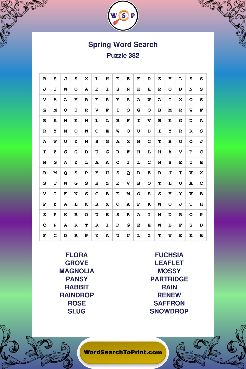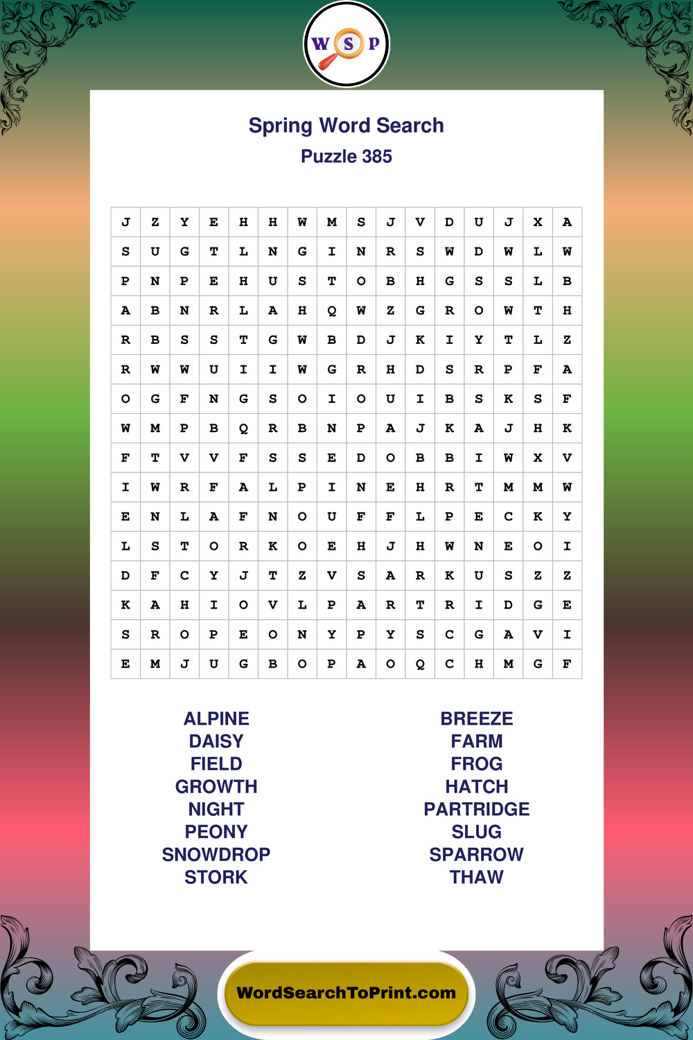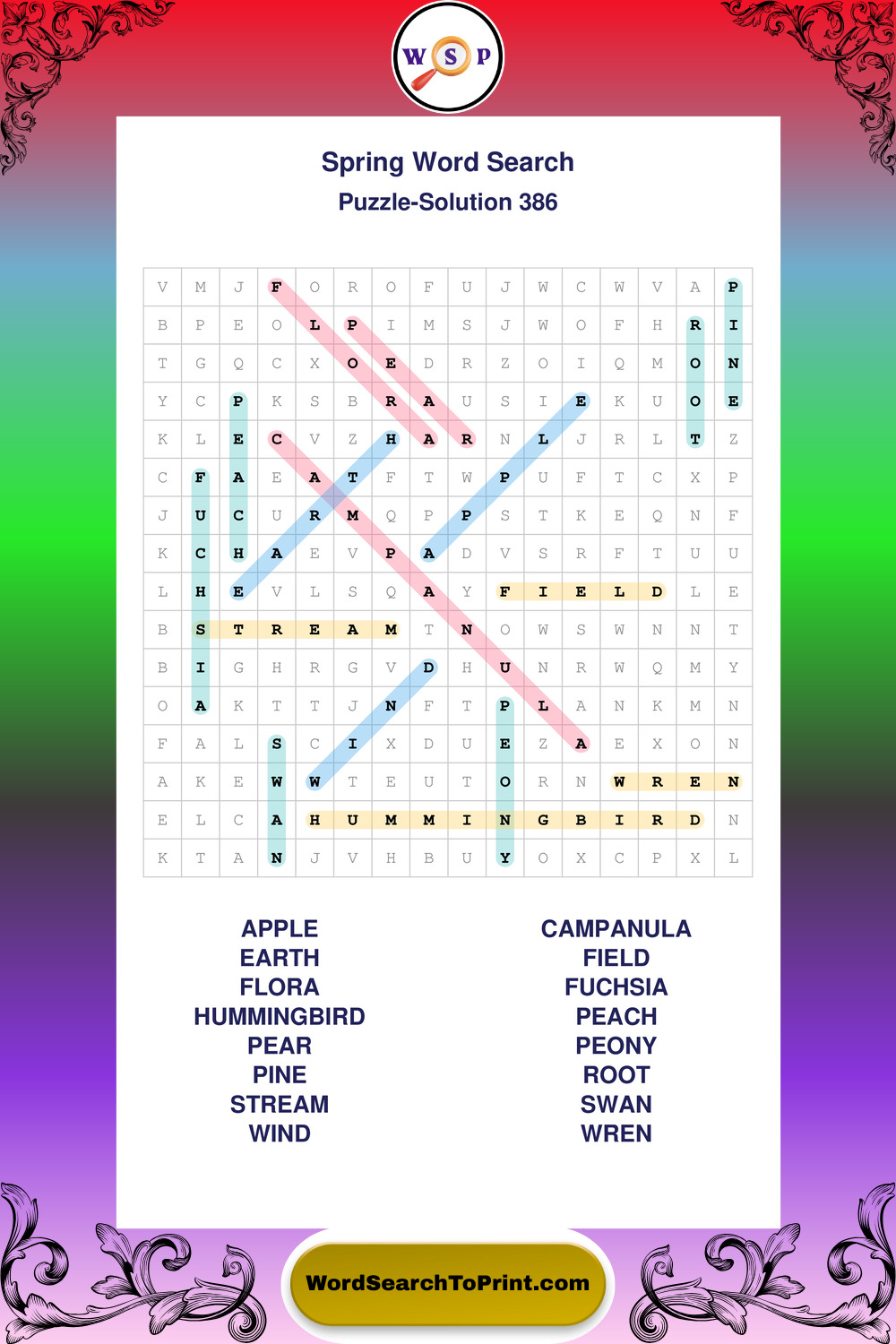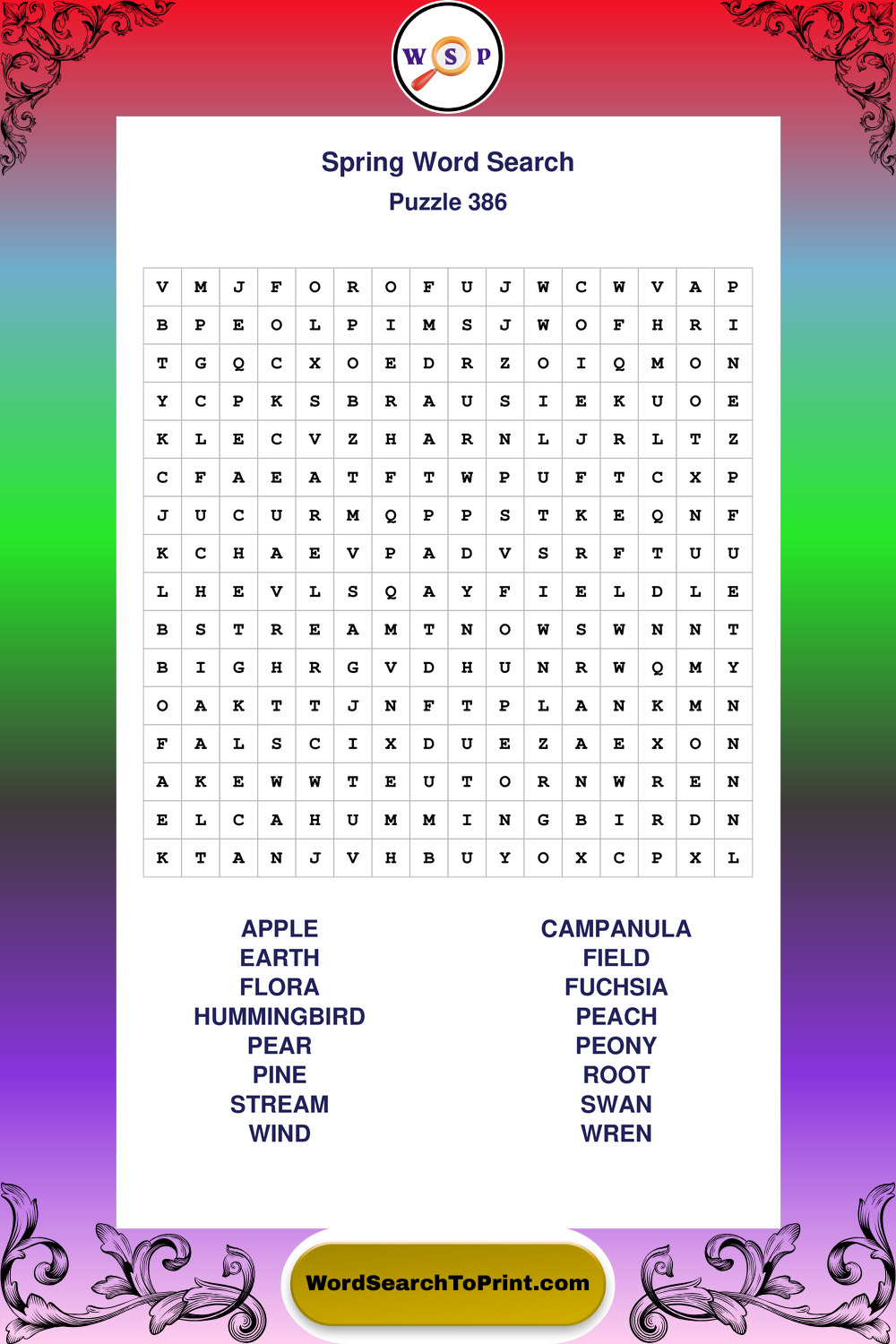Free Large Print Spring Wordsearches