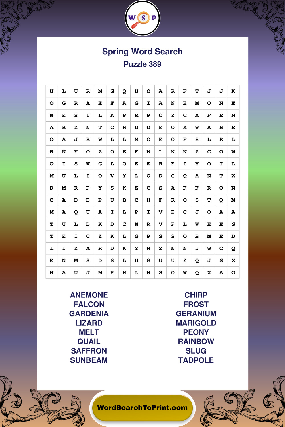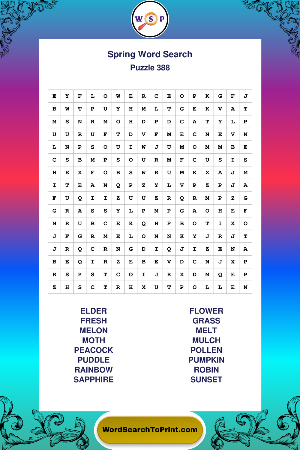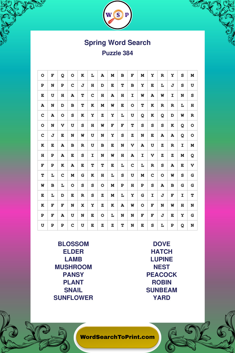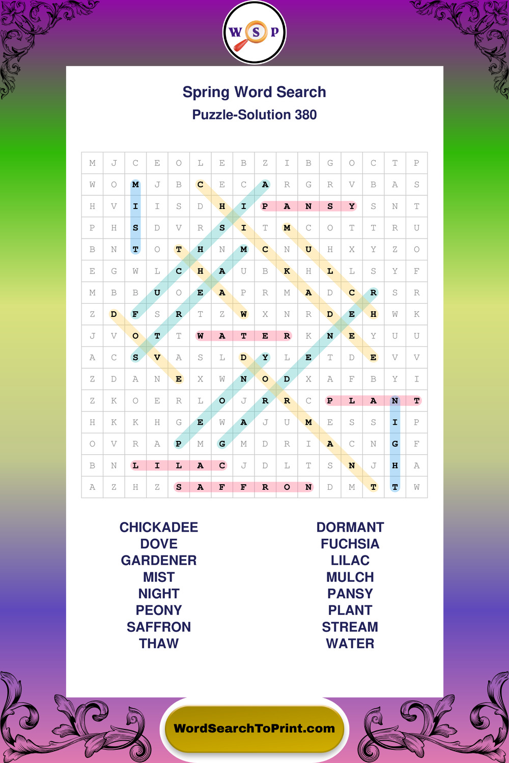 Free Large Print Spring Wordsearches