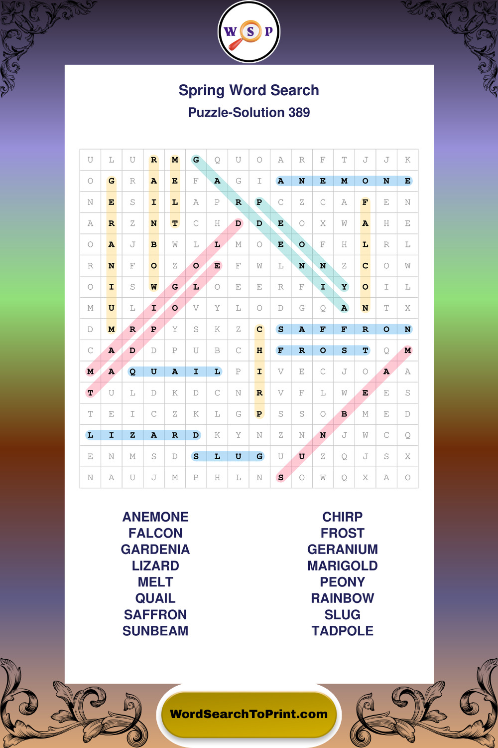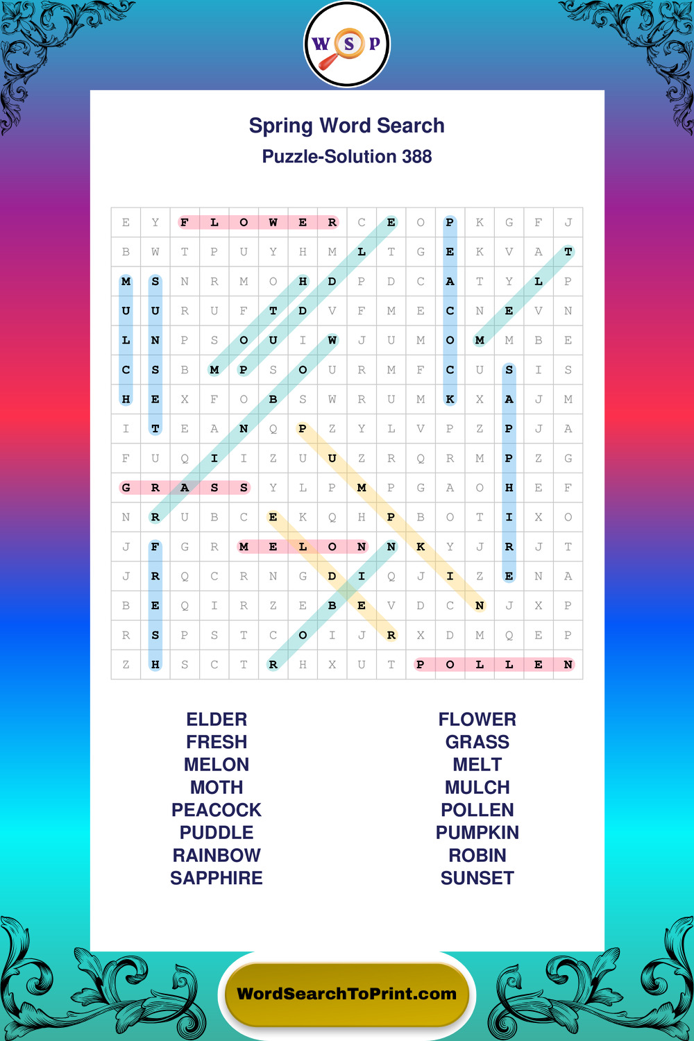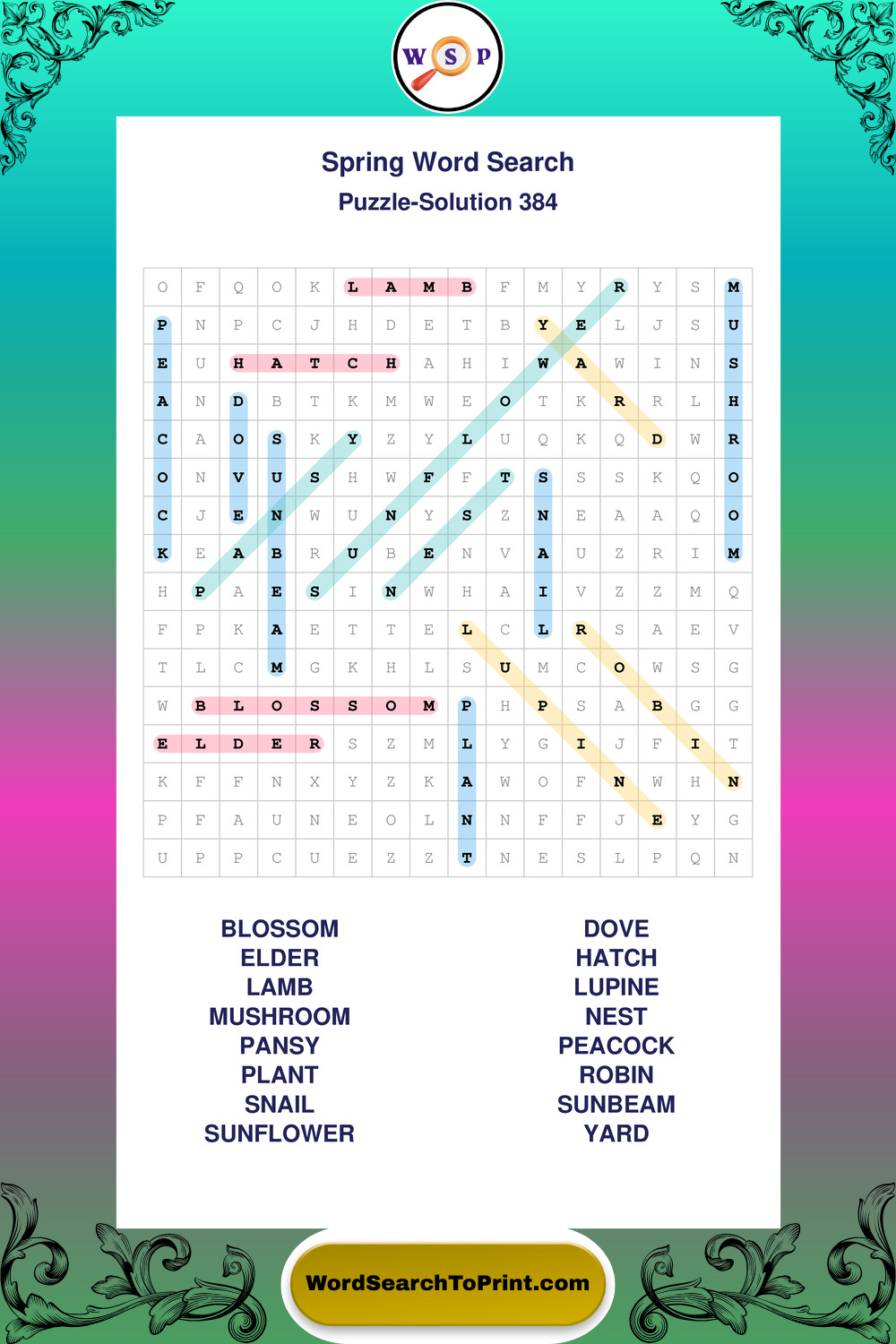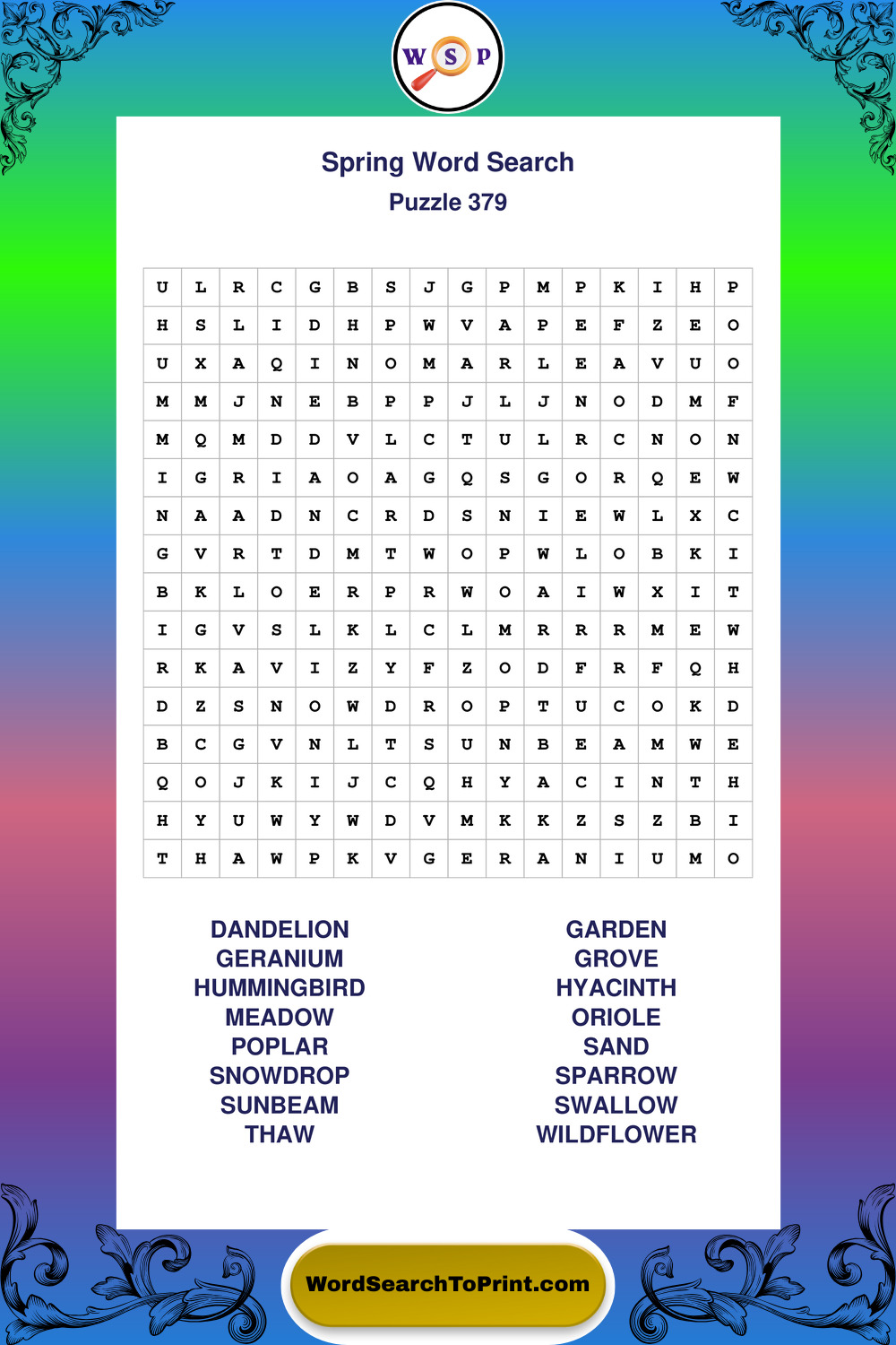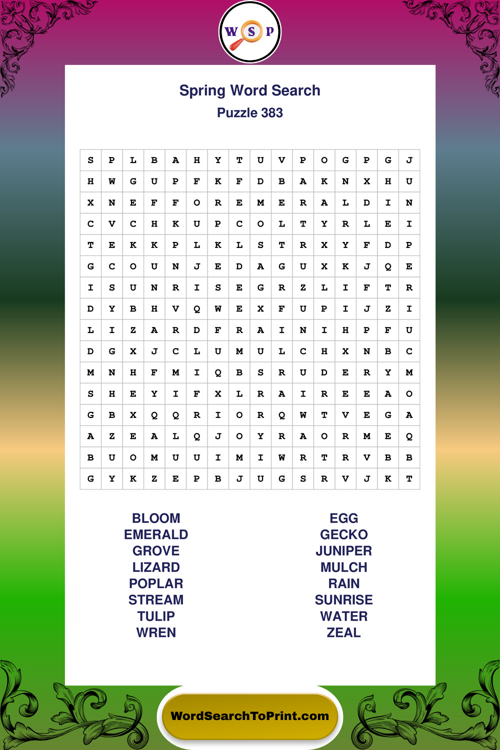 Free Large Print Spring Wordsearches