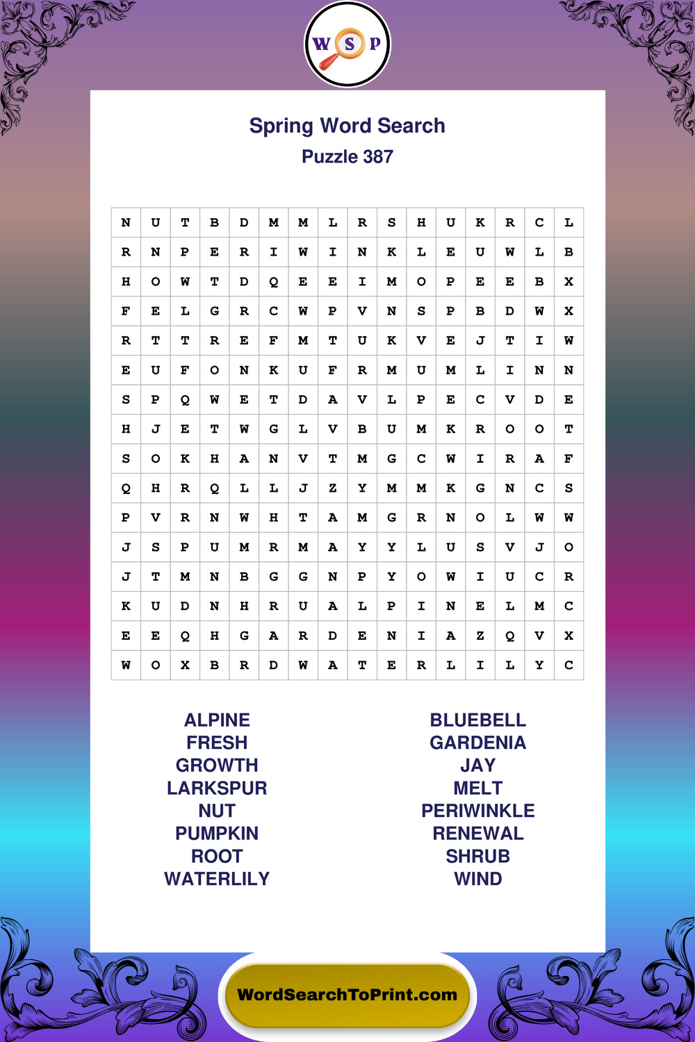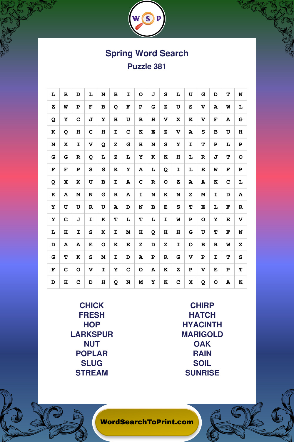 Printable Spring Wordsearch Puzzles