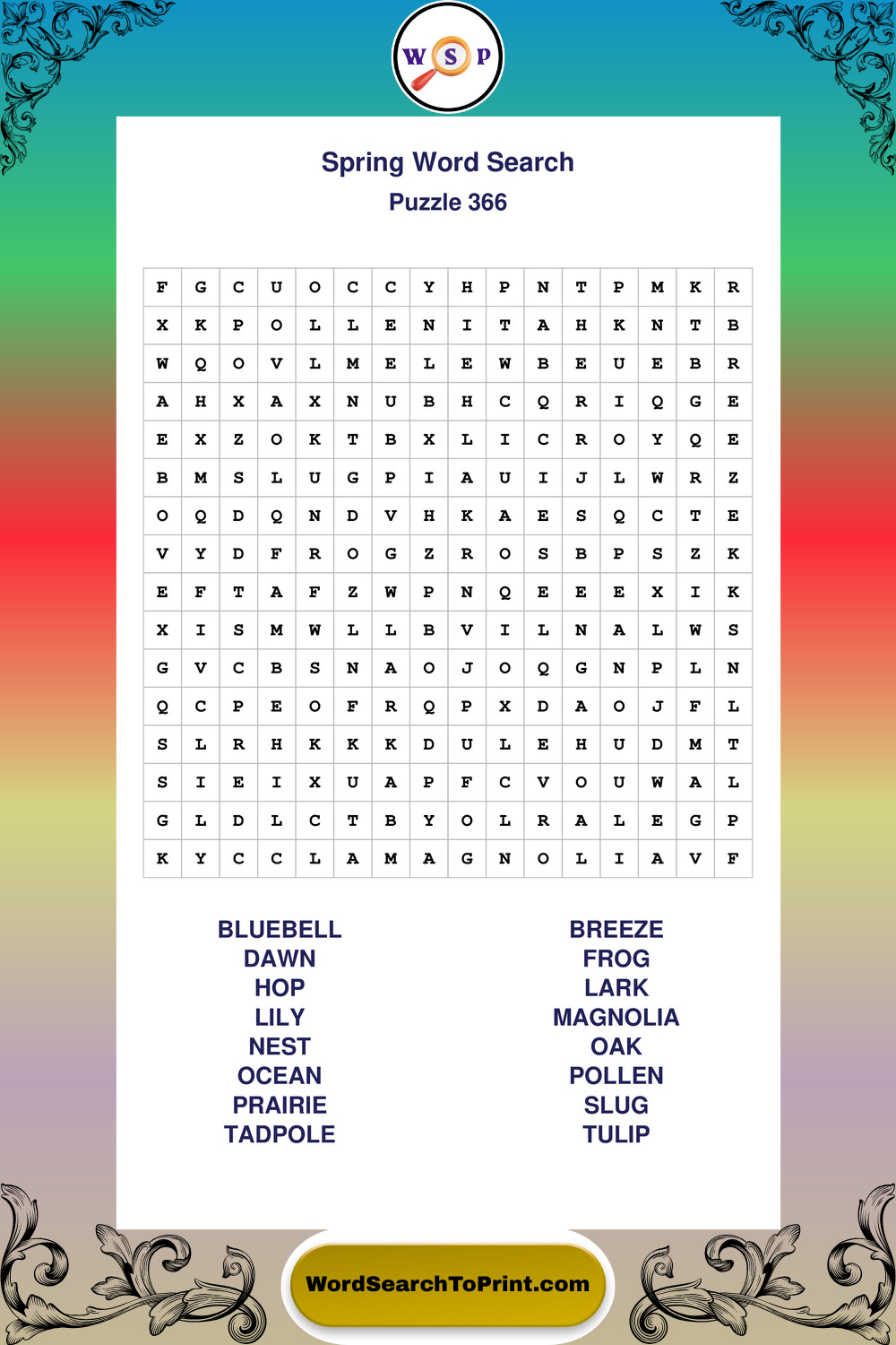 This selection of large print Spring wordsearches is ideal for light brain exercise and relaxed daily use.