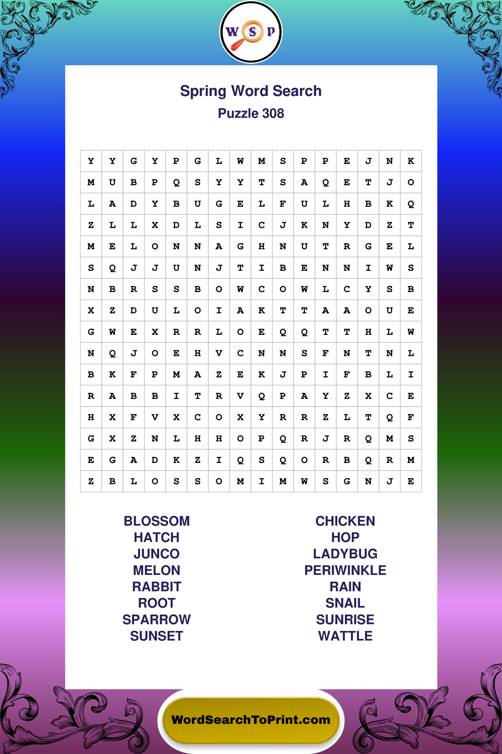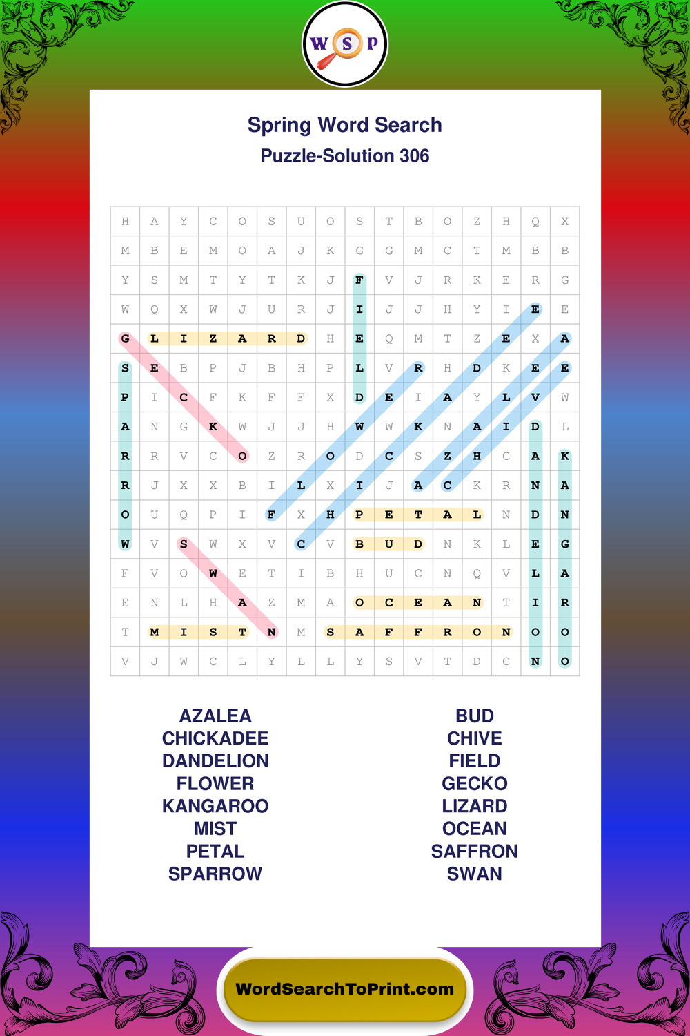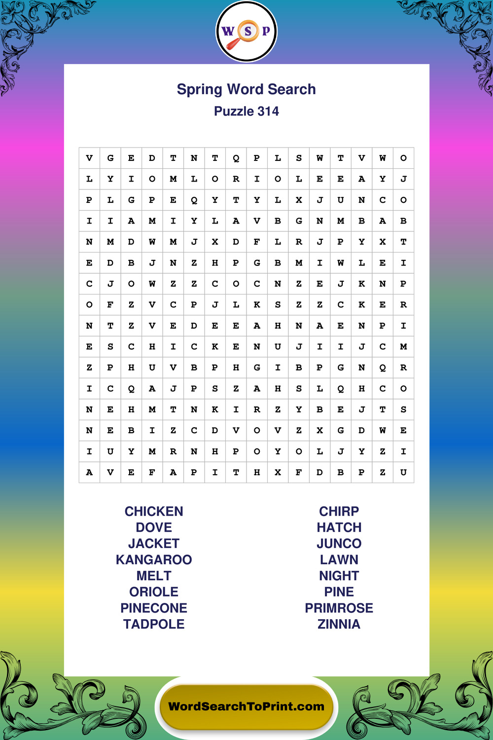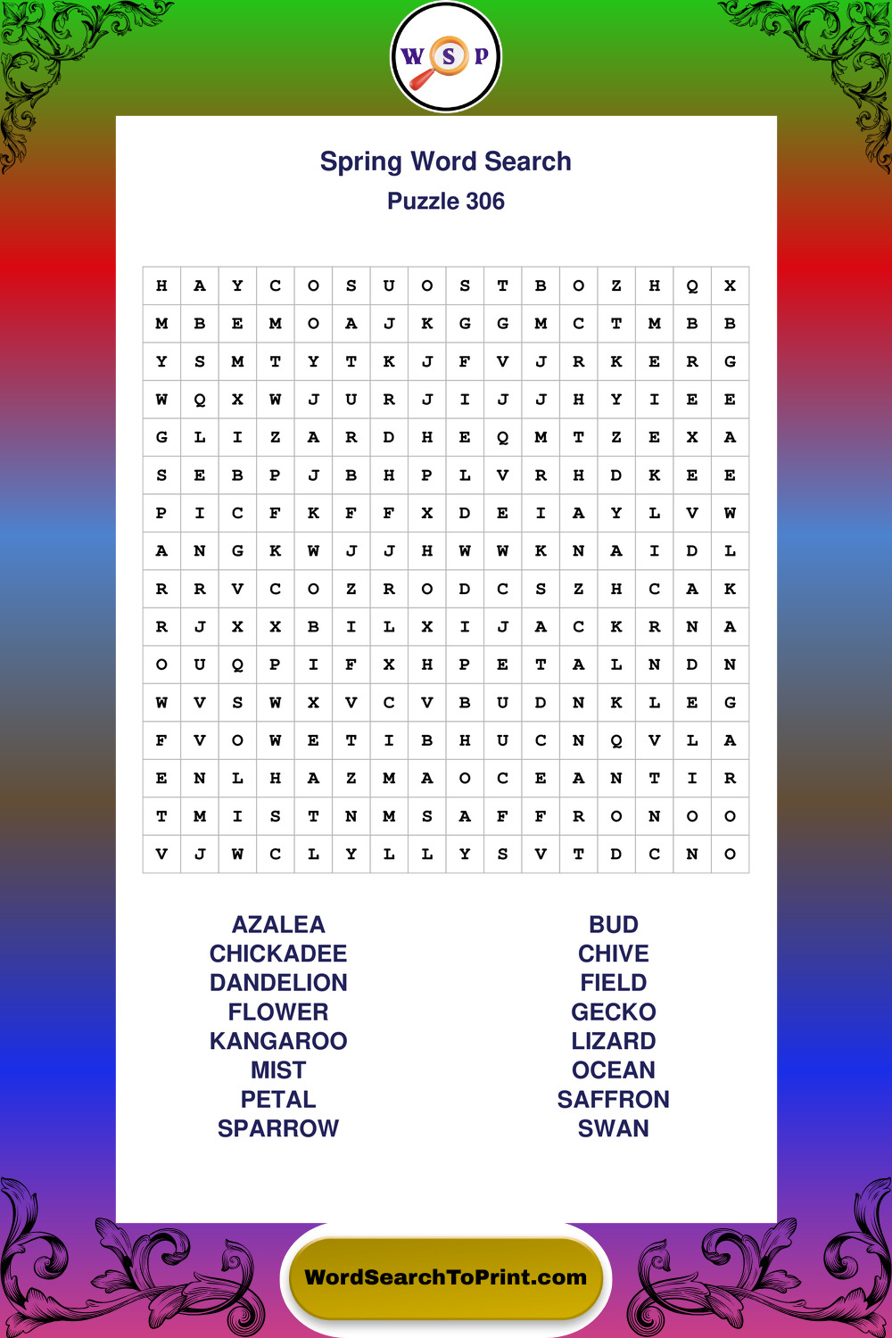 Free Large Print Spring Wordsearches