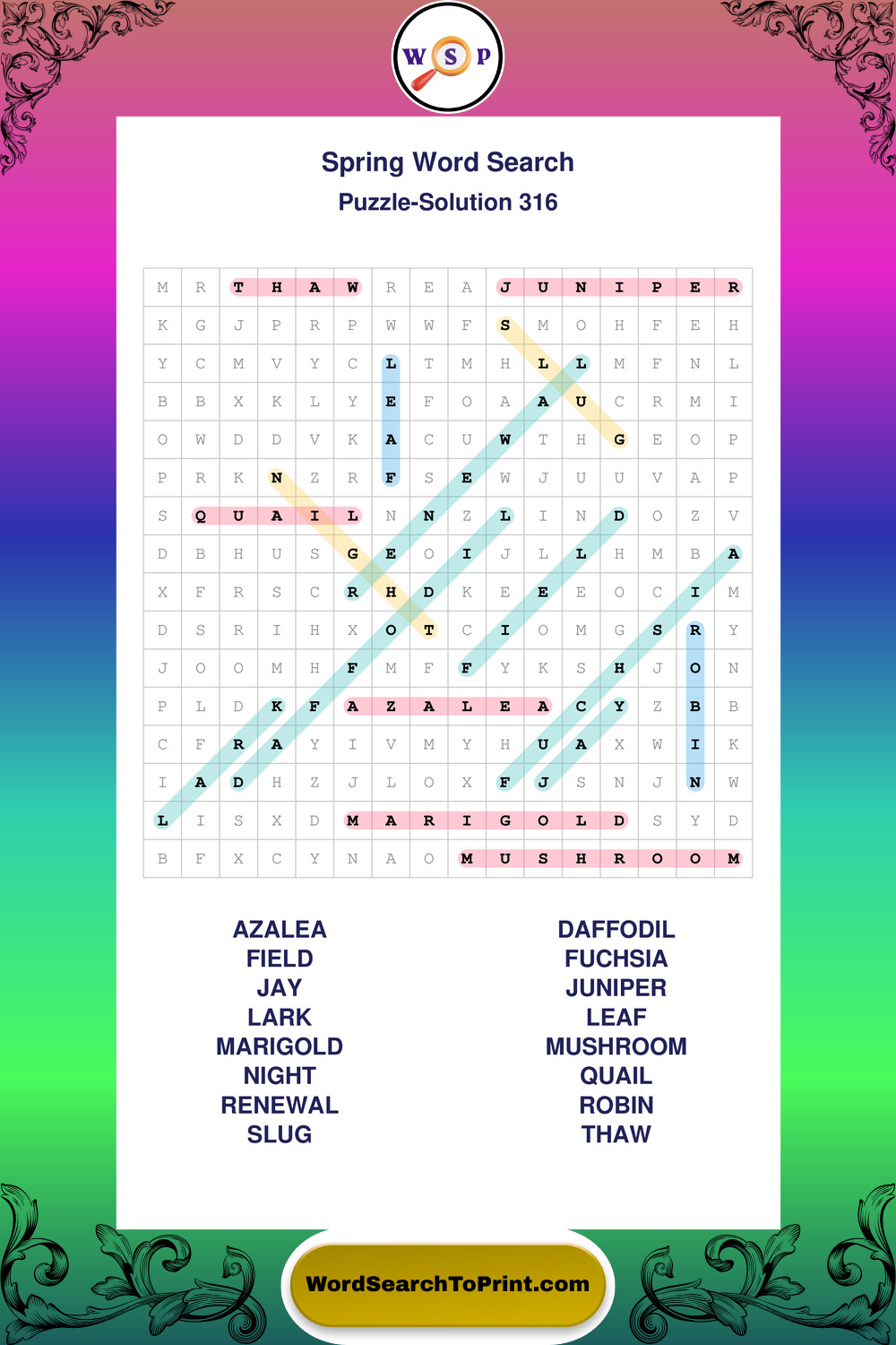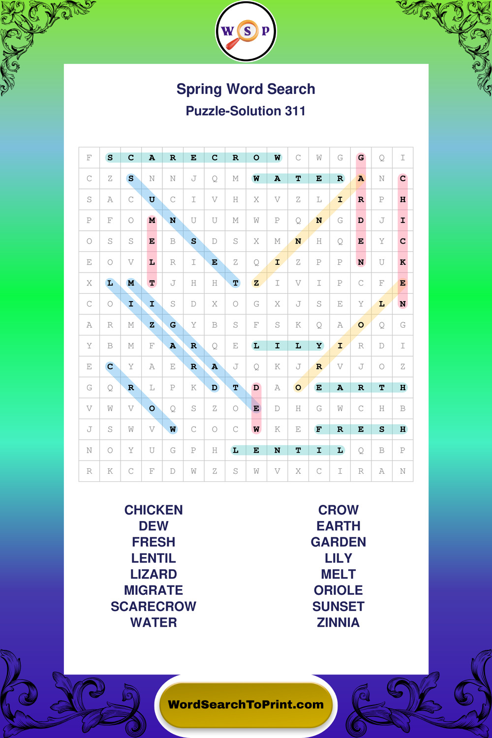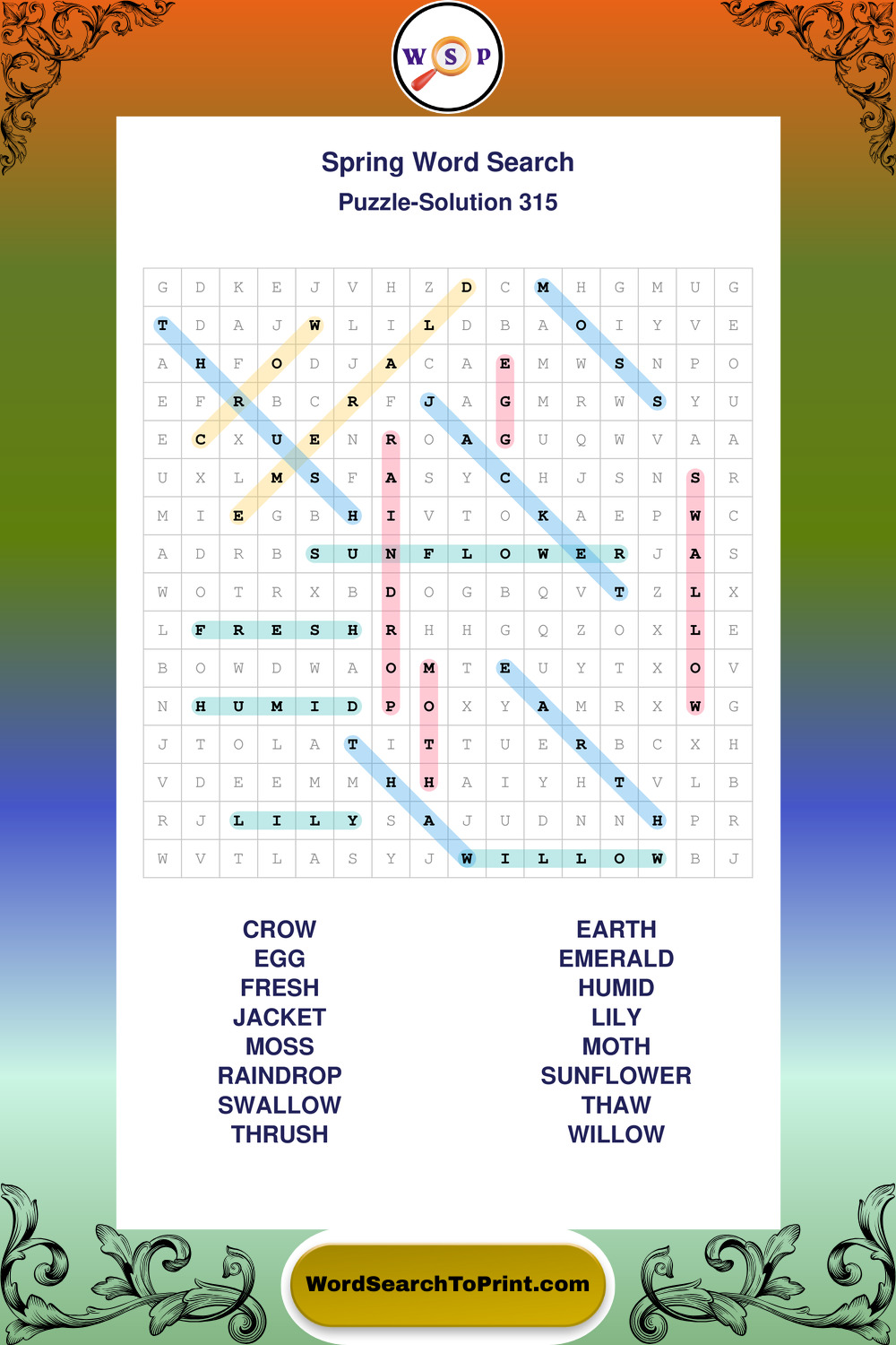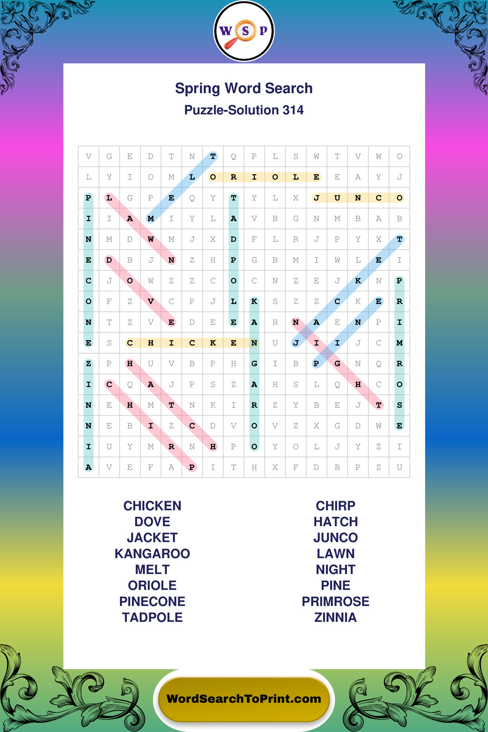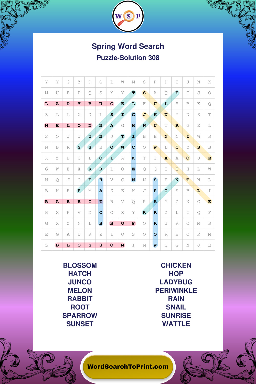 Free Large Print Spring Wordsearches