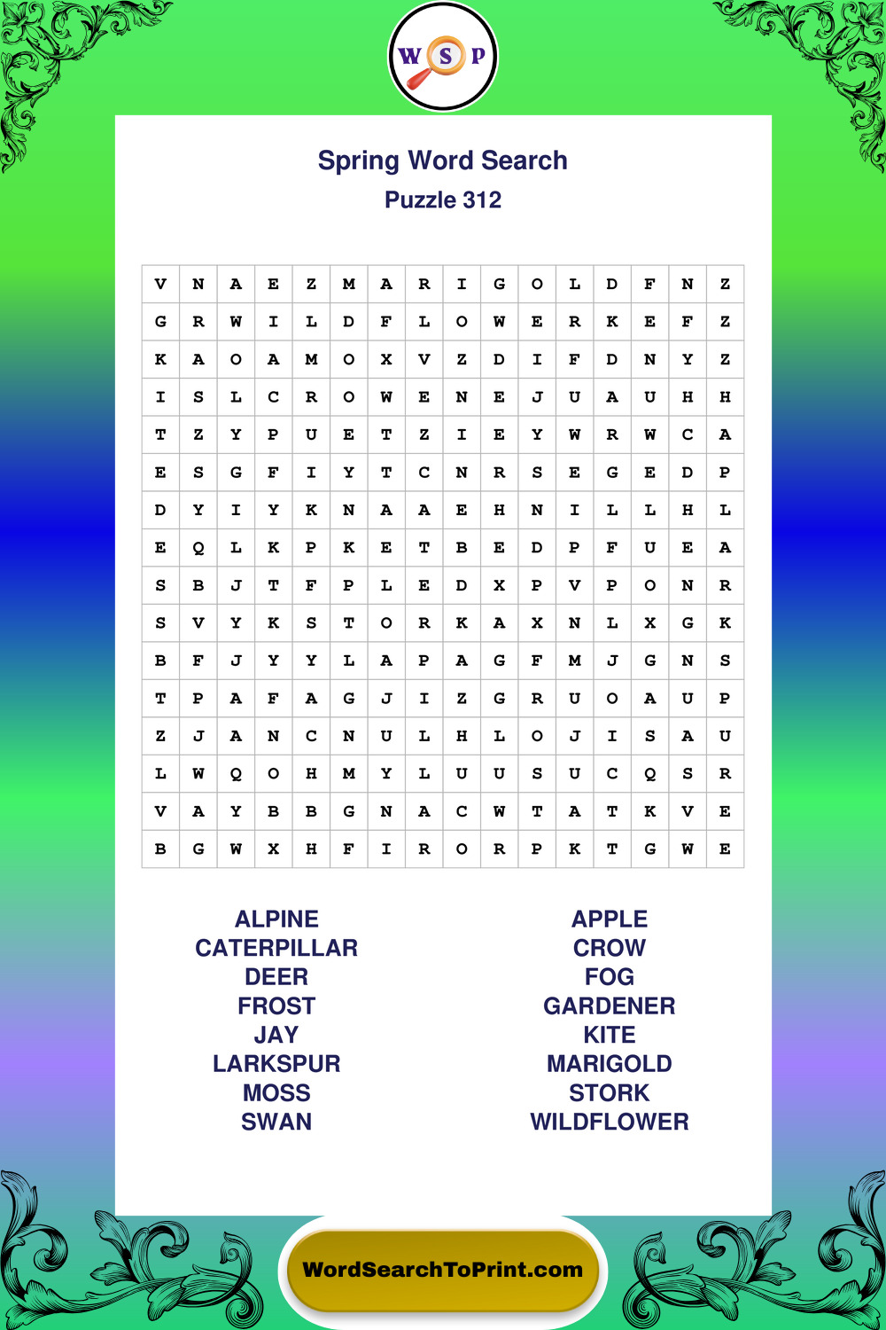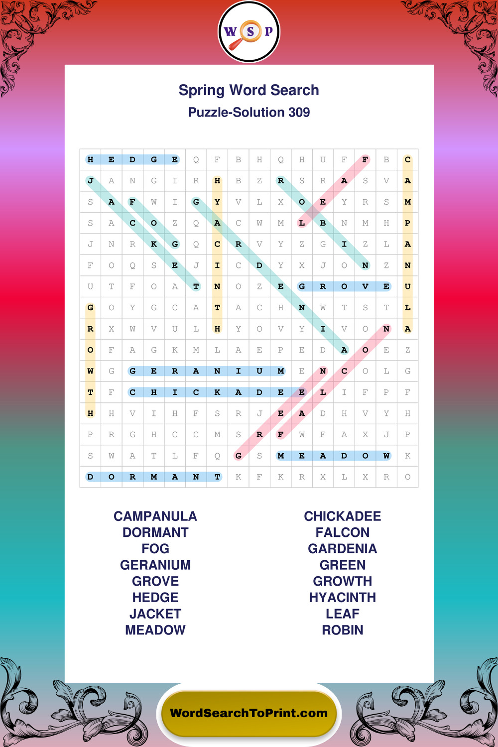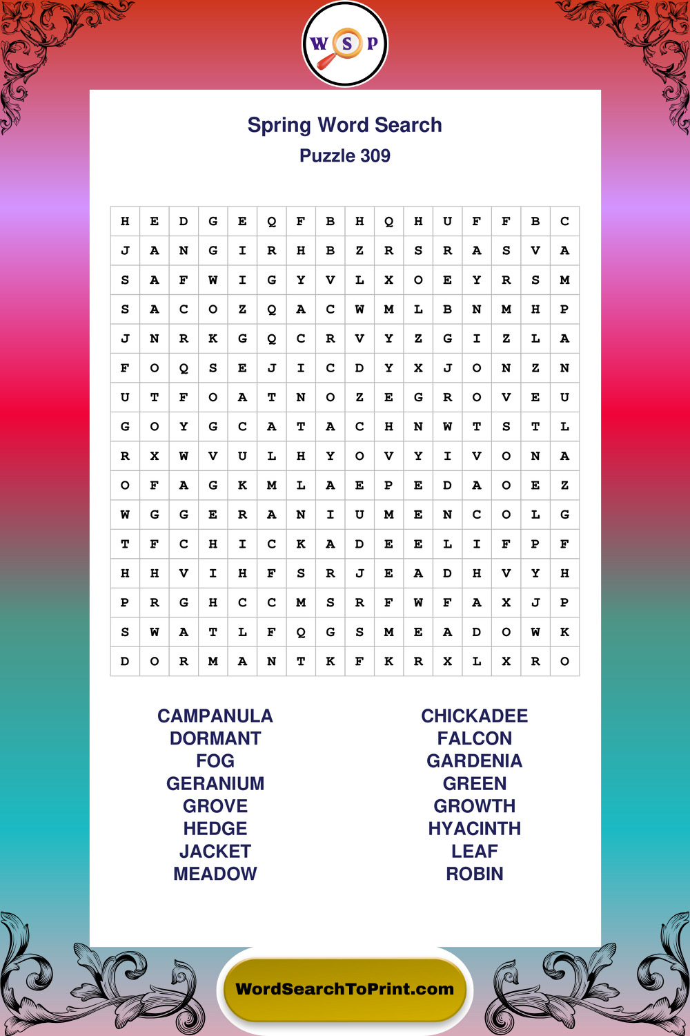 Printable Spring Wordsearch Puzzles