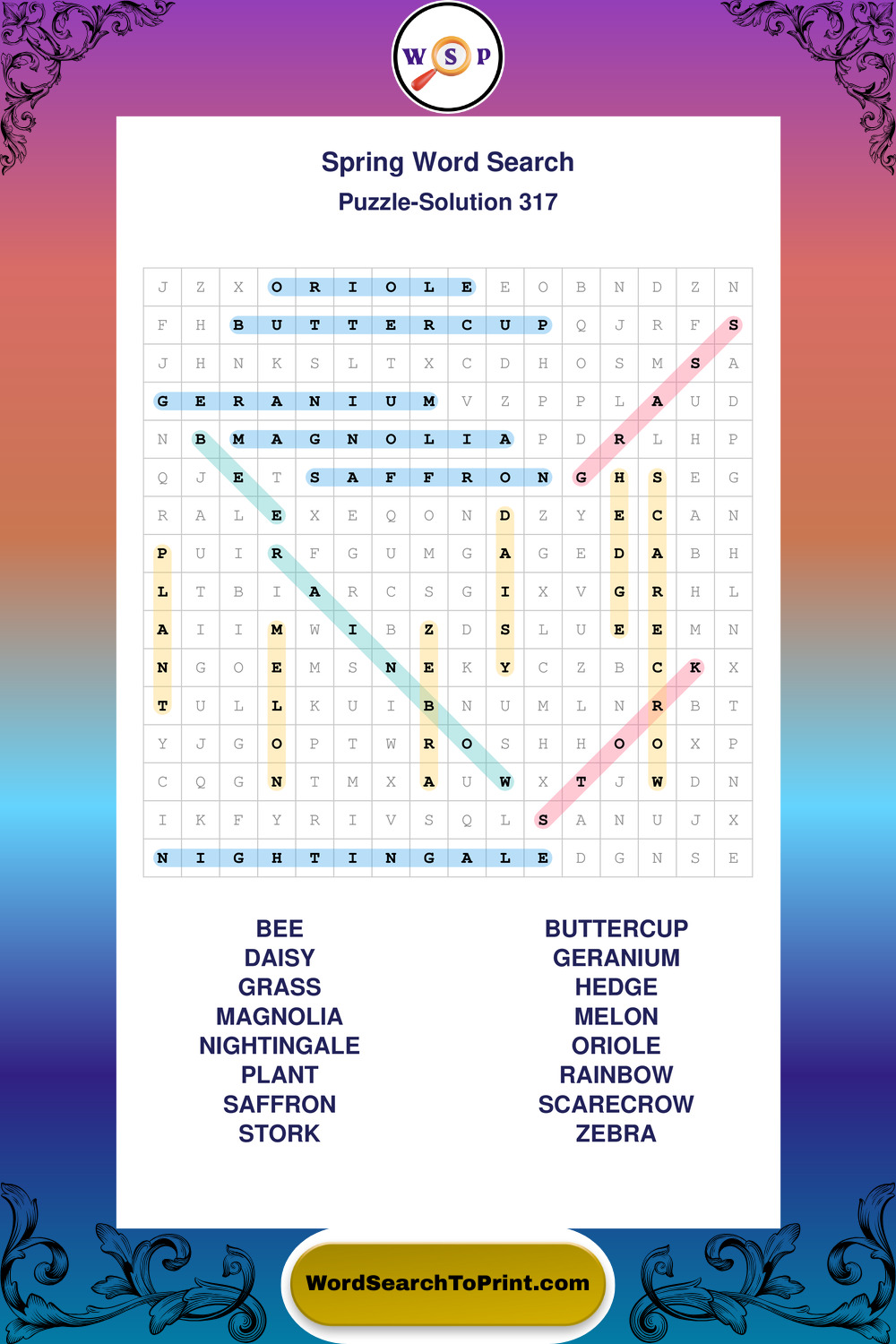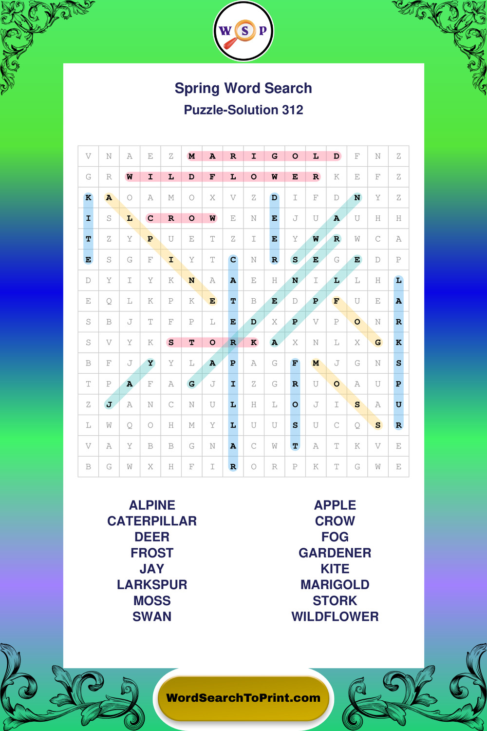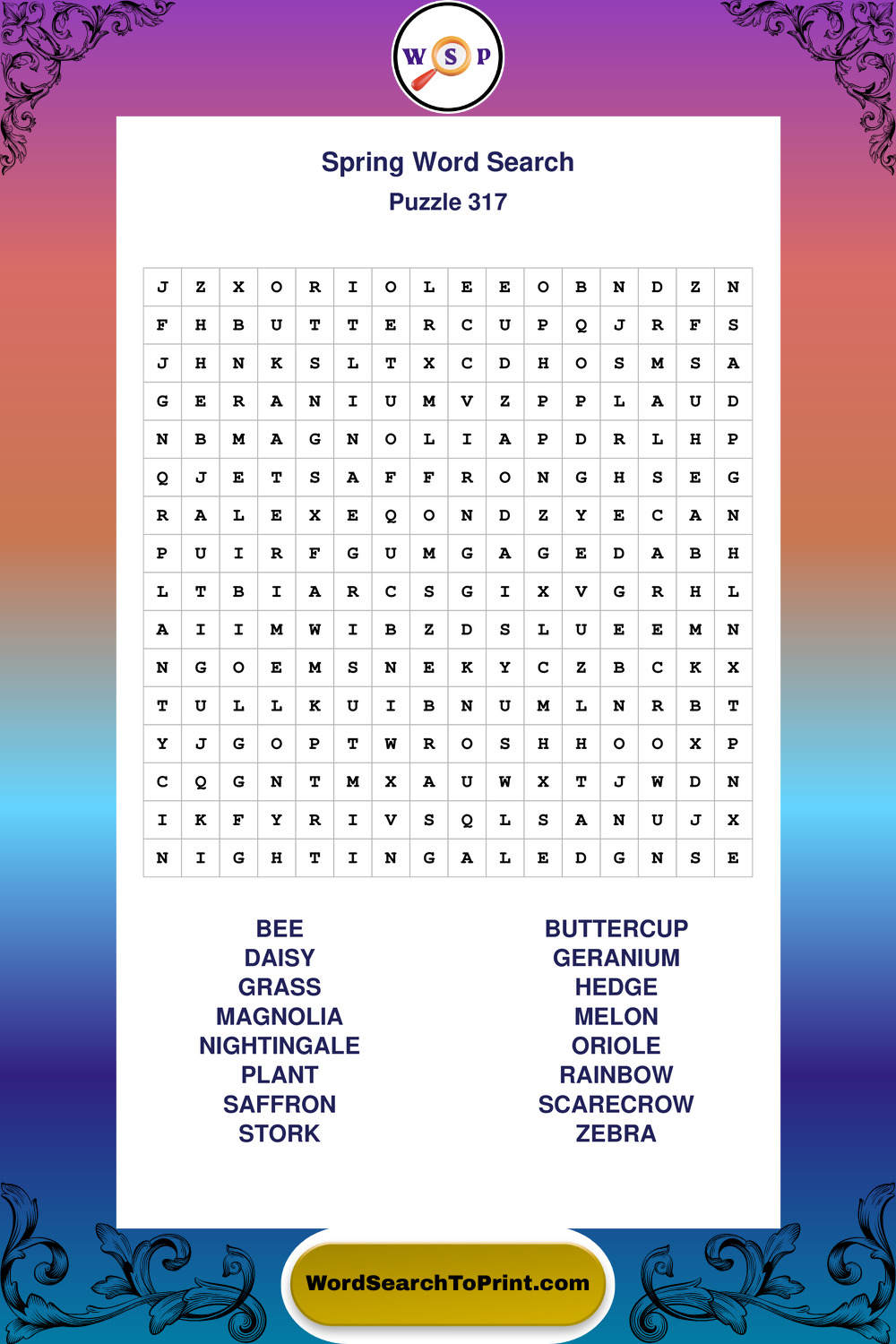 Printable Spring Wordsearch Puzzles