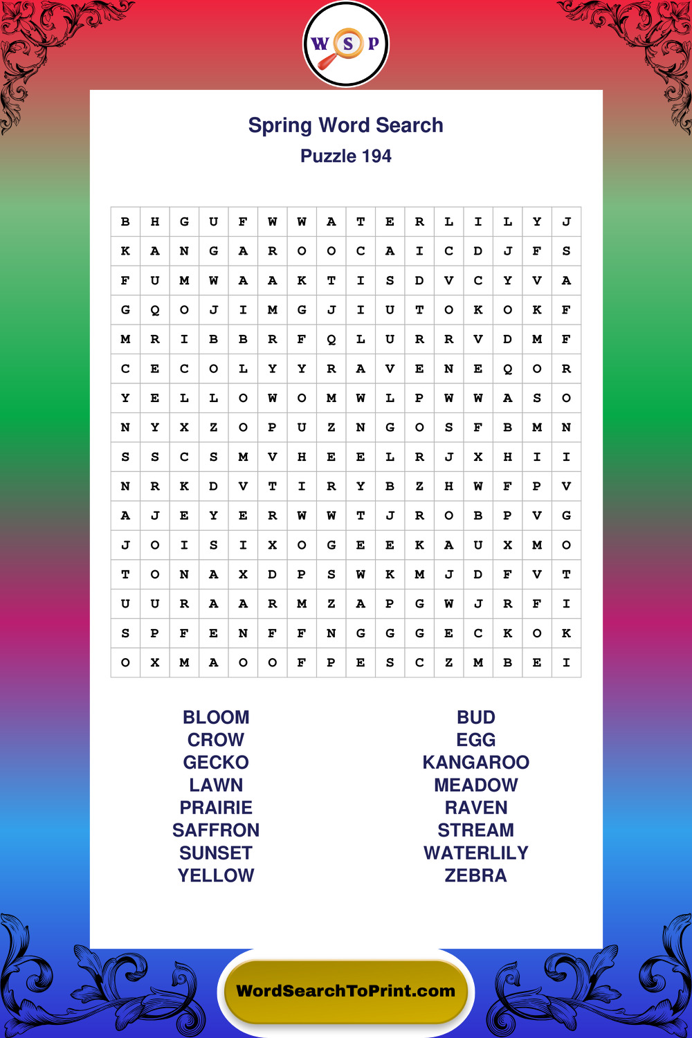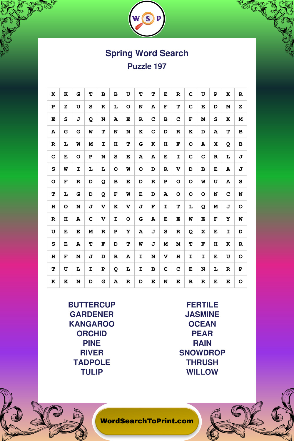 This selection of large print Spring wordsearches is ideal for light brain exercise and relaxed daily use.