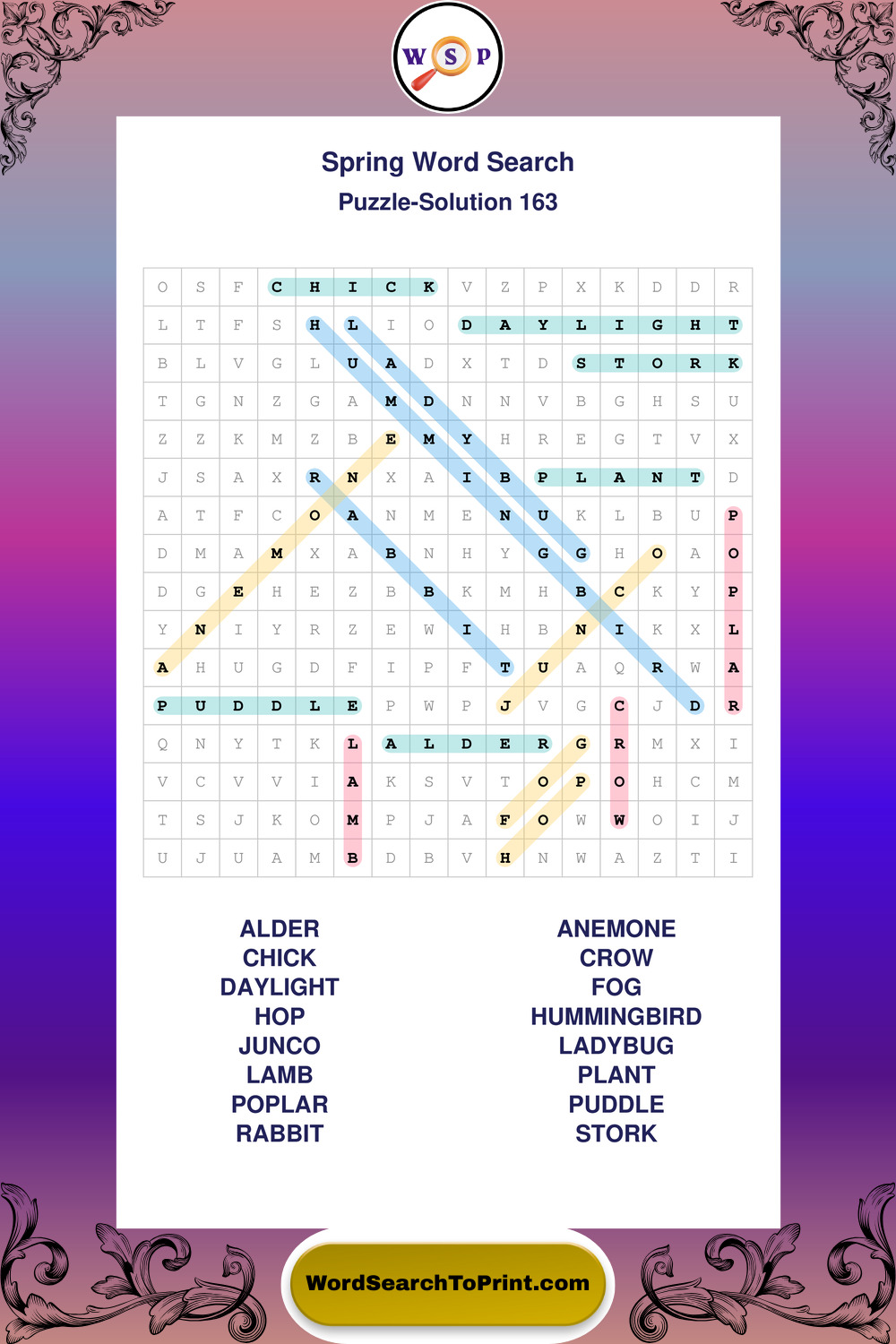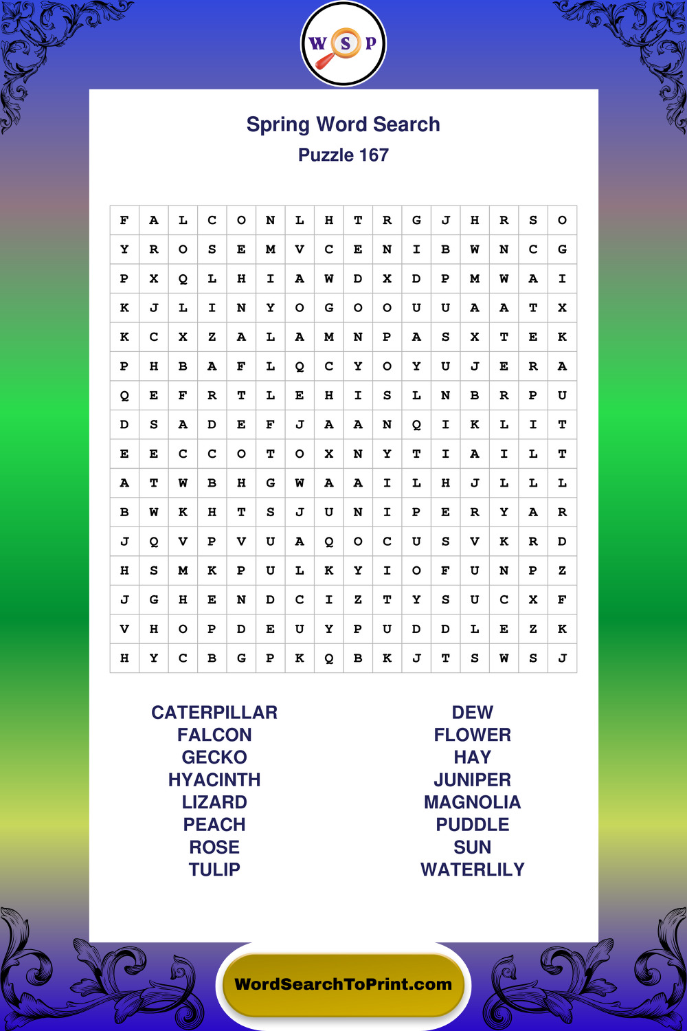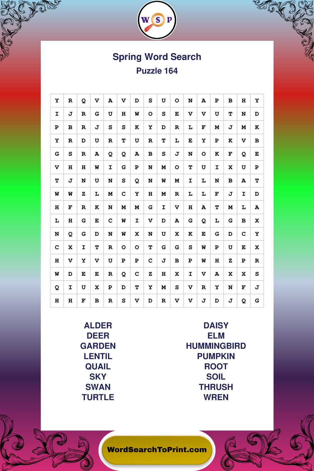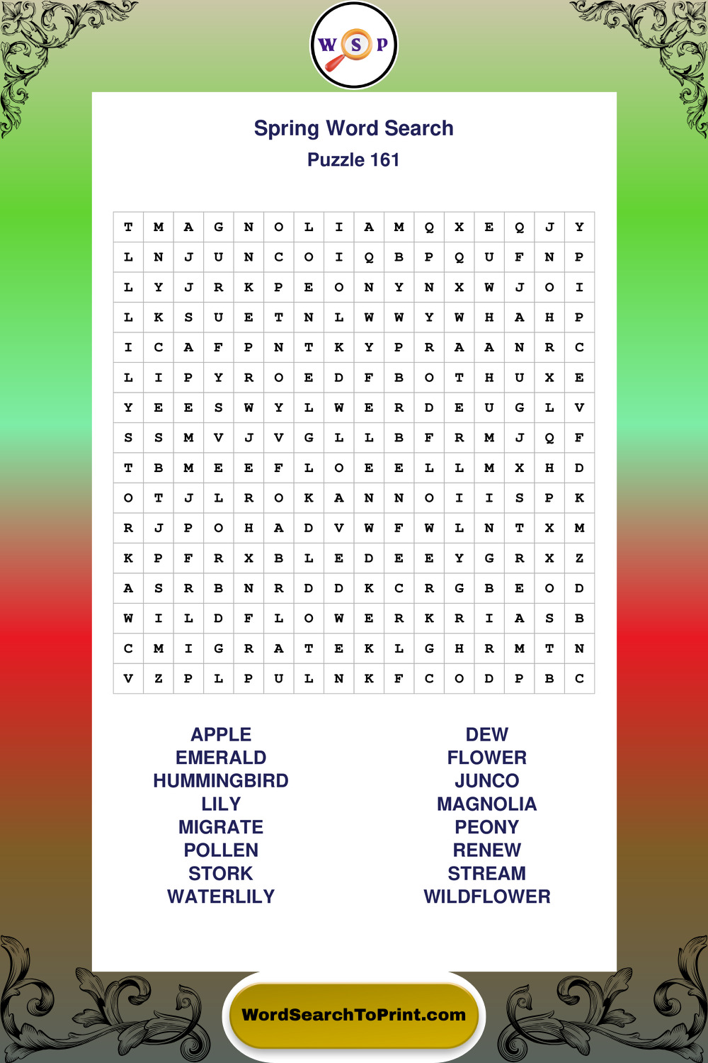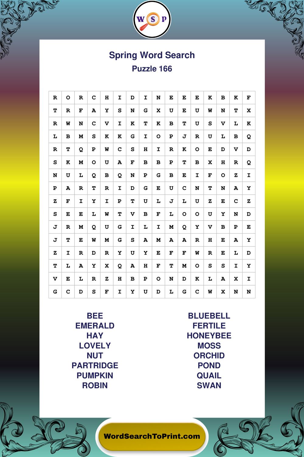 Free Large Print Spring Wordsearches
