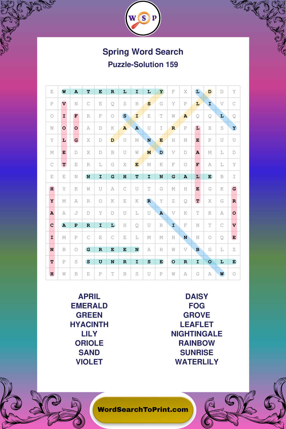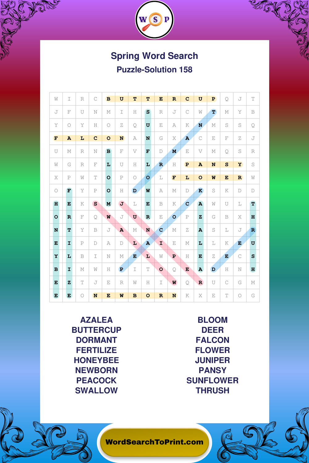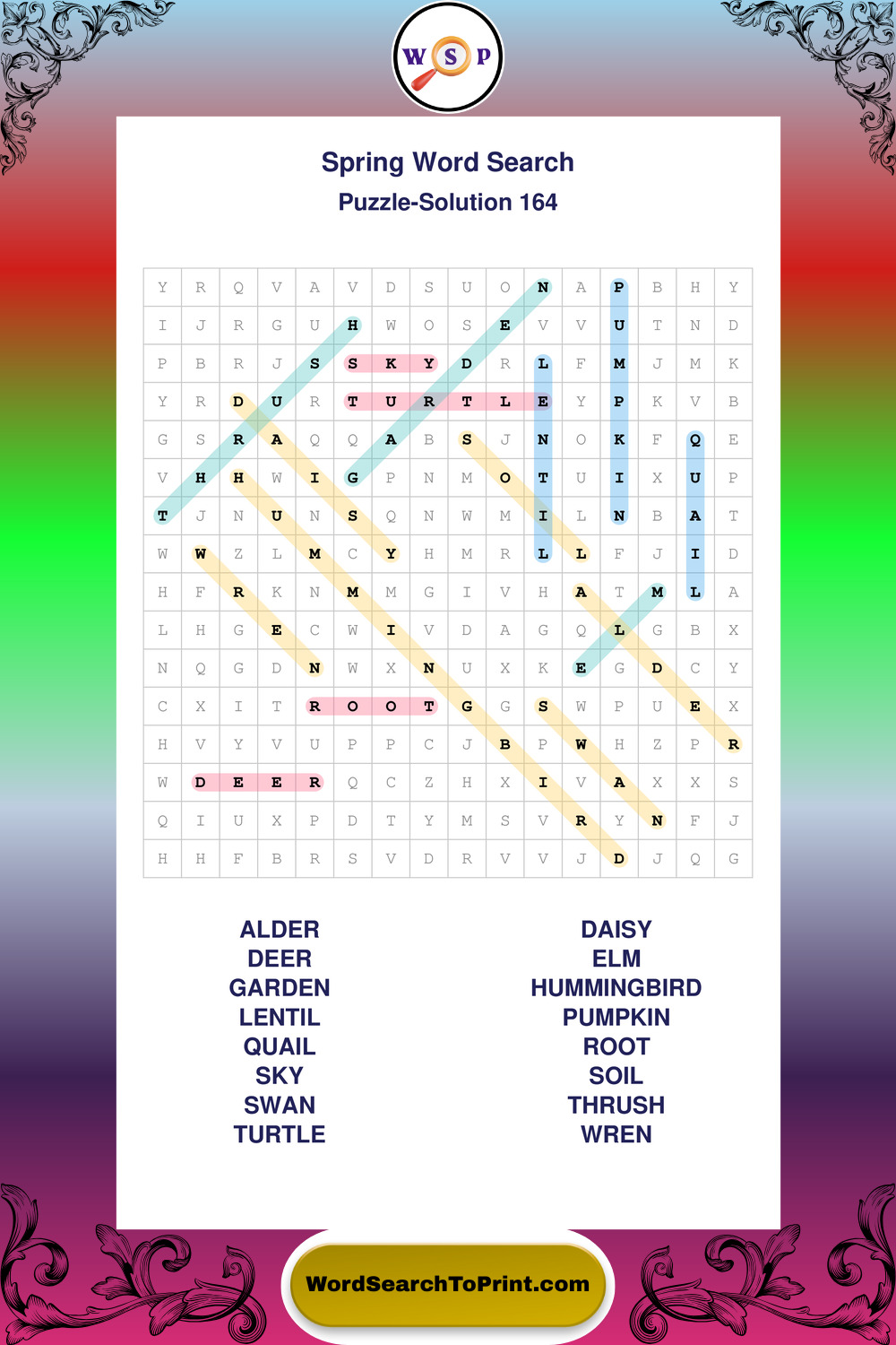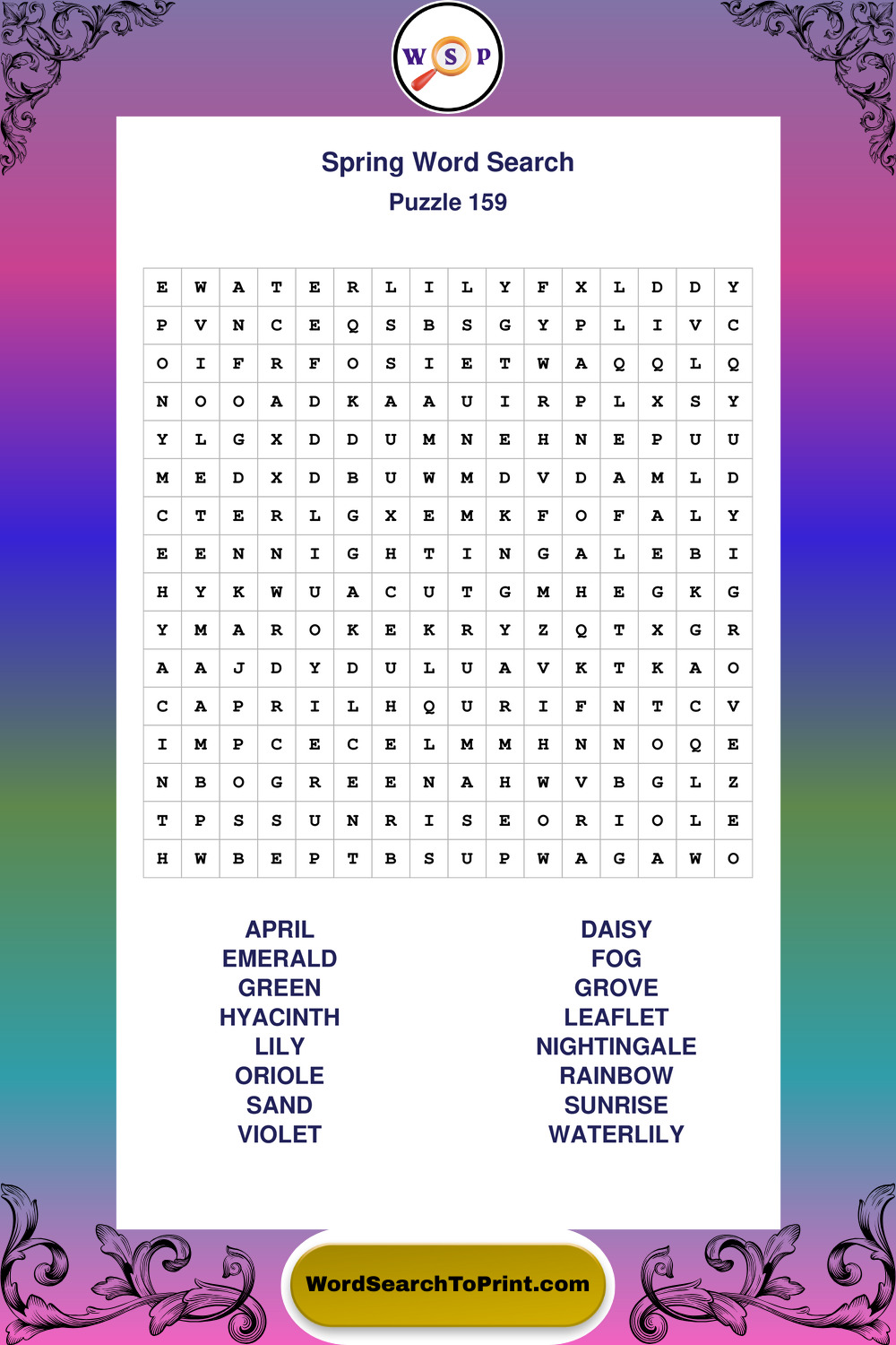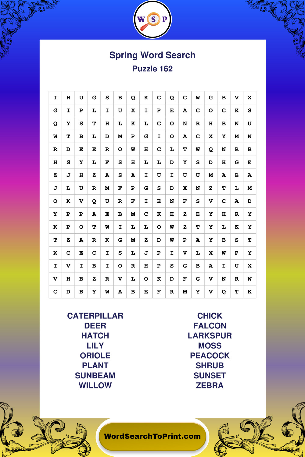 Free Large Print Spring Wordsearches