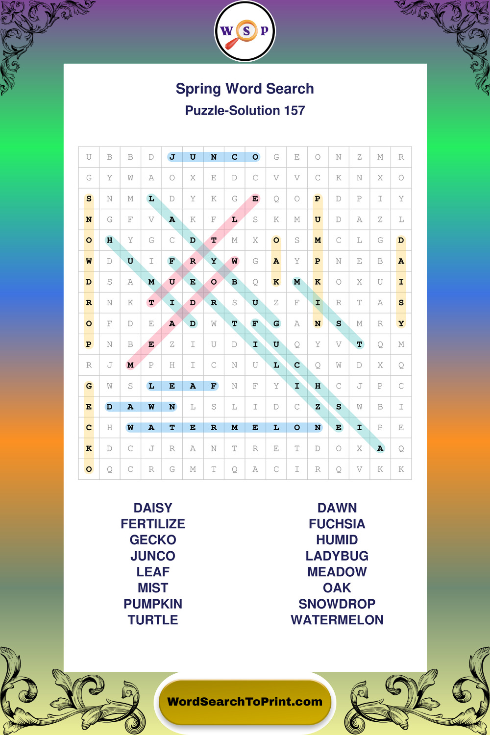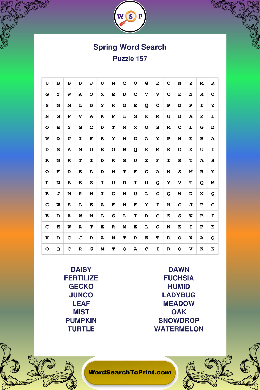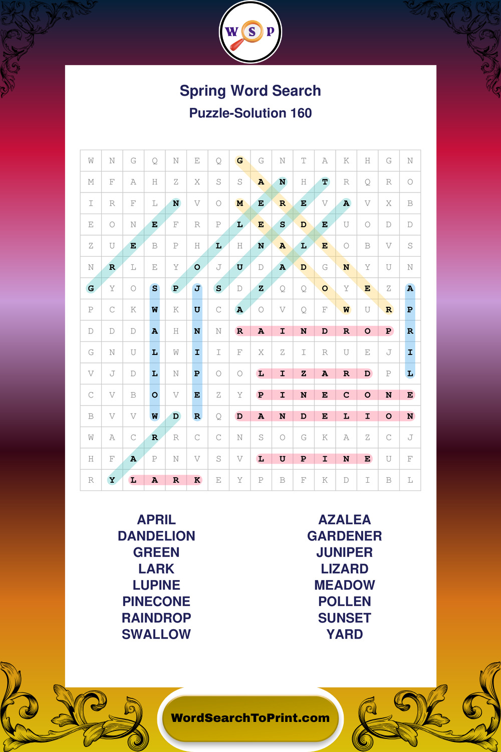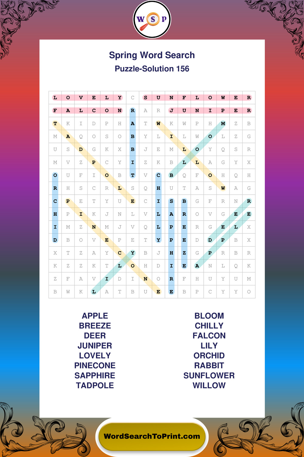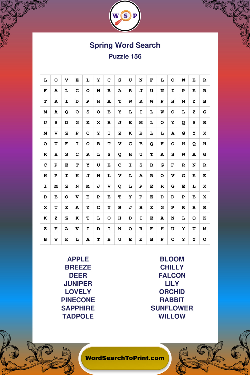 Free Large Print Spring Wordsearches
