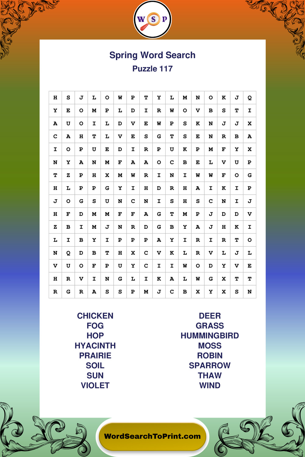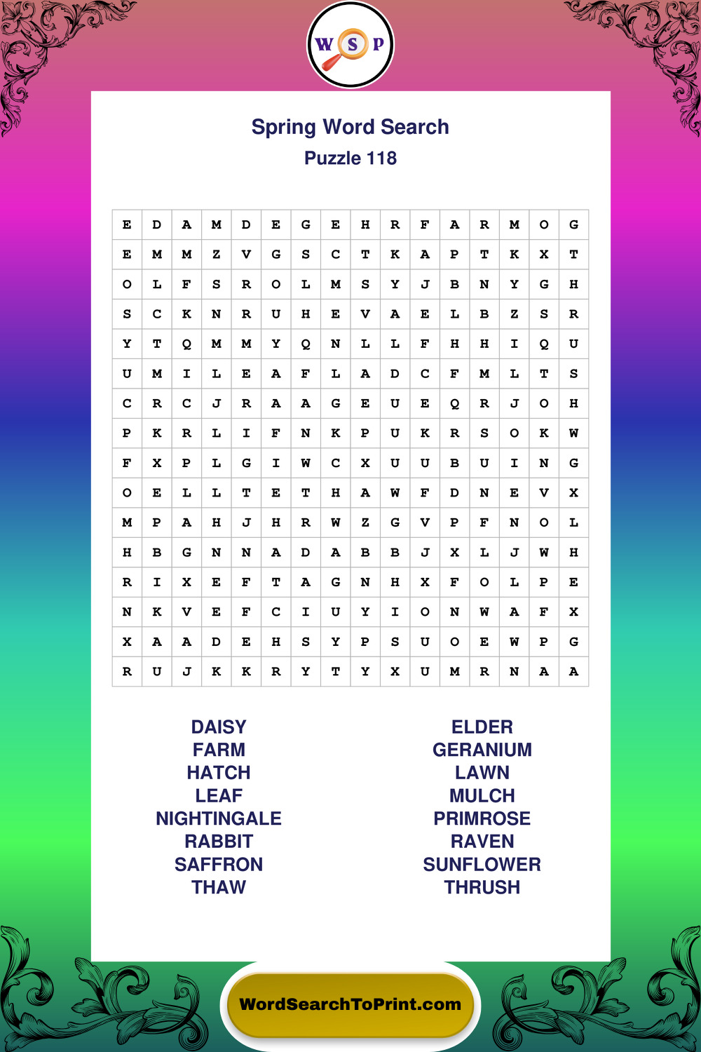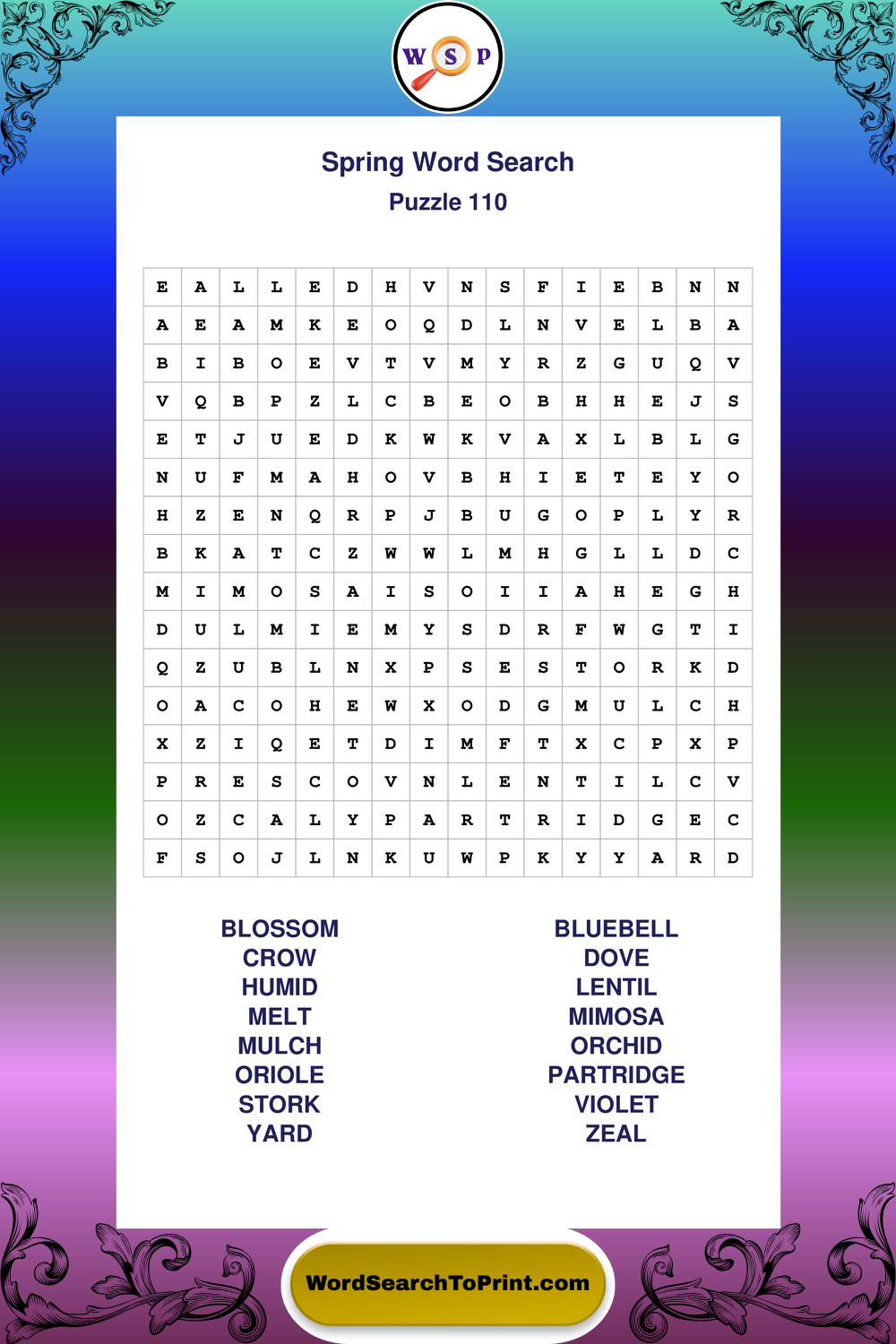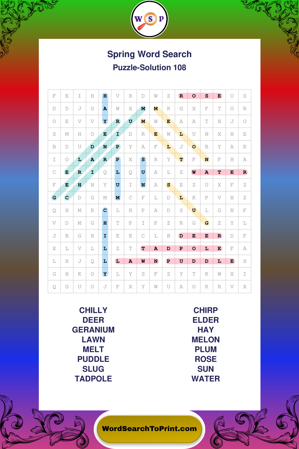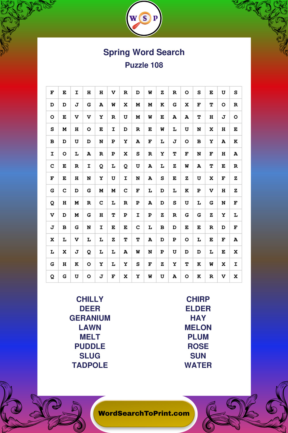 Free Large Print Spring Wordsearches
