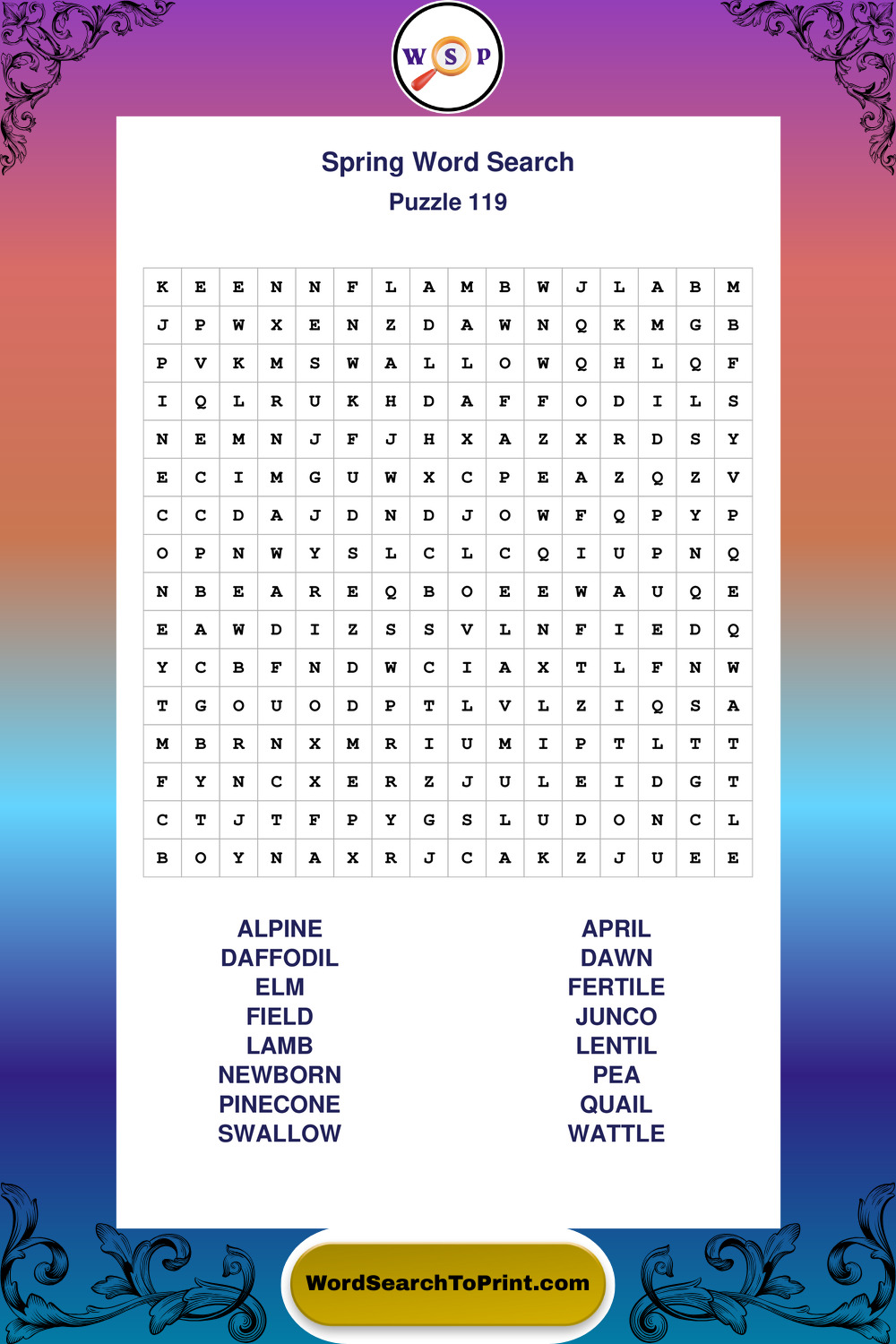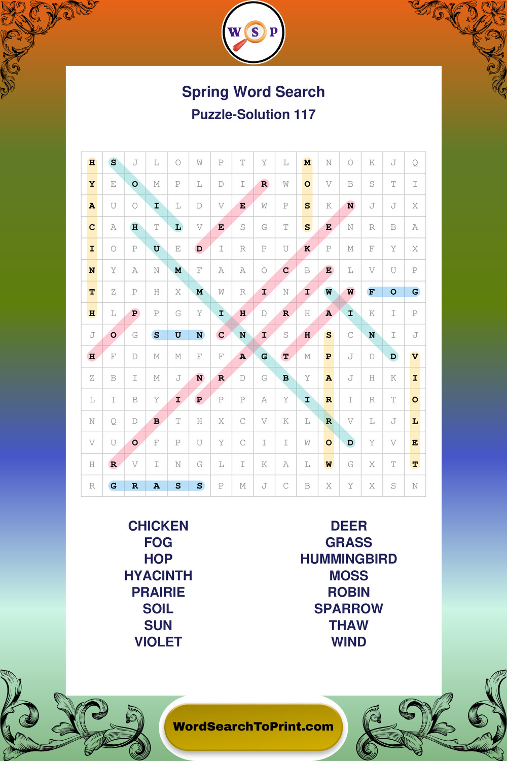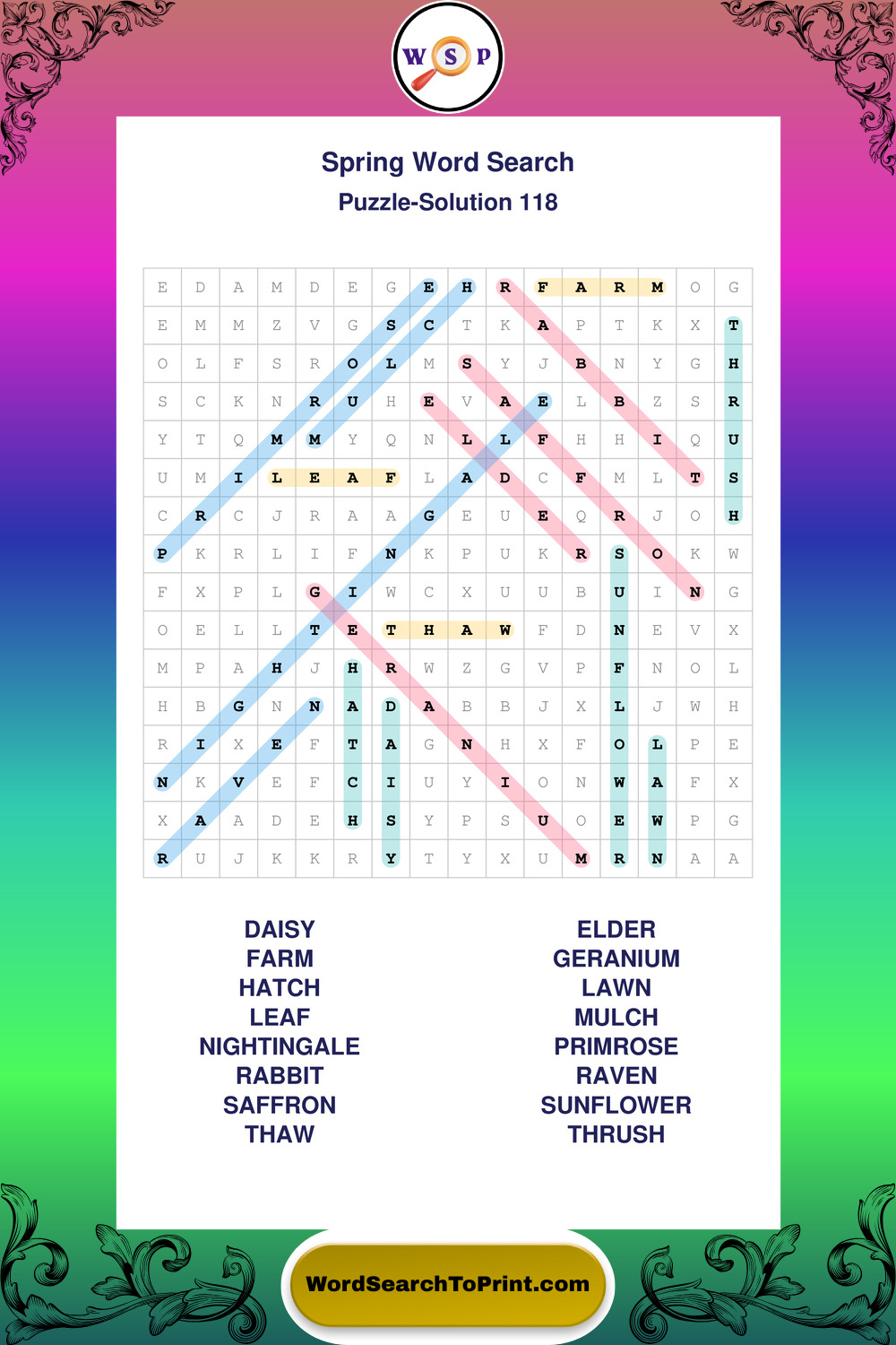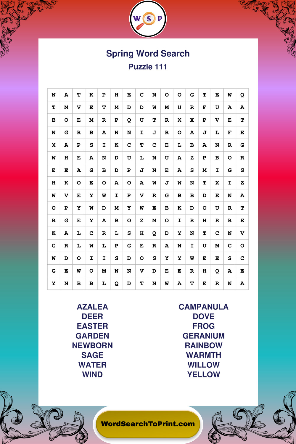 Free Large Print Spring Wordsearches