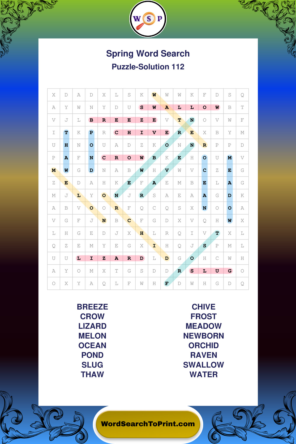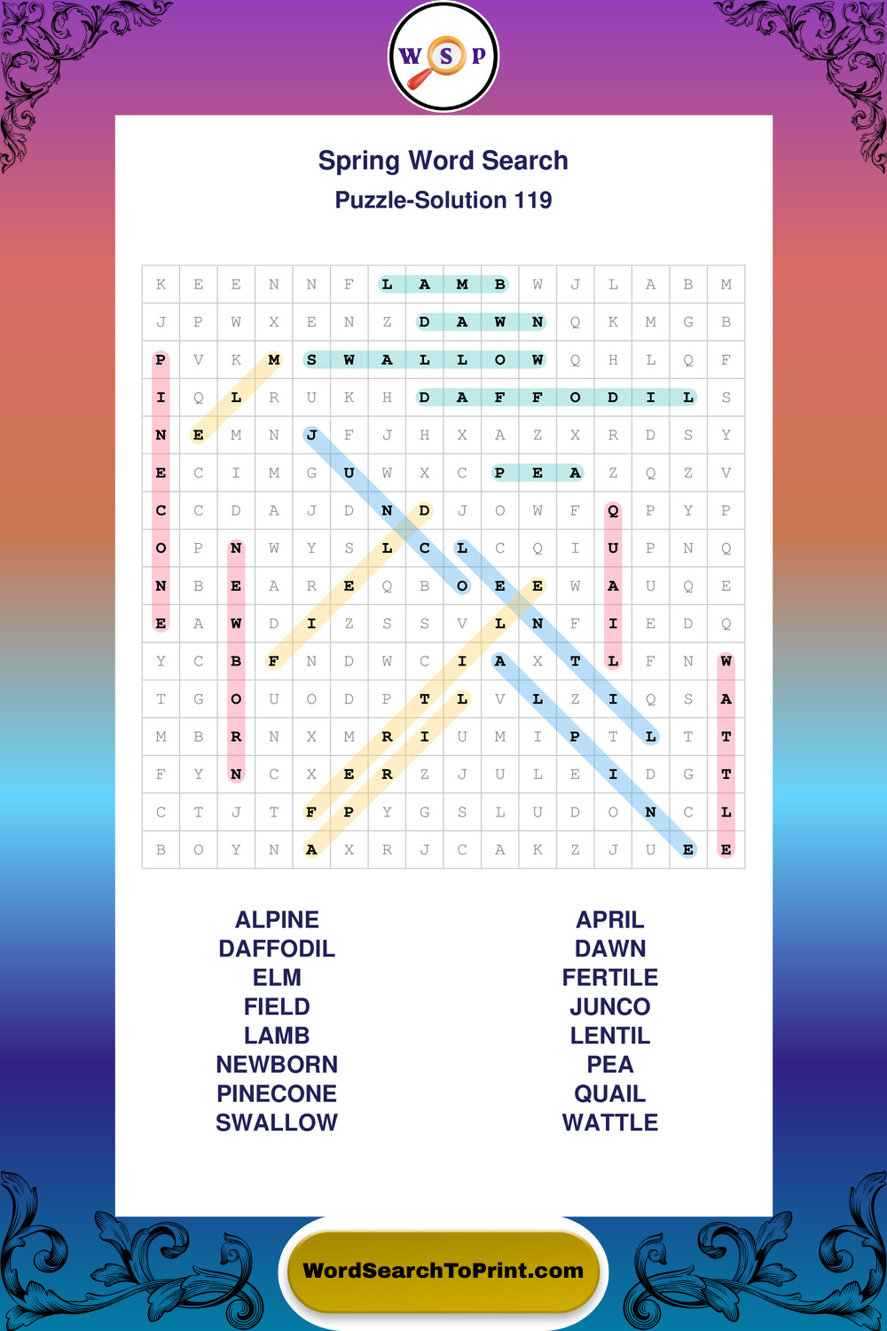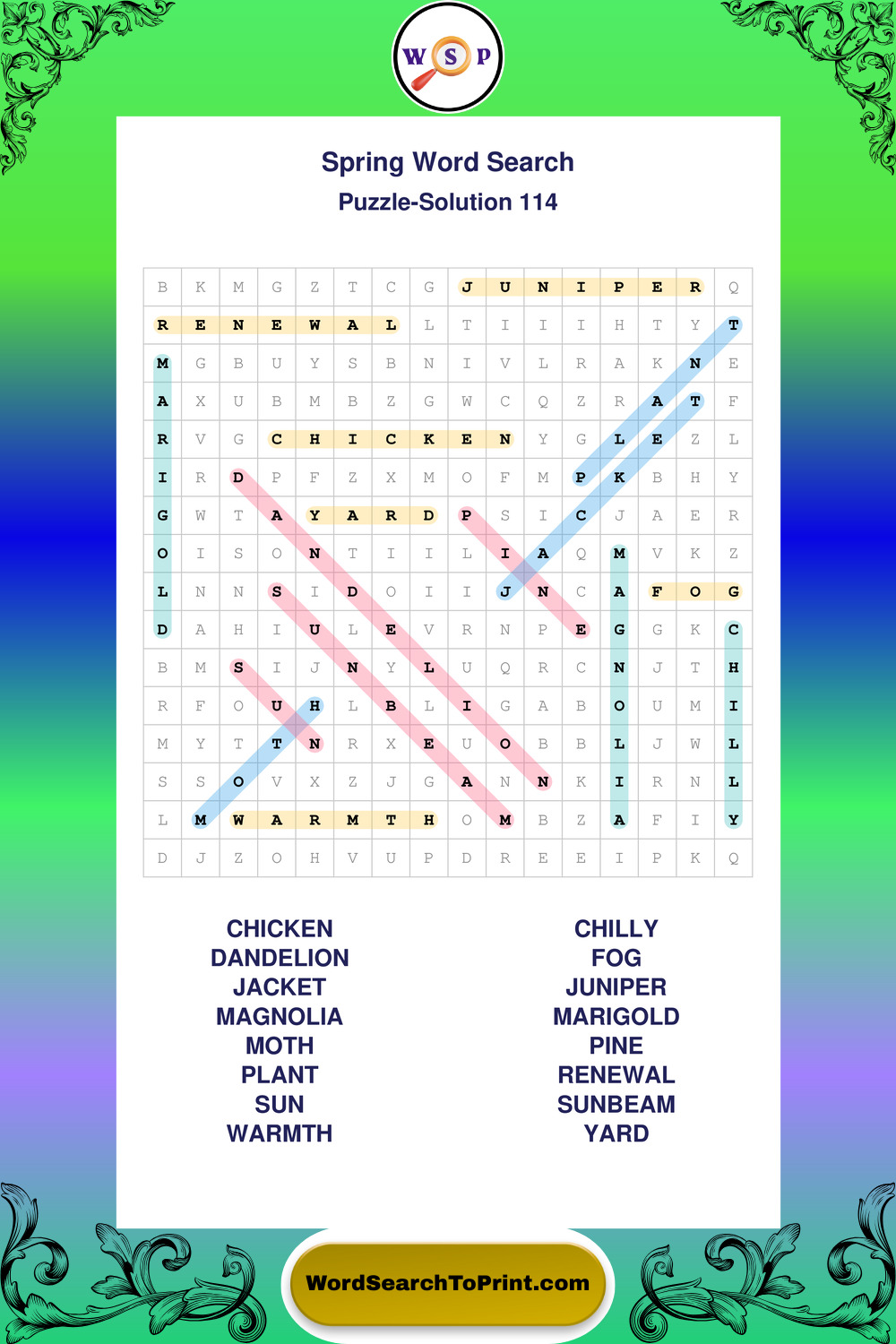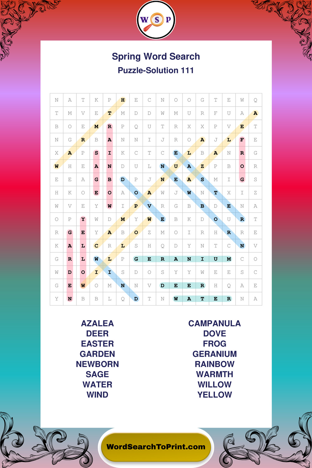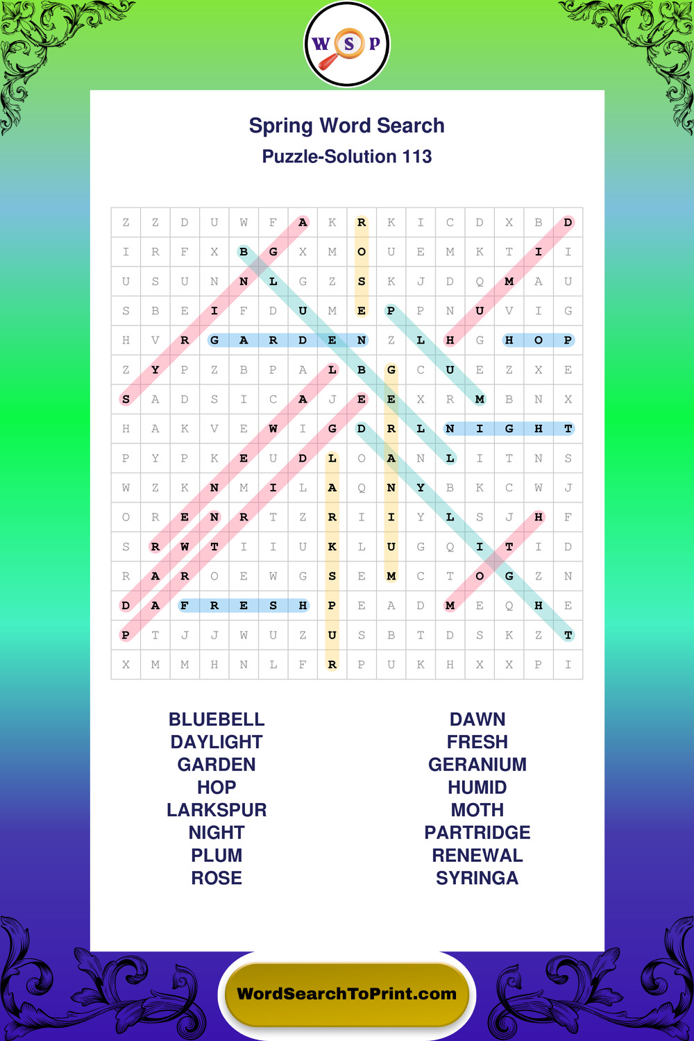 Free Large Print Spring Wordsearches
