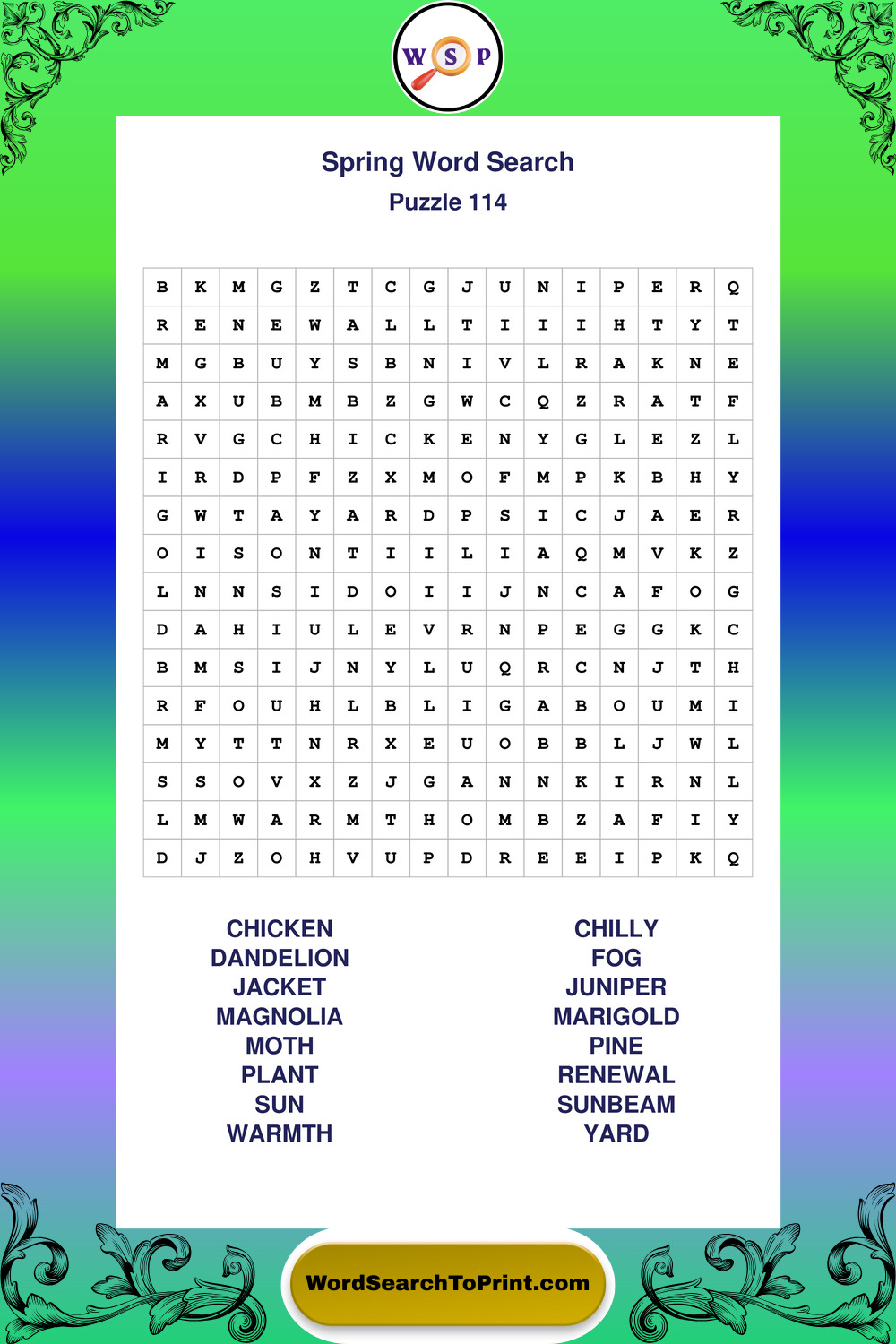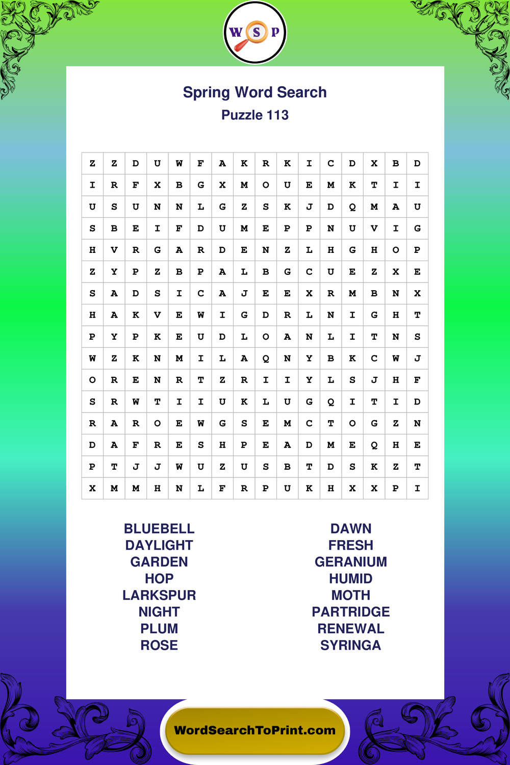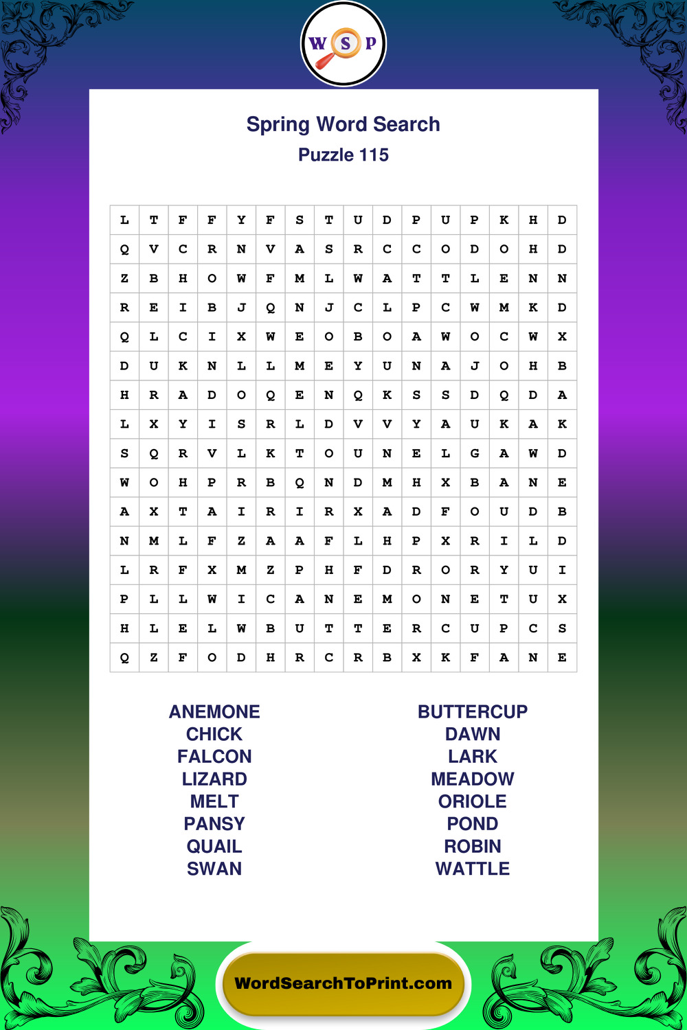 Printable Spring Wordsearch Puzzles