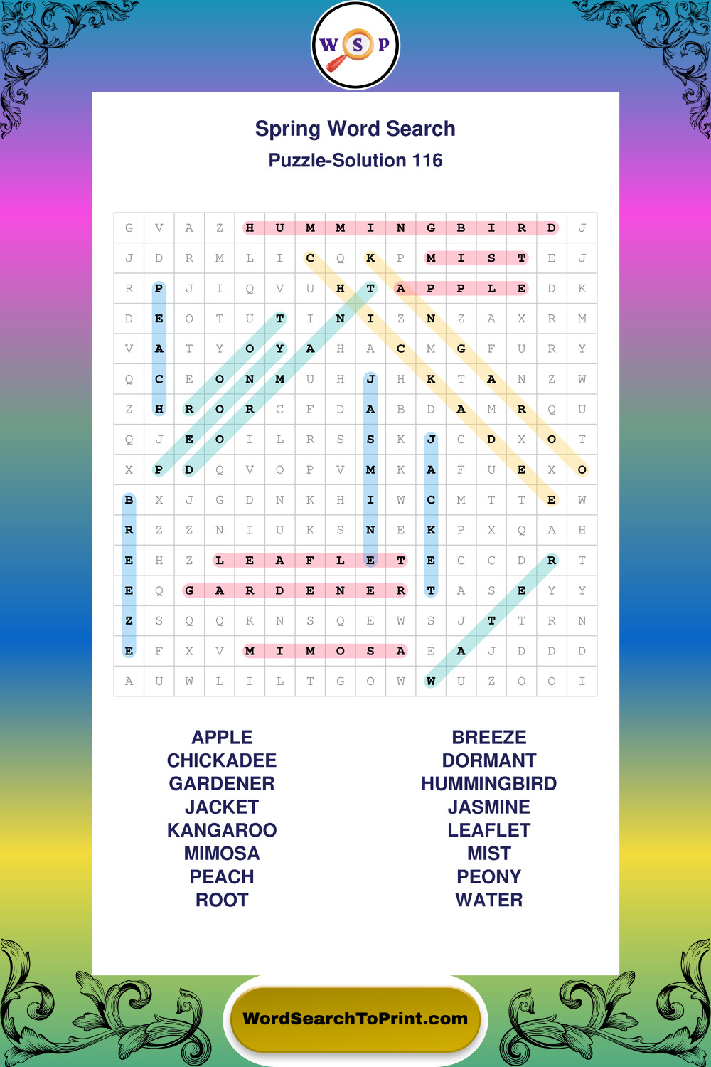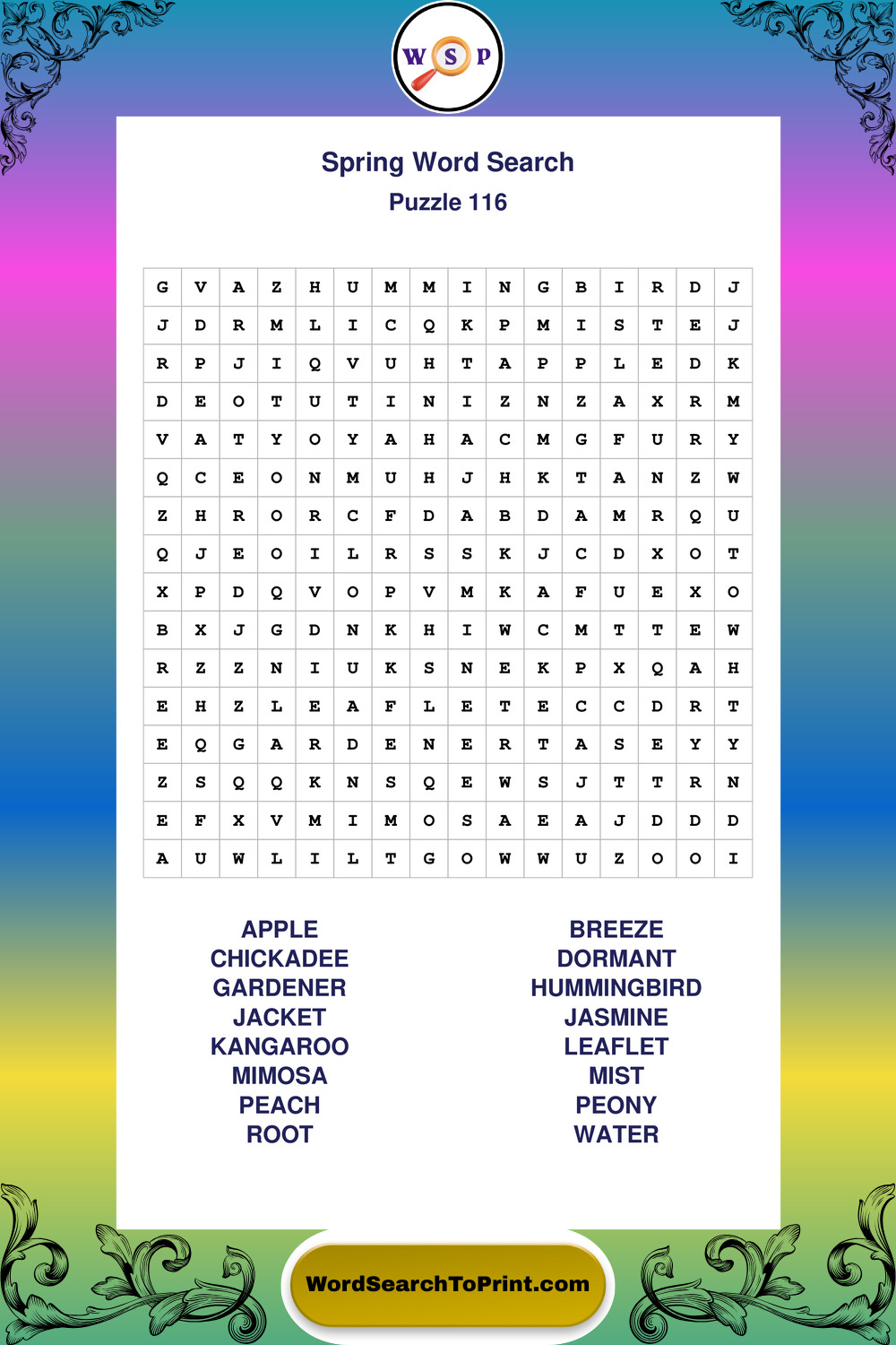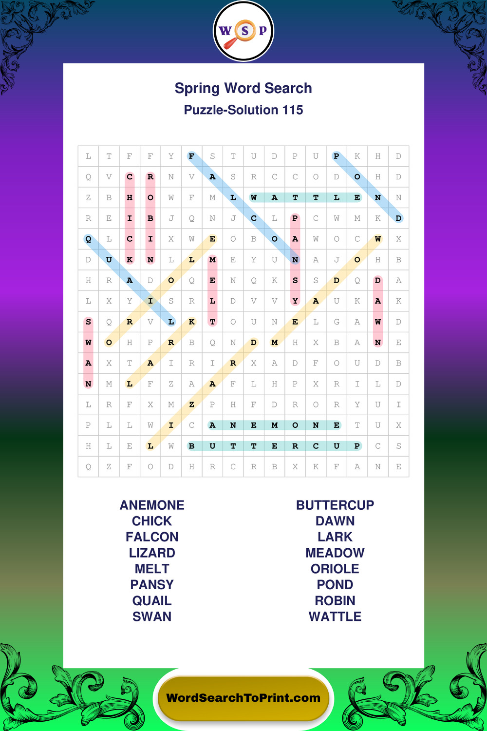 Printable Spring Wordsearch Puzzles