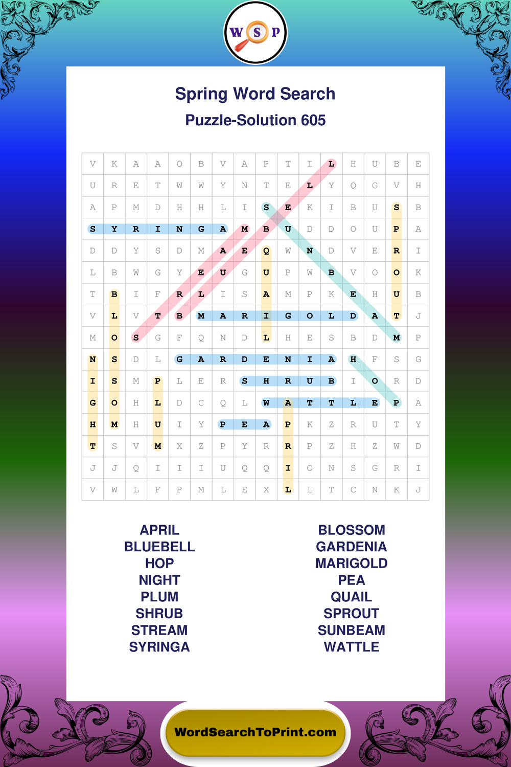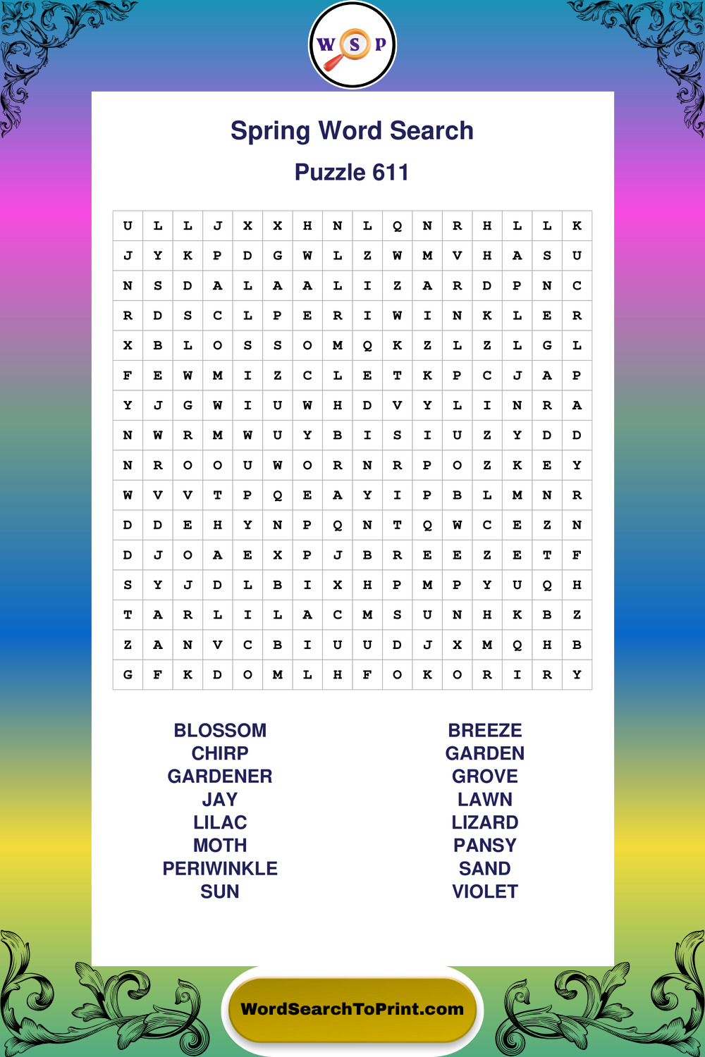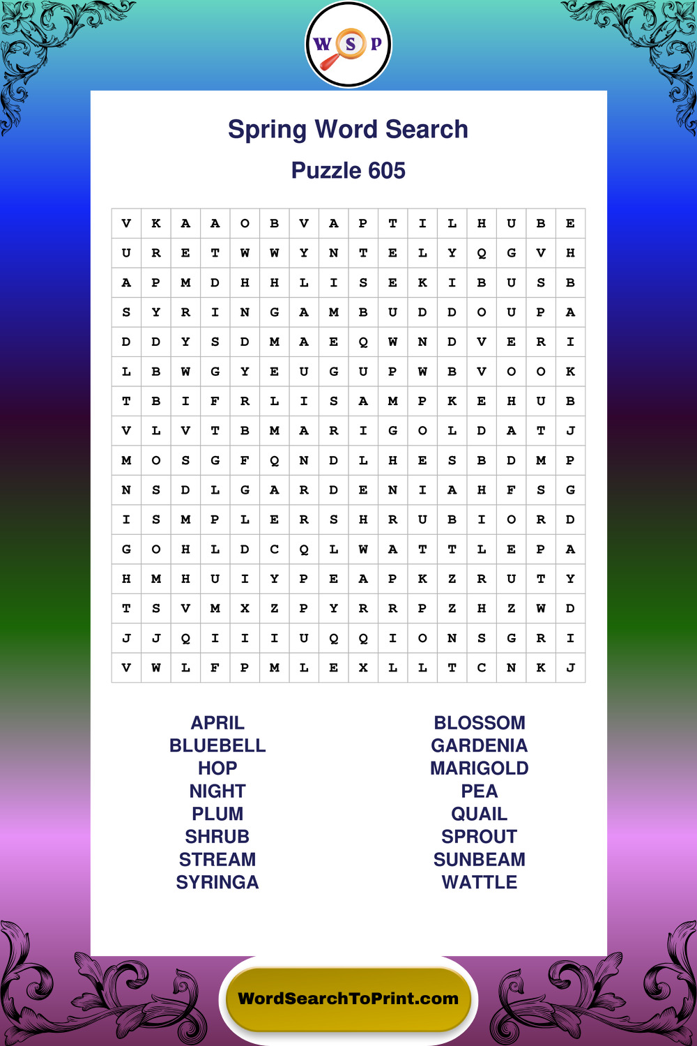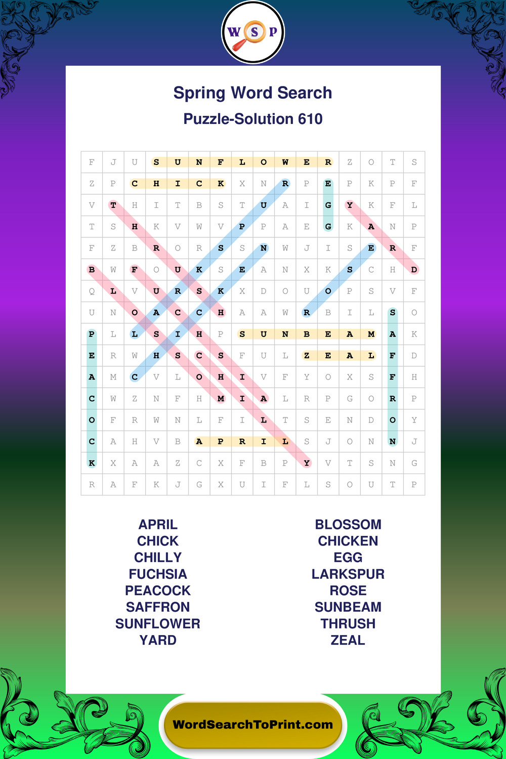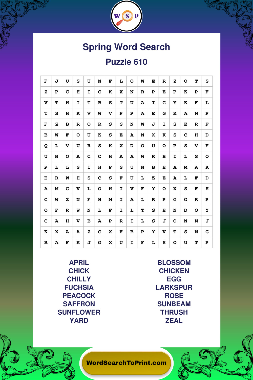 Free Large Print Spring Wordsearches