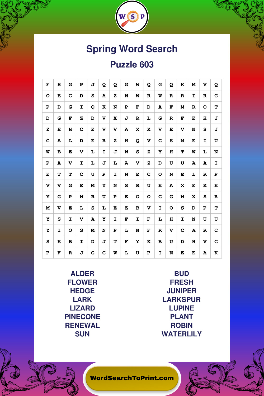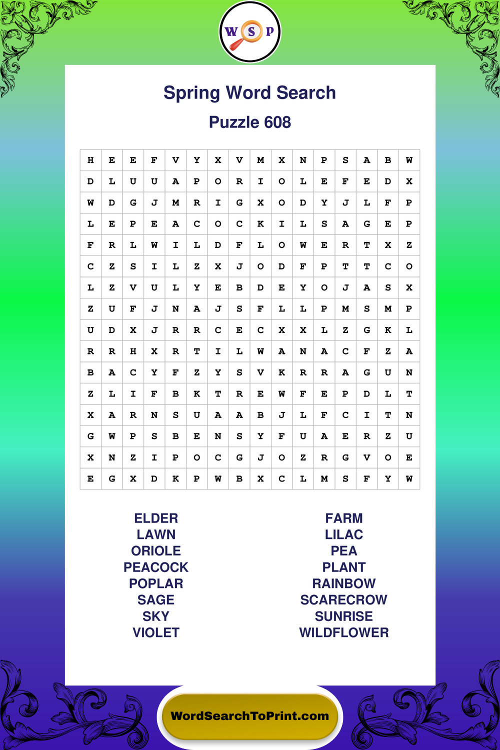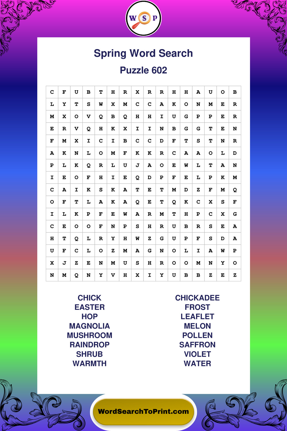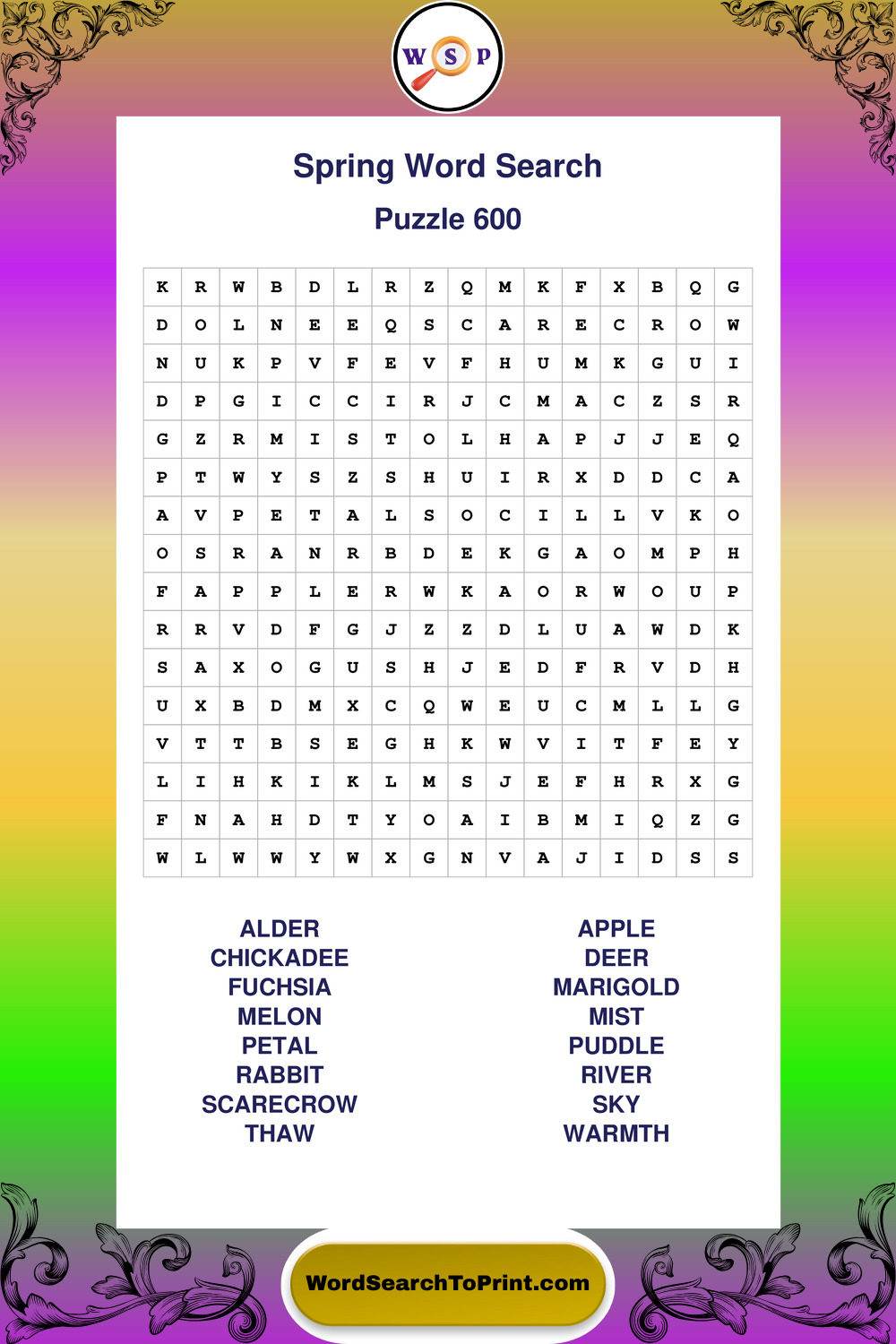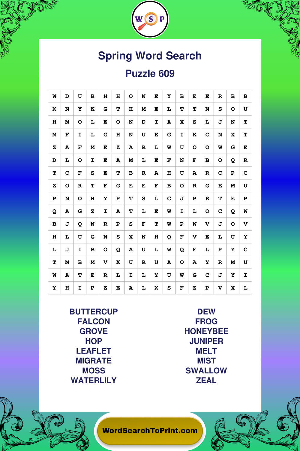 Free Large Print Spring Wordsearches