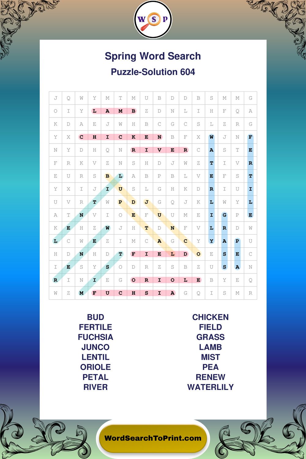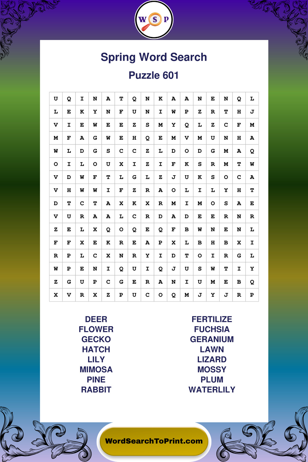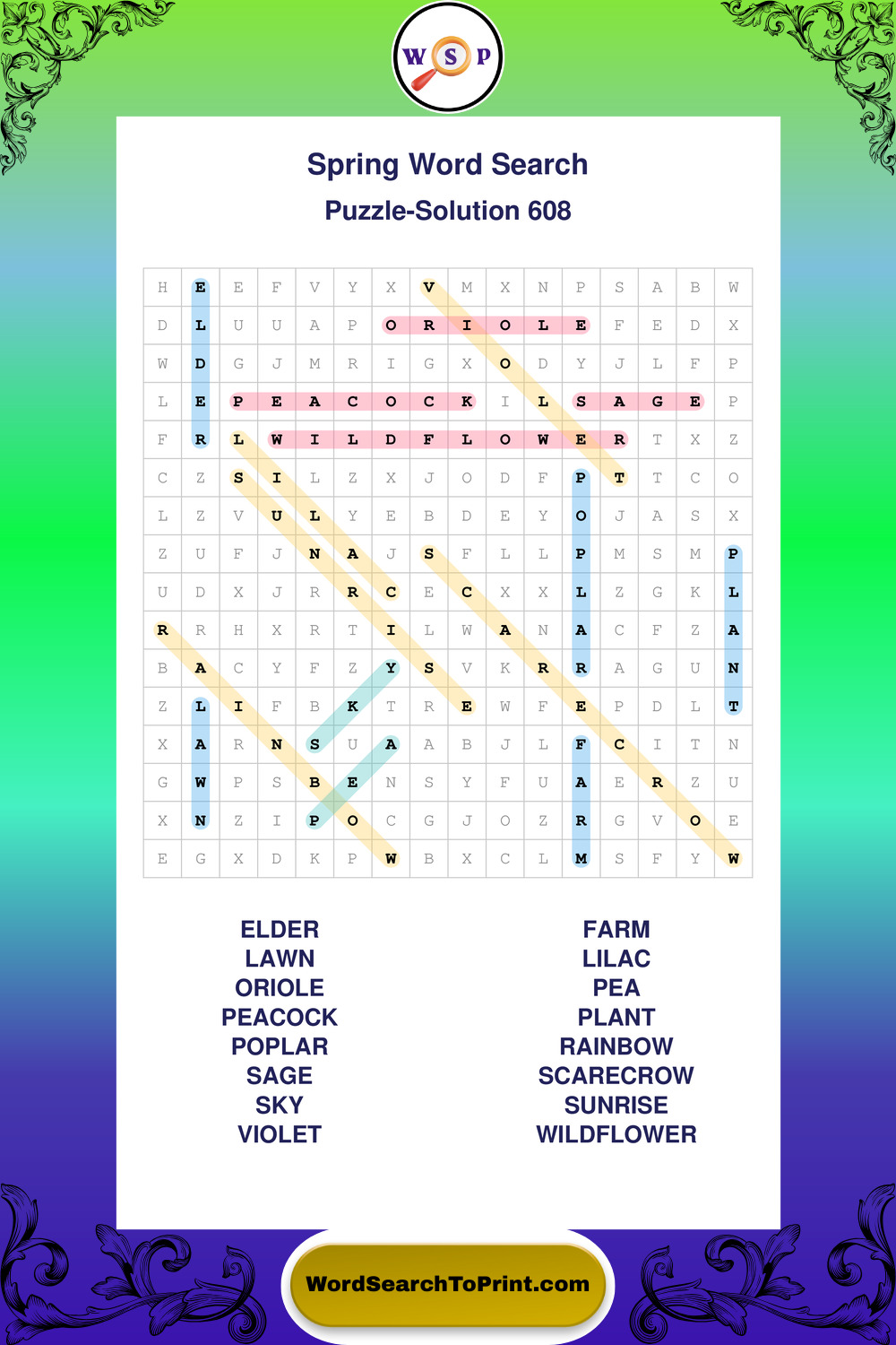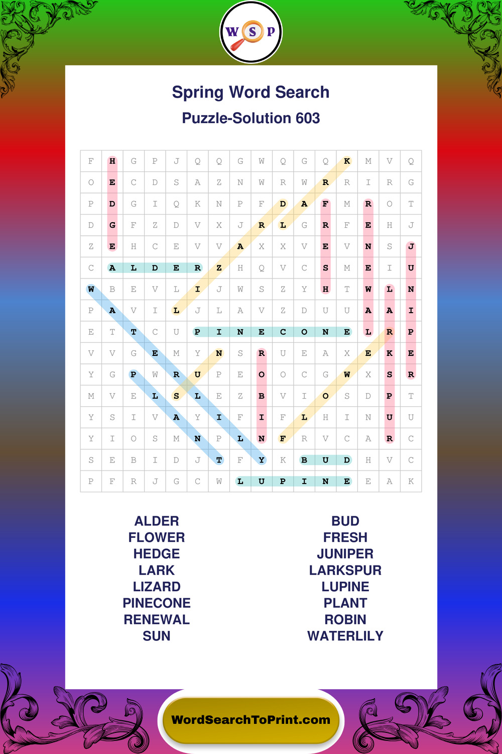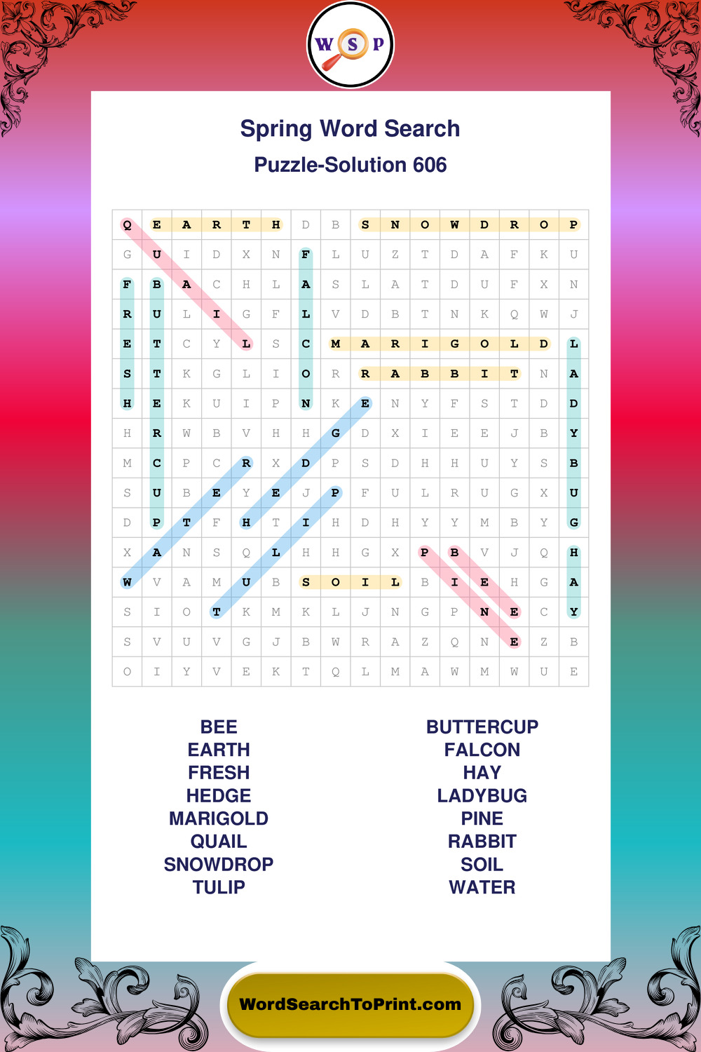 Free Large Print Spring Wordsearches
