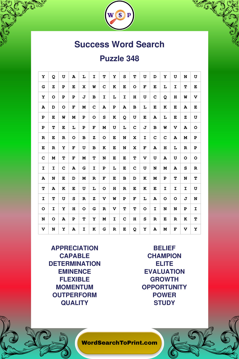 Printable Success Wordsearch Puzzles