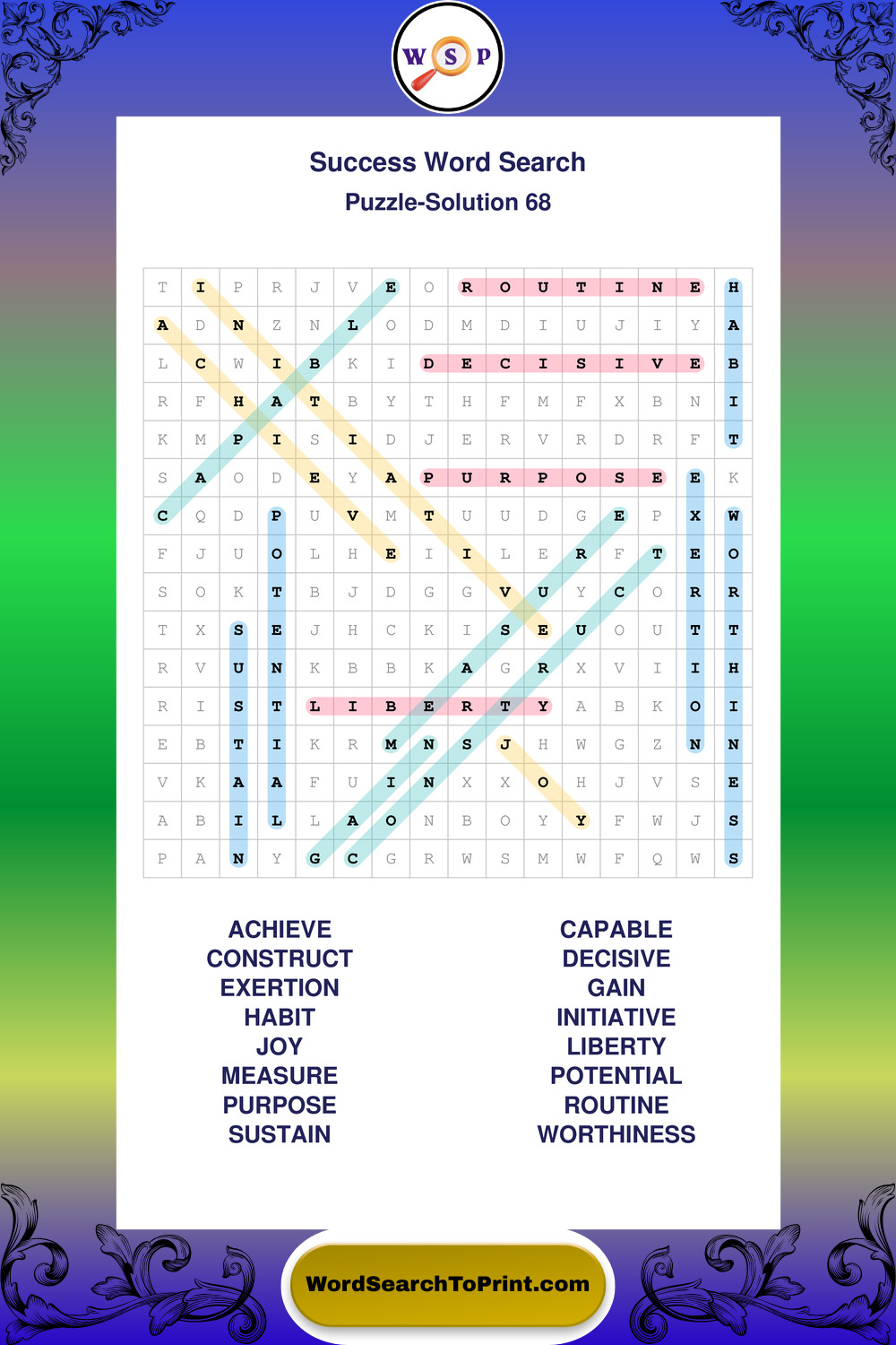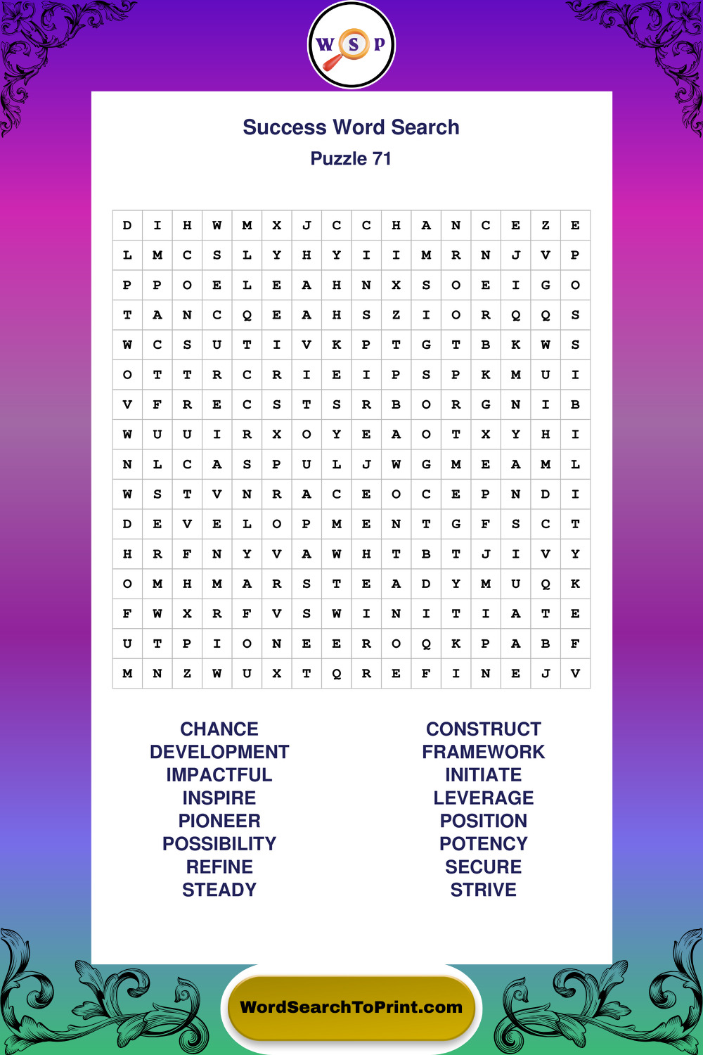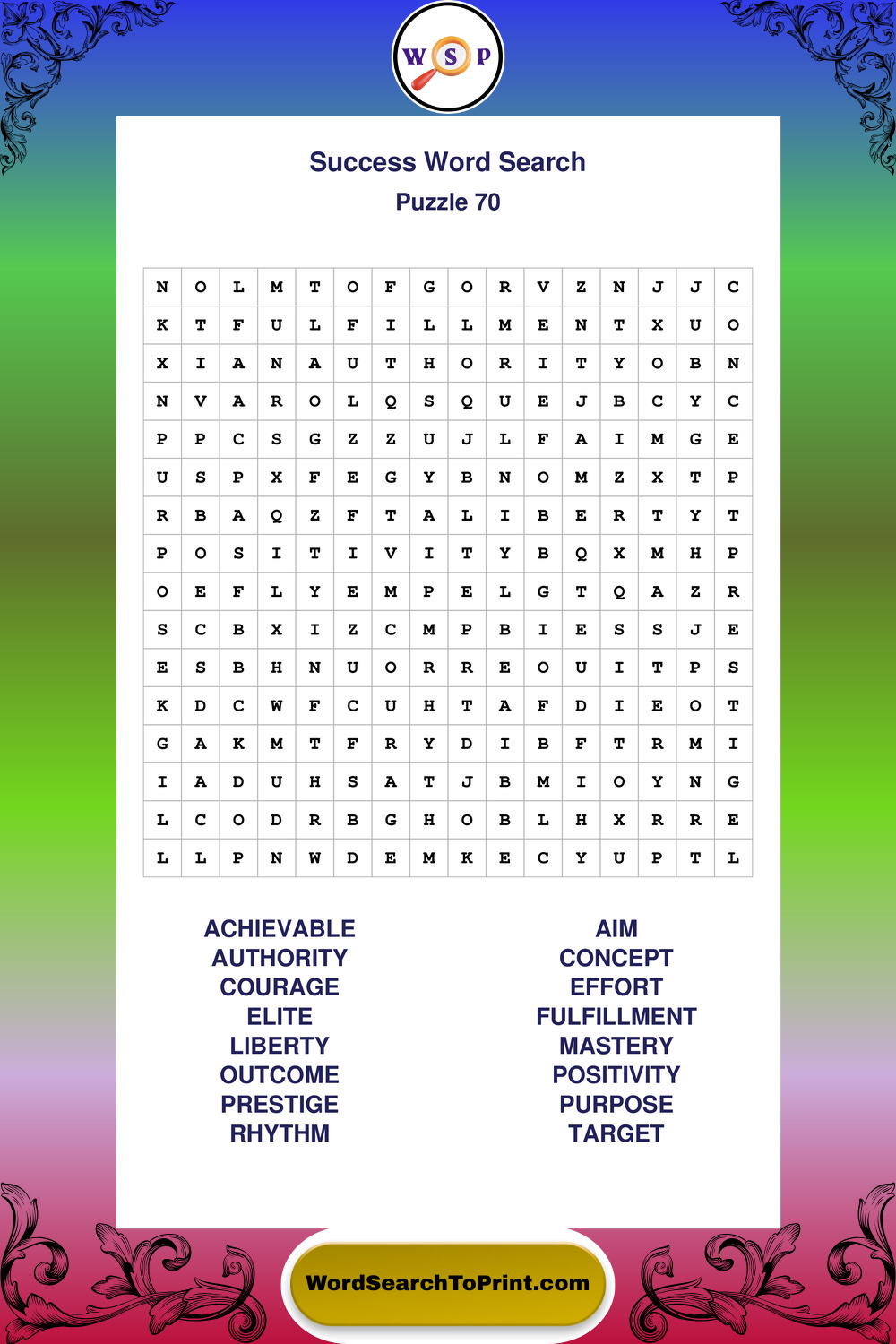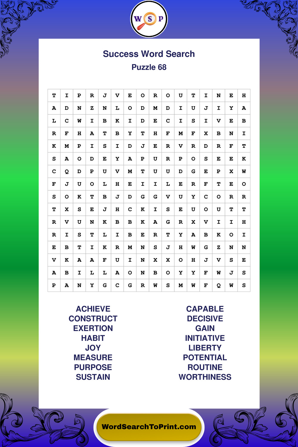 Printable Success Wordsearch Puzzles