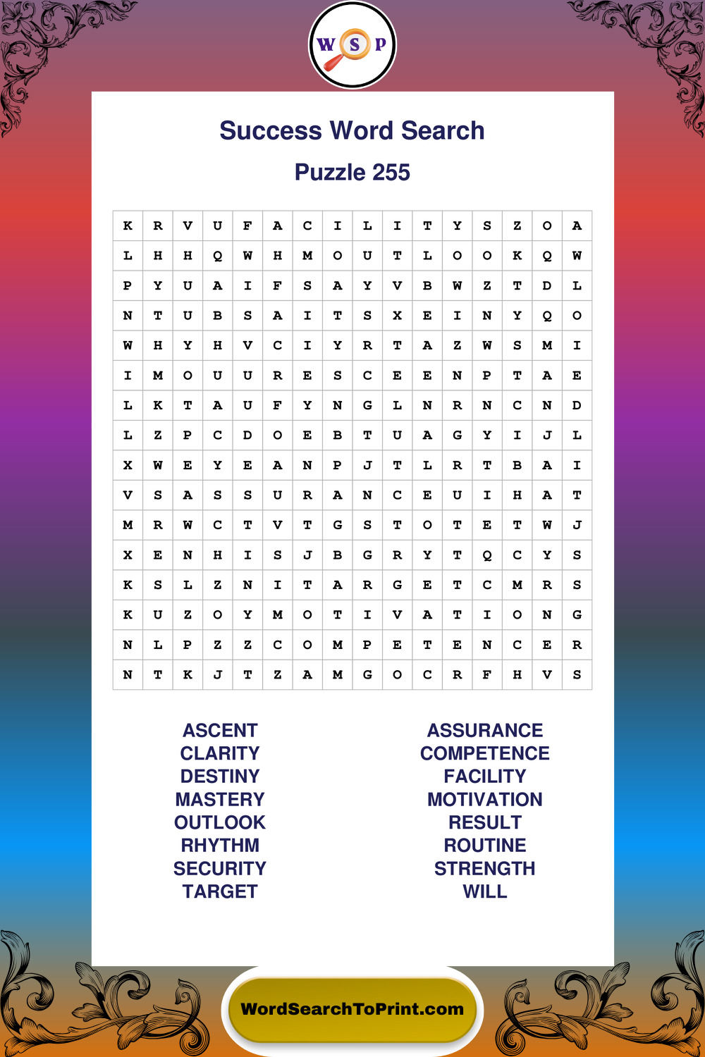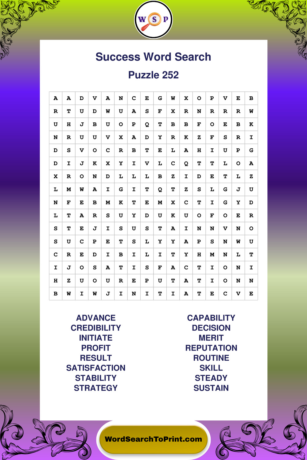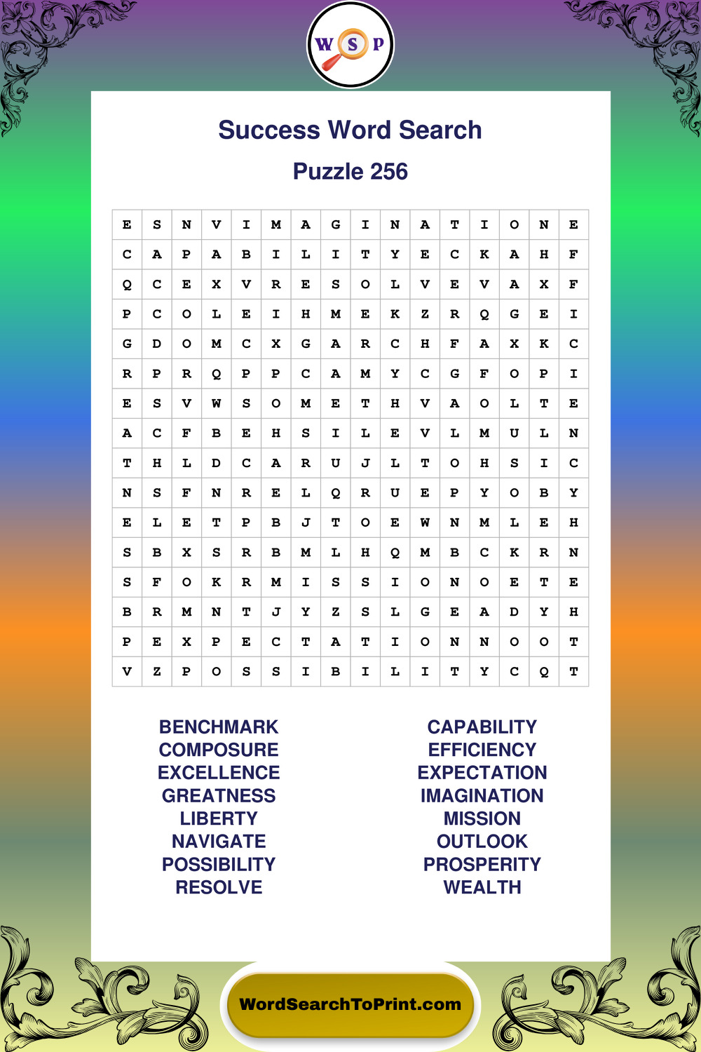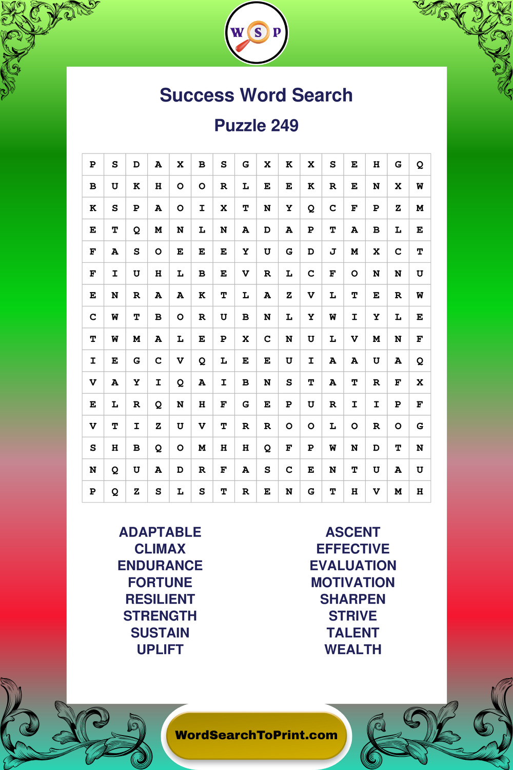 Printable Success Wordsearch Puzzles