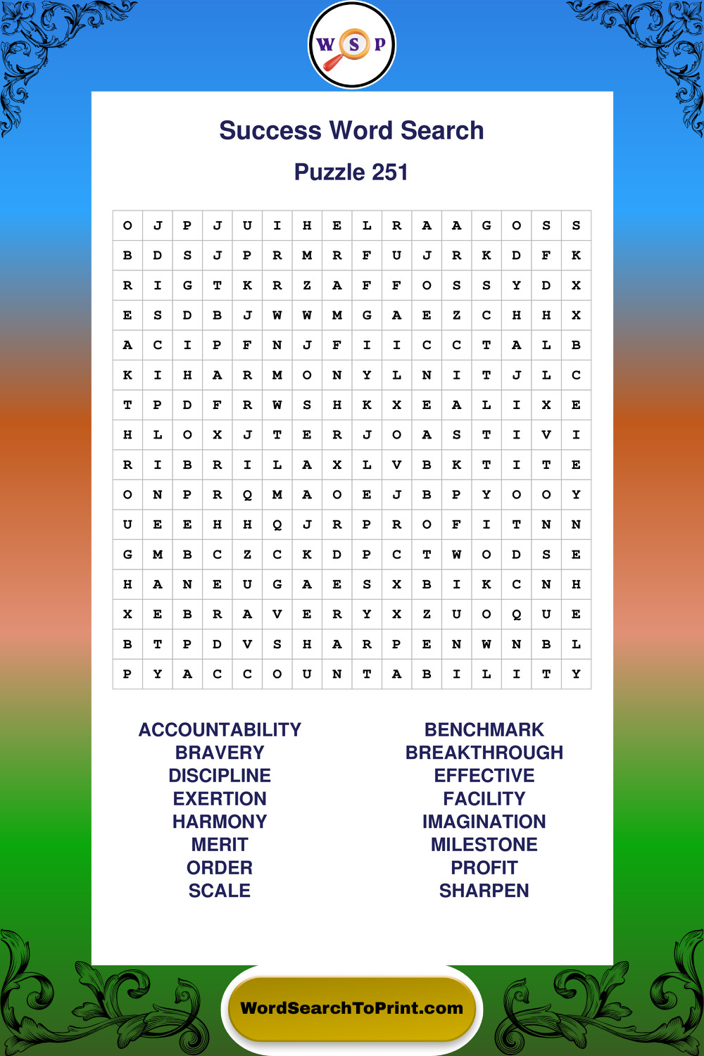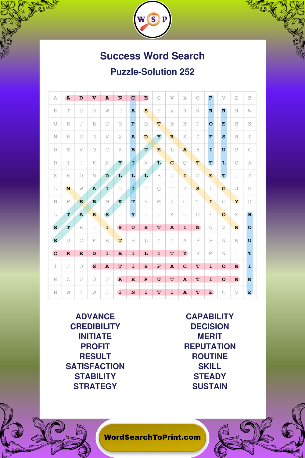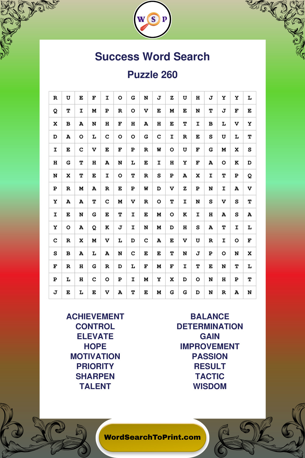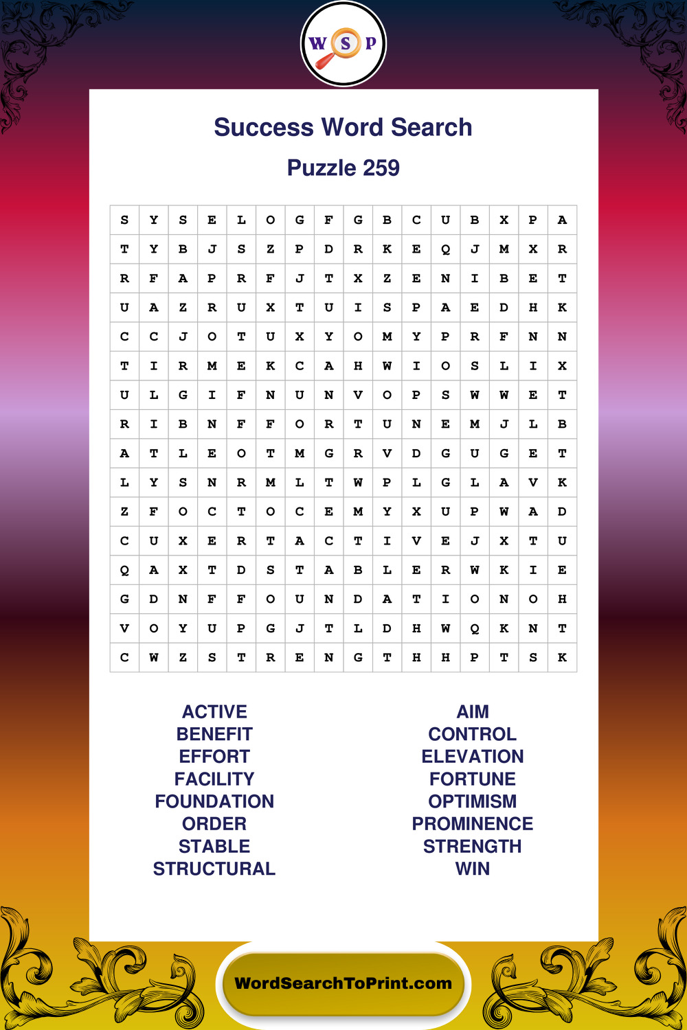 Printable Success Wordsearch Puzzles