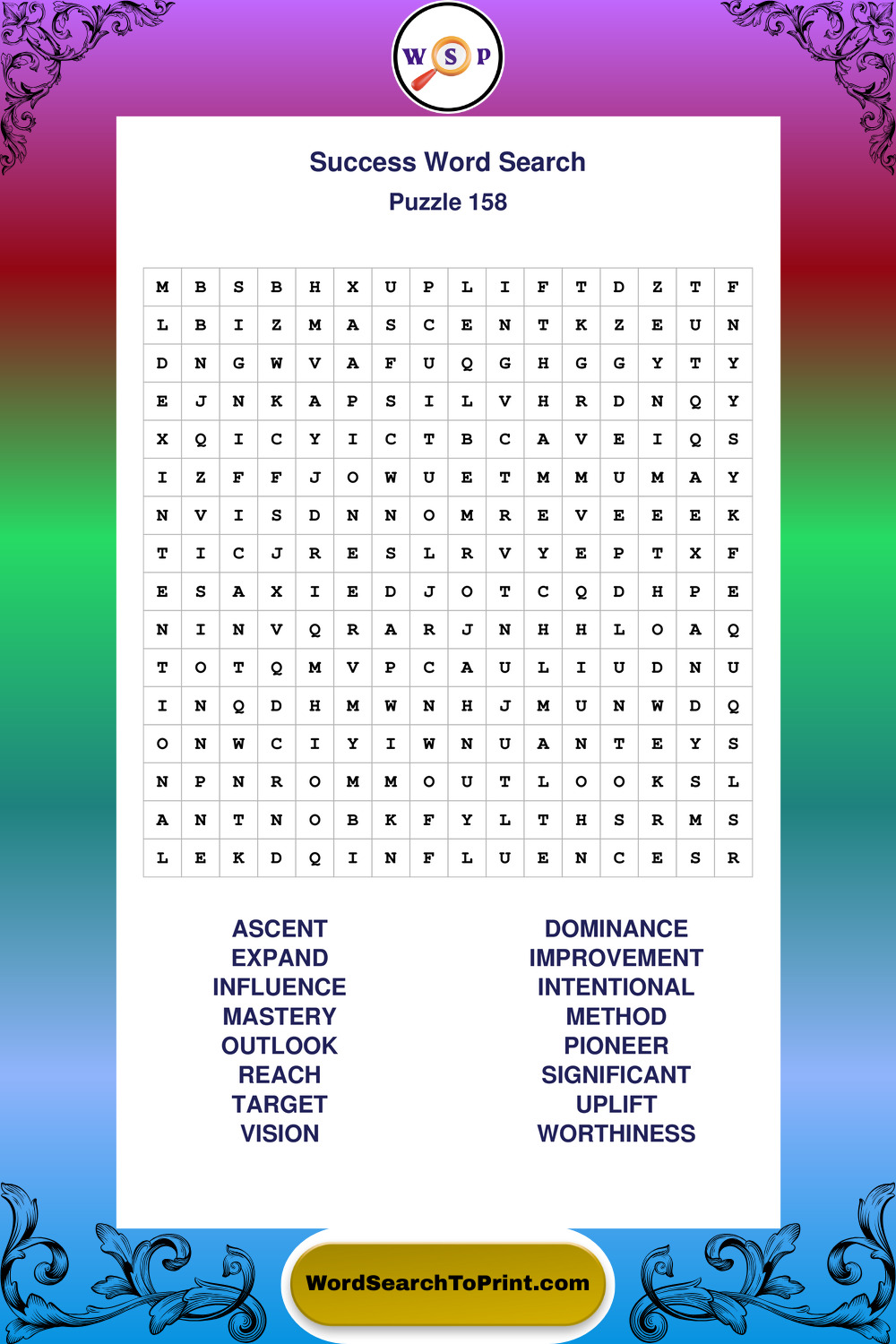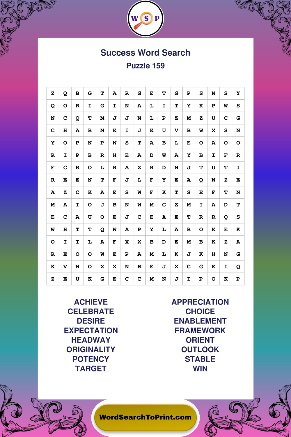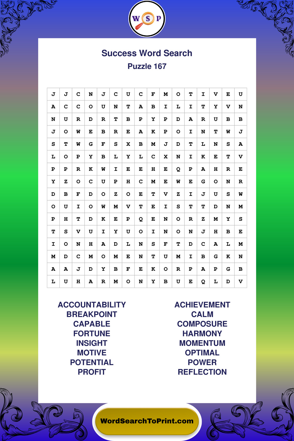 Printable Success Wordsearch Puzzles