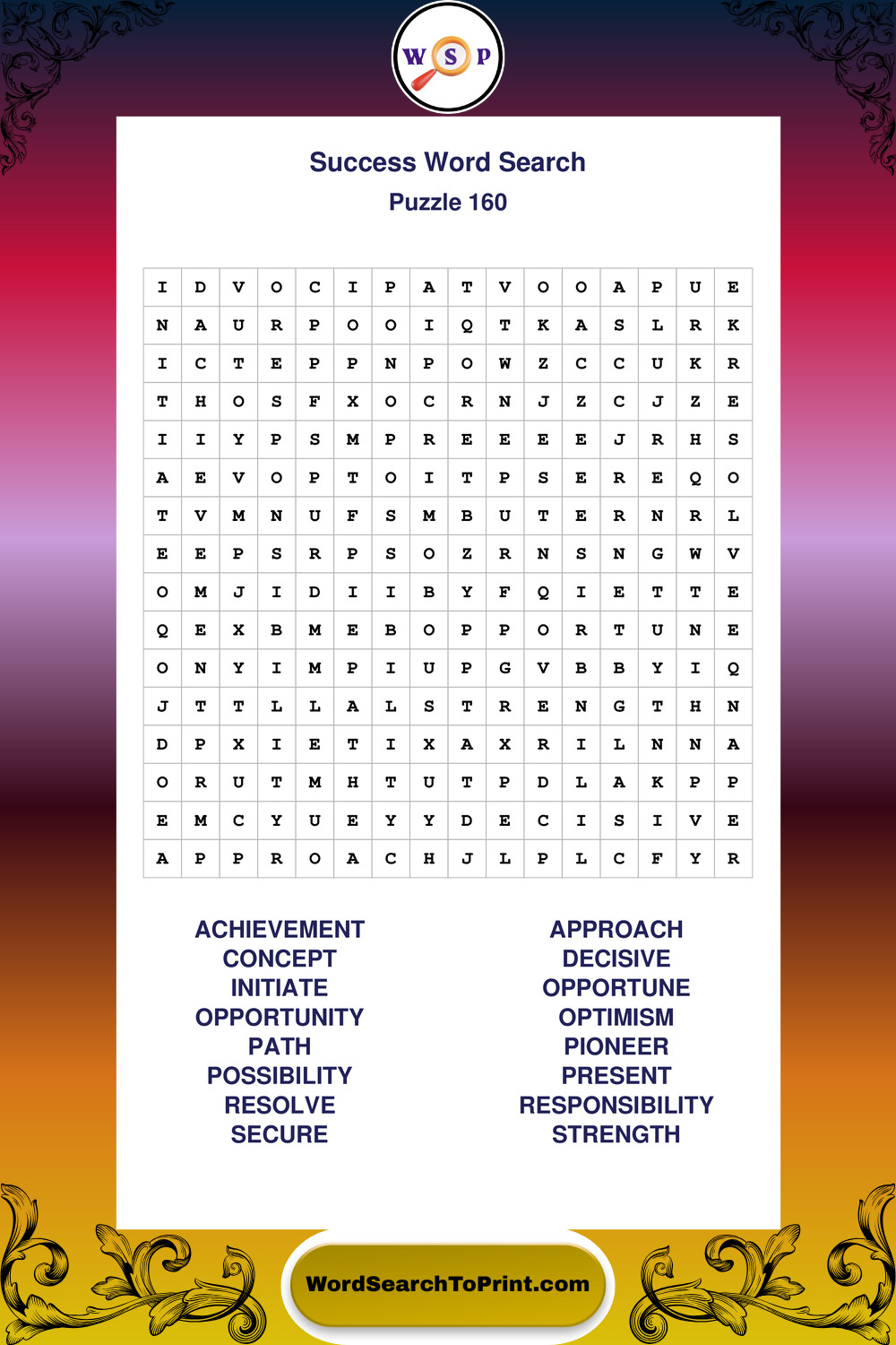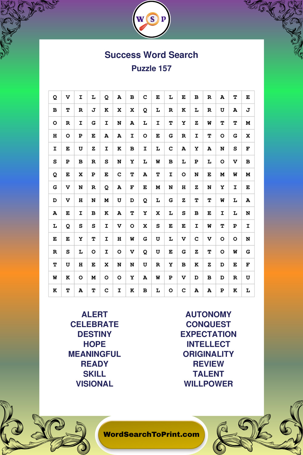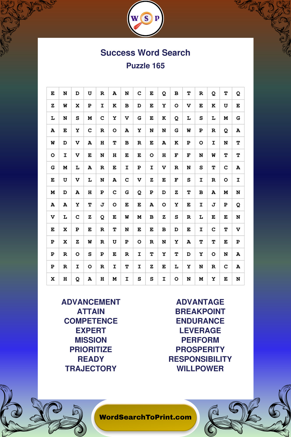 Printable Success Wordsearch Puzzles