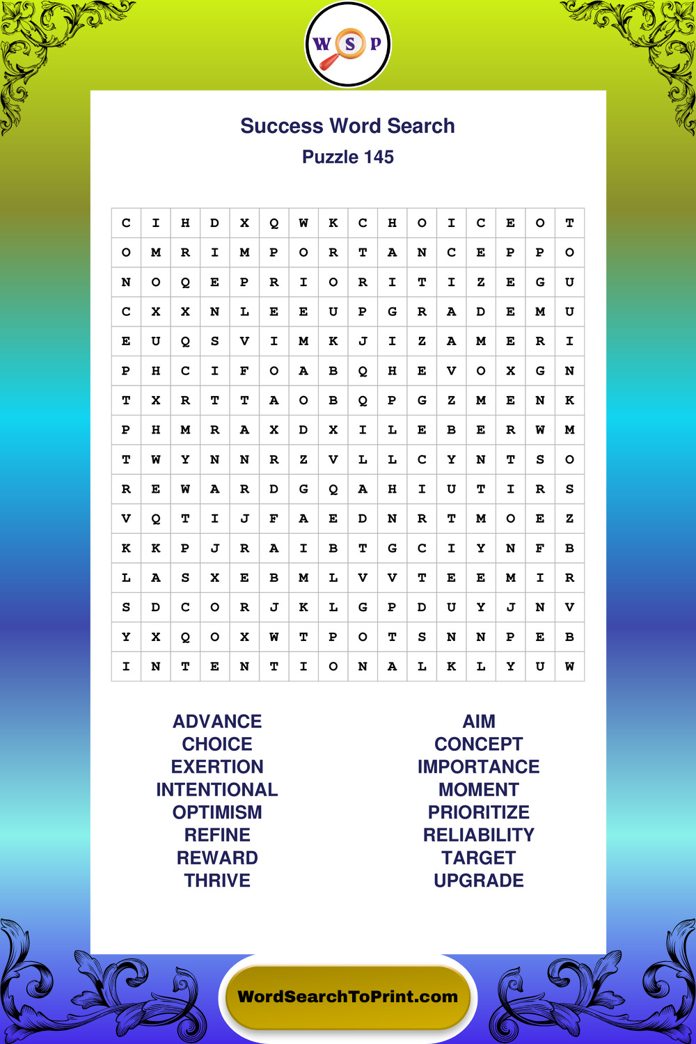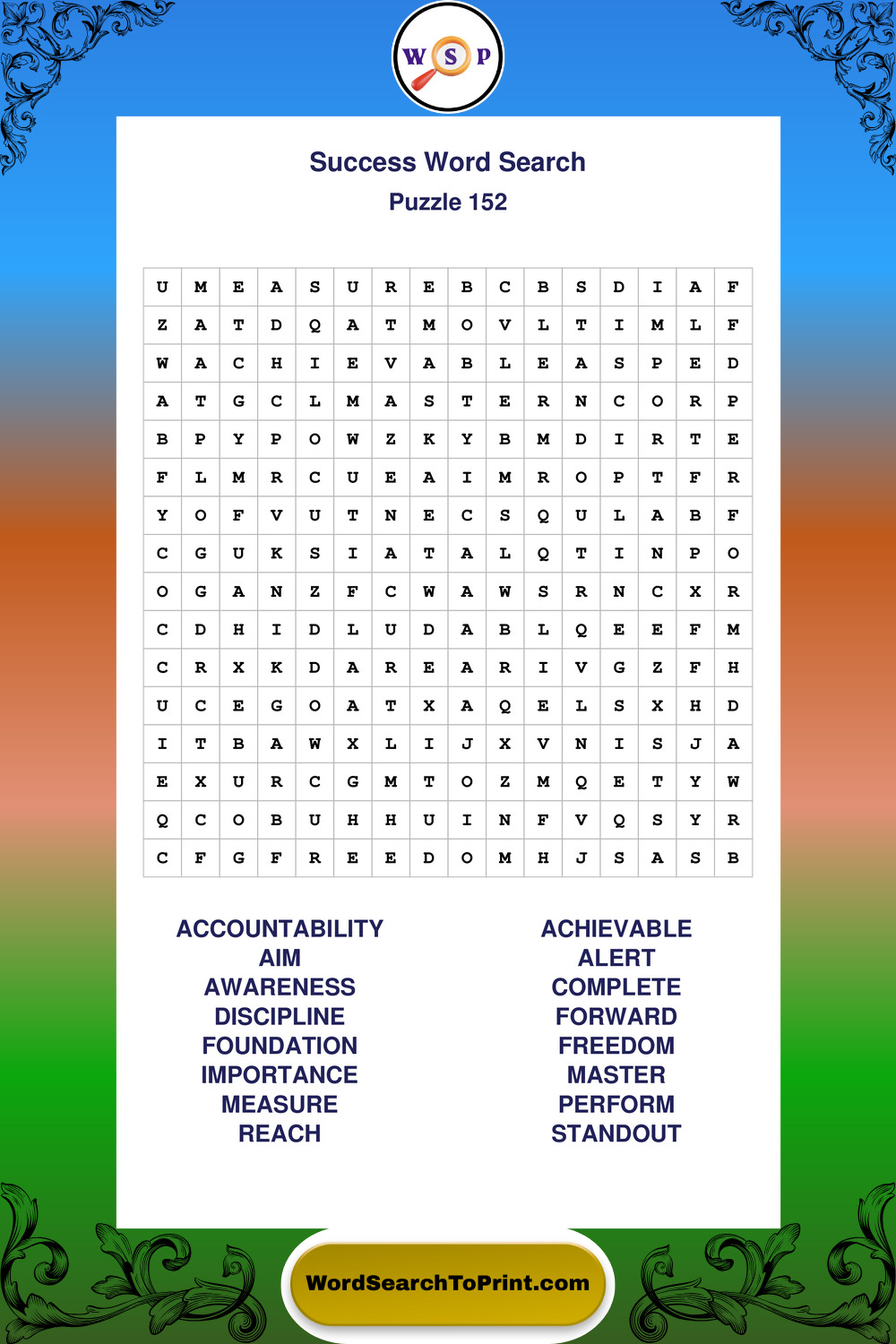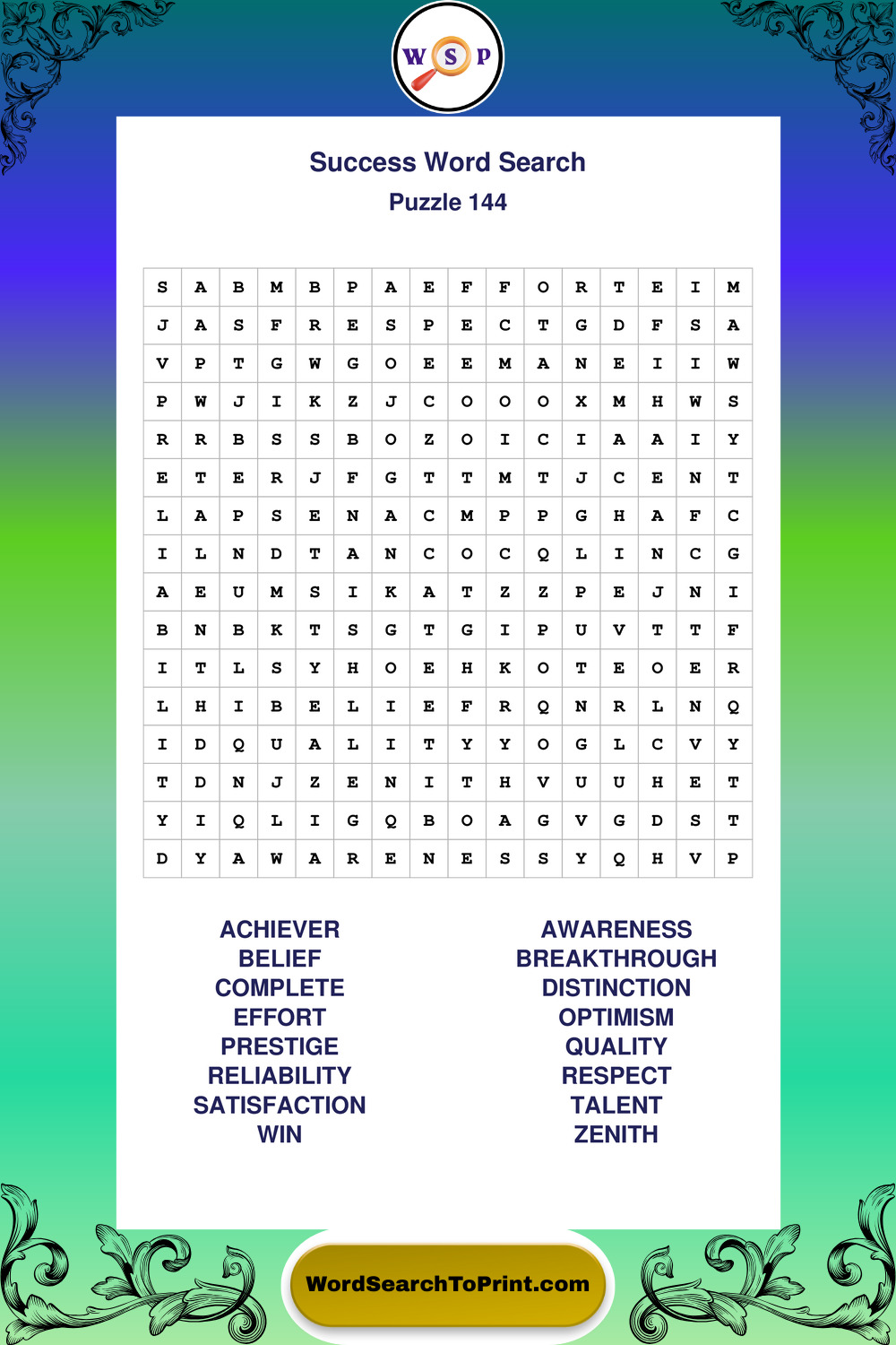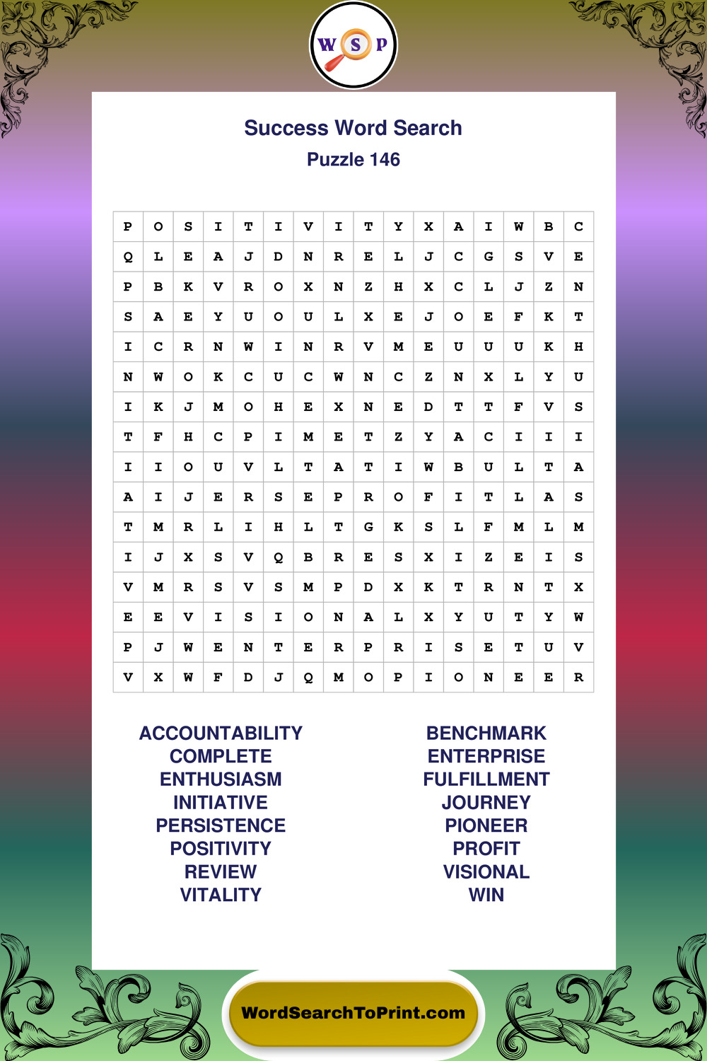 Printable Success Wordsearch Puzzles
