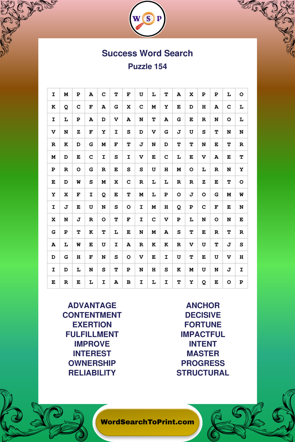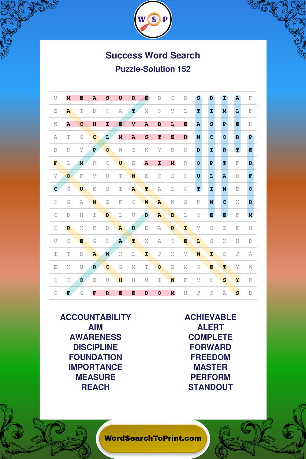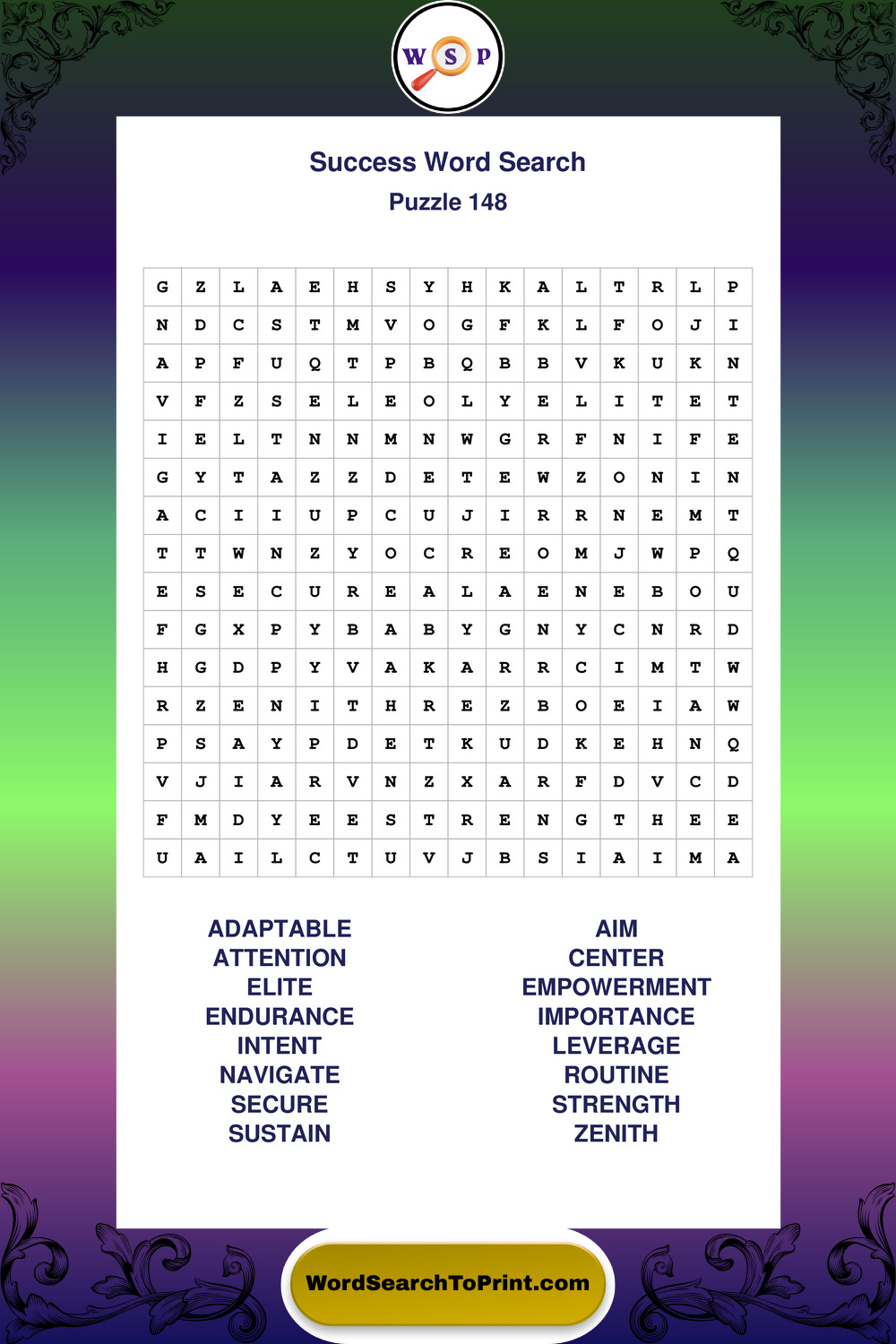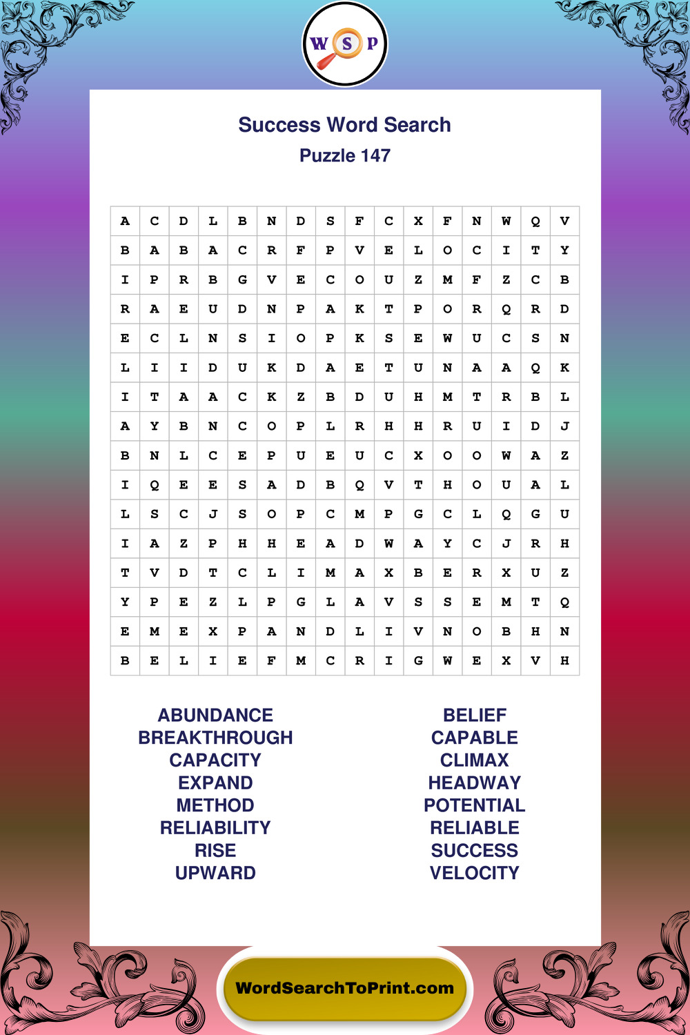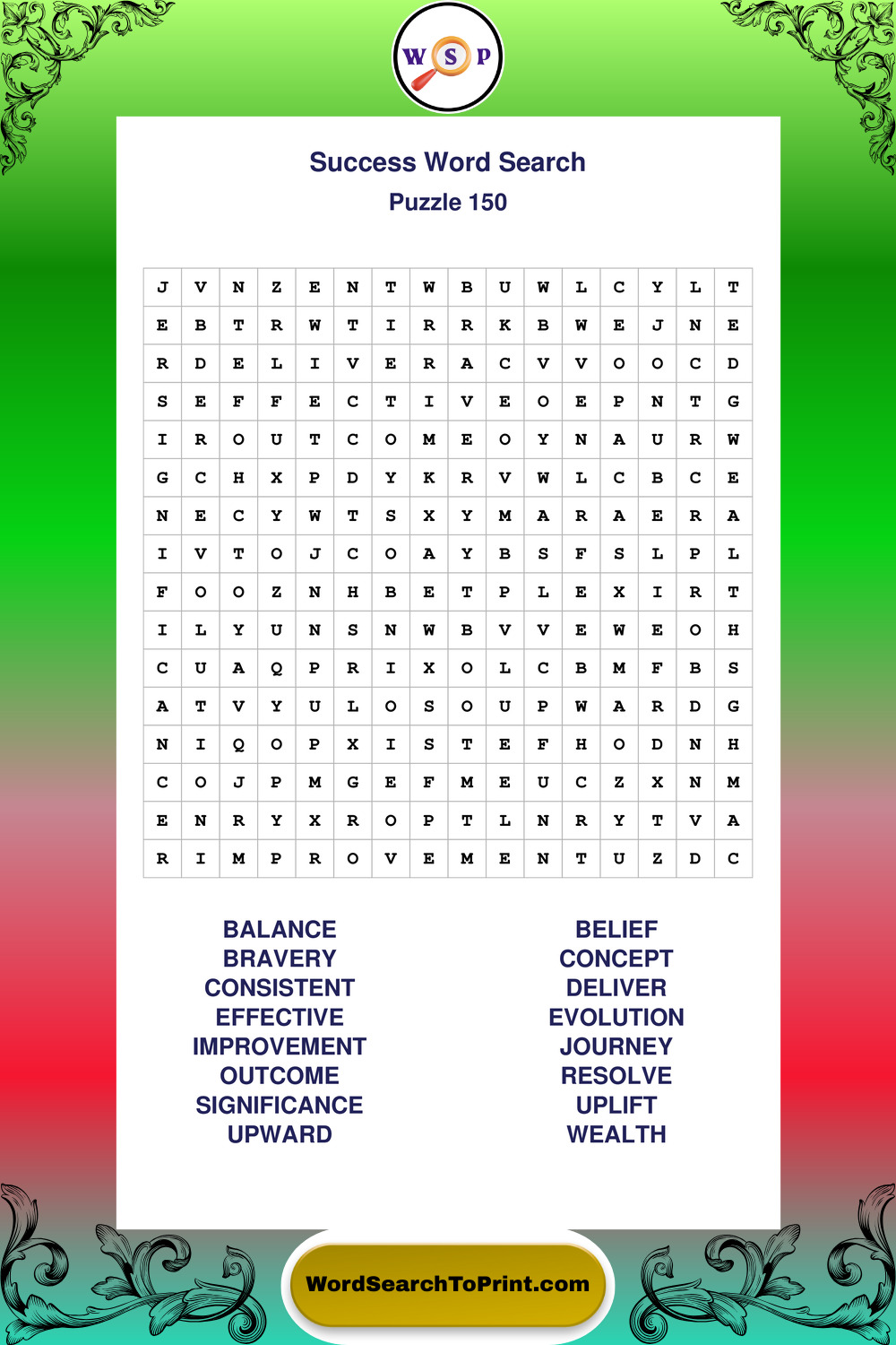 Printable Success Wordsearch Puzzles