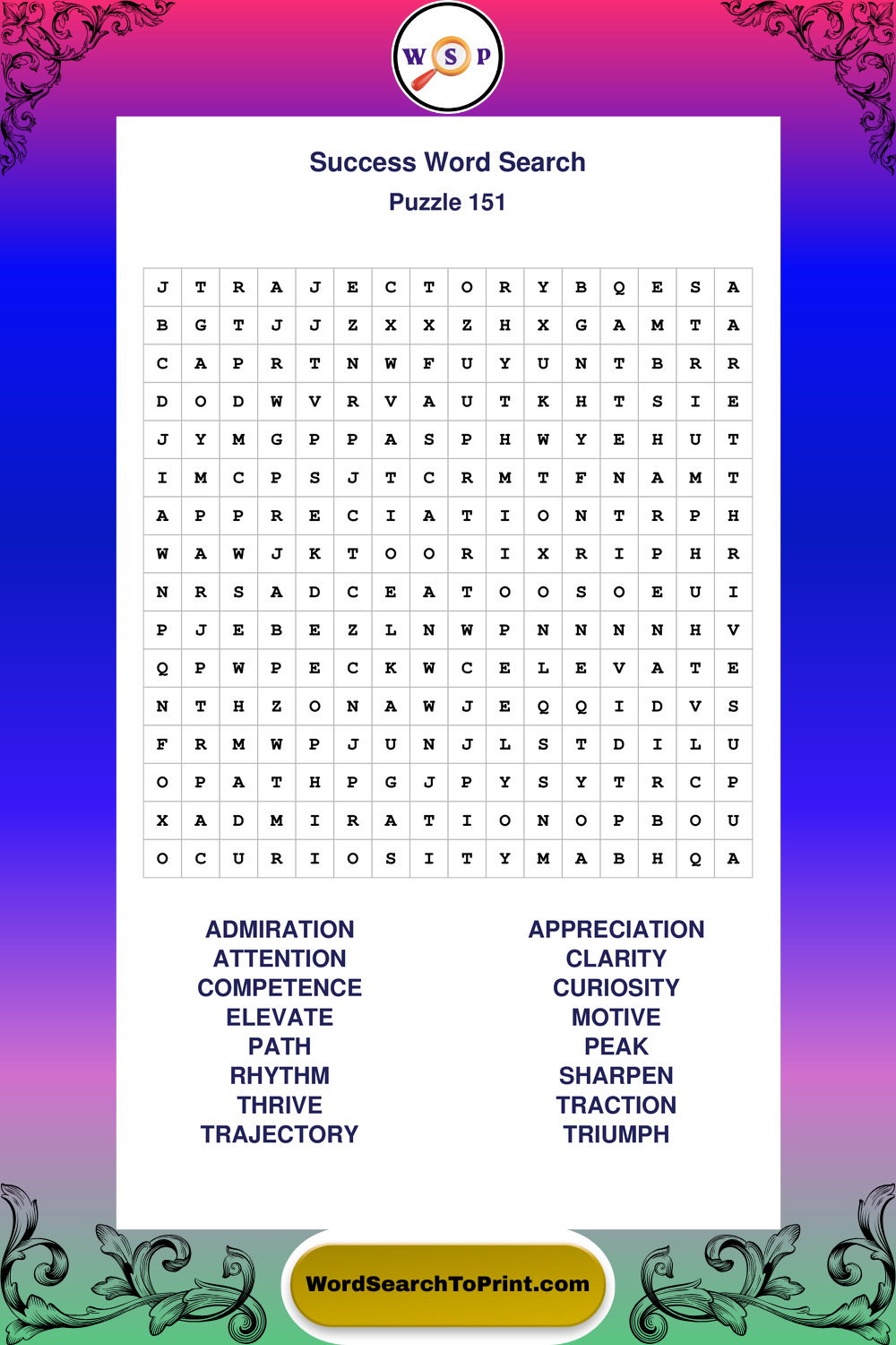 These puzzles focus on motivation, goal setting, life lessons, inspiration, and personal development concepts. They provide a relaxing and effective way to connect with this subject while supporting memory and language skills. You may also enjoy our Time Management word search puzzles and Growth Mindset word search puzzles.