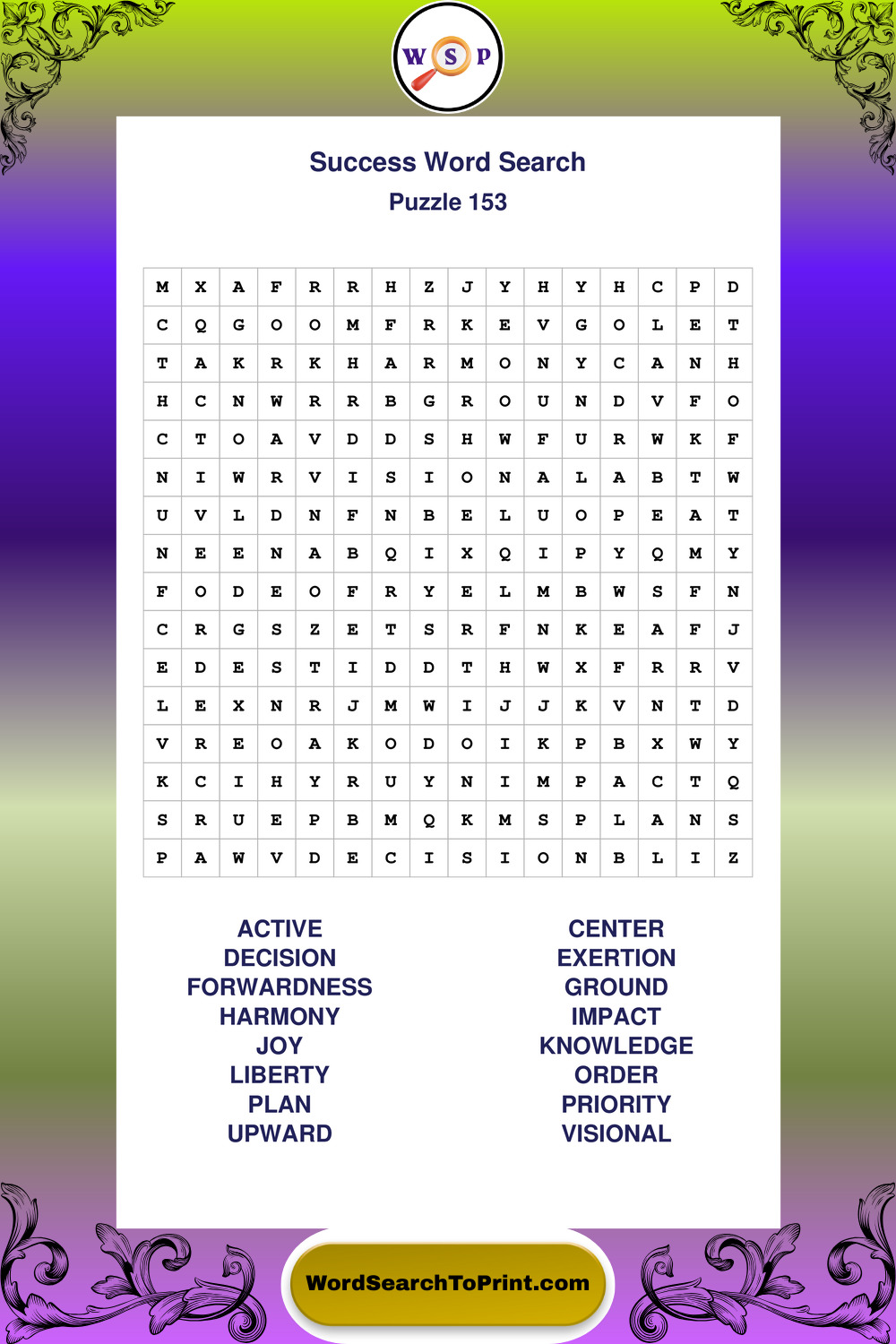 Find easy-to-read large print Success wordsearches designed for peaceful focus and simple, enjoyable solving.
