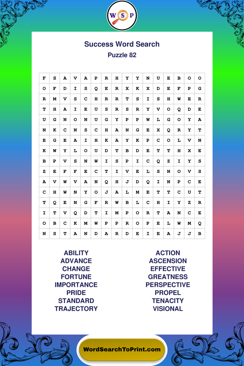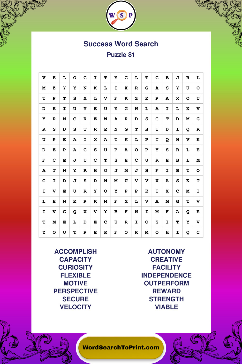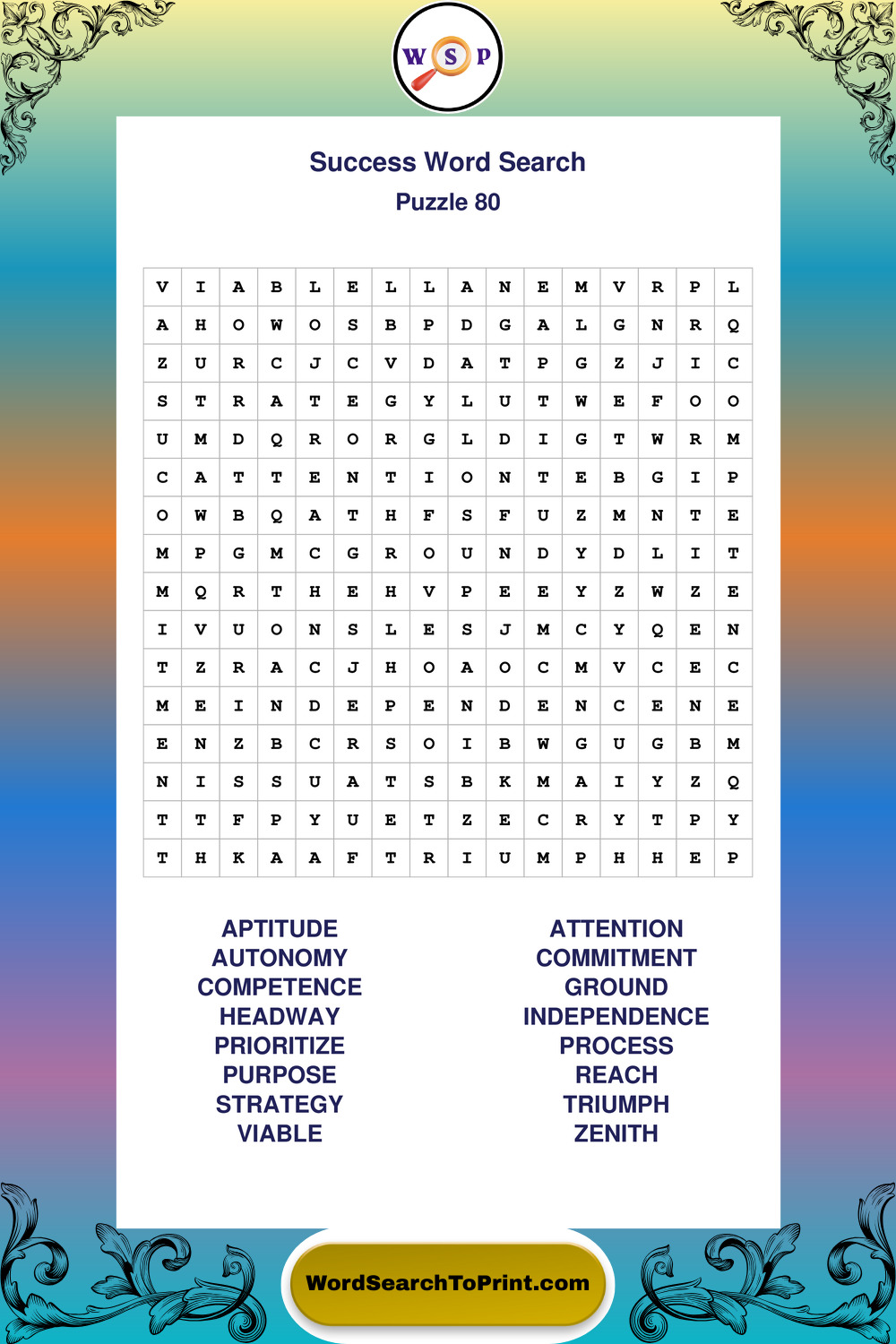 Printable Success Wordsearch Puzzles