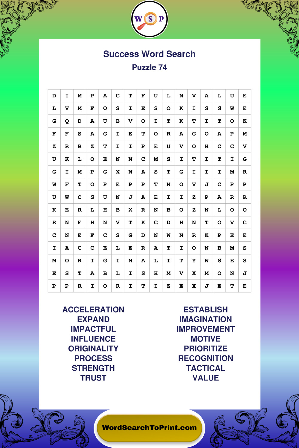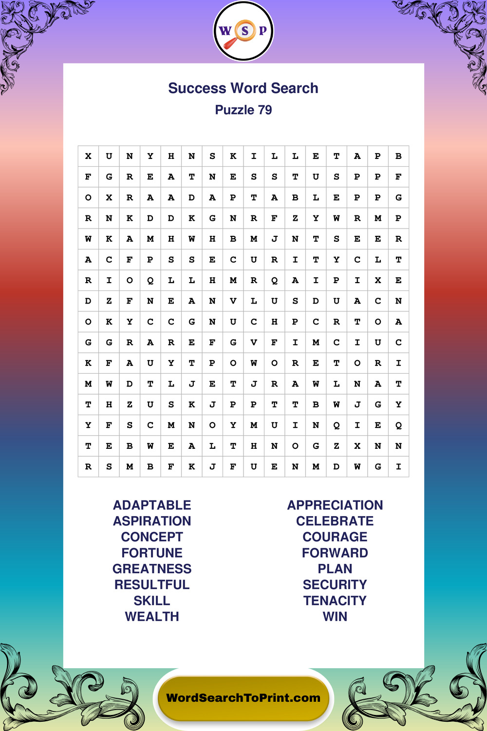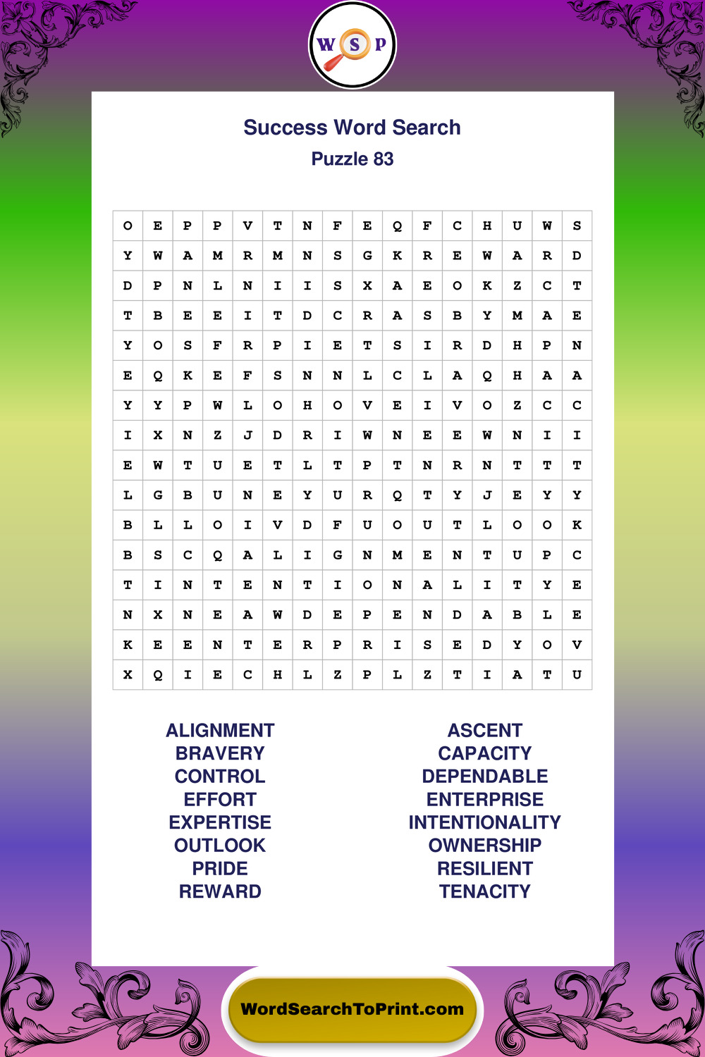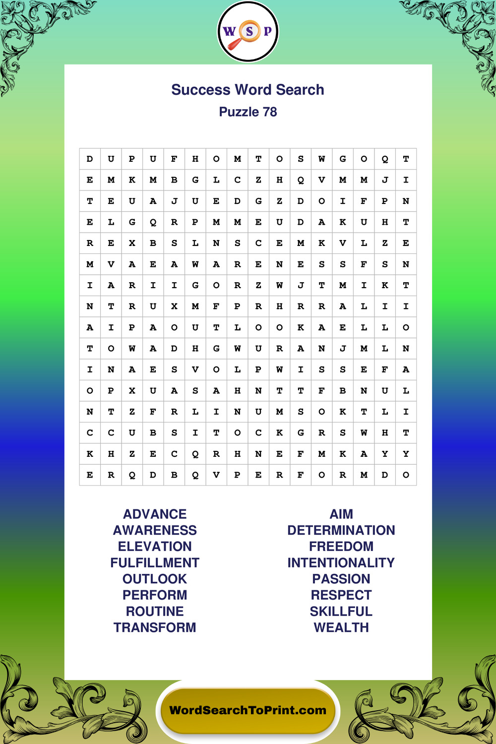 Printable Success Wordsearch Puzzles