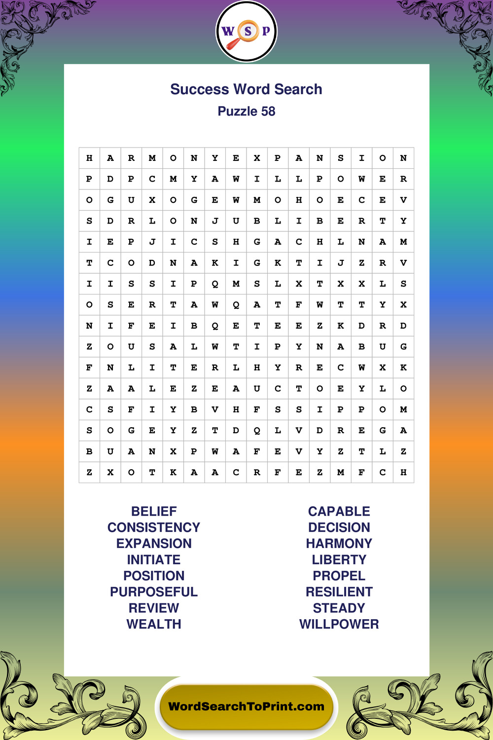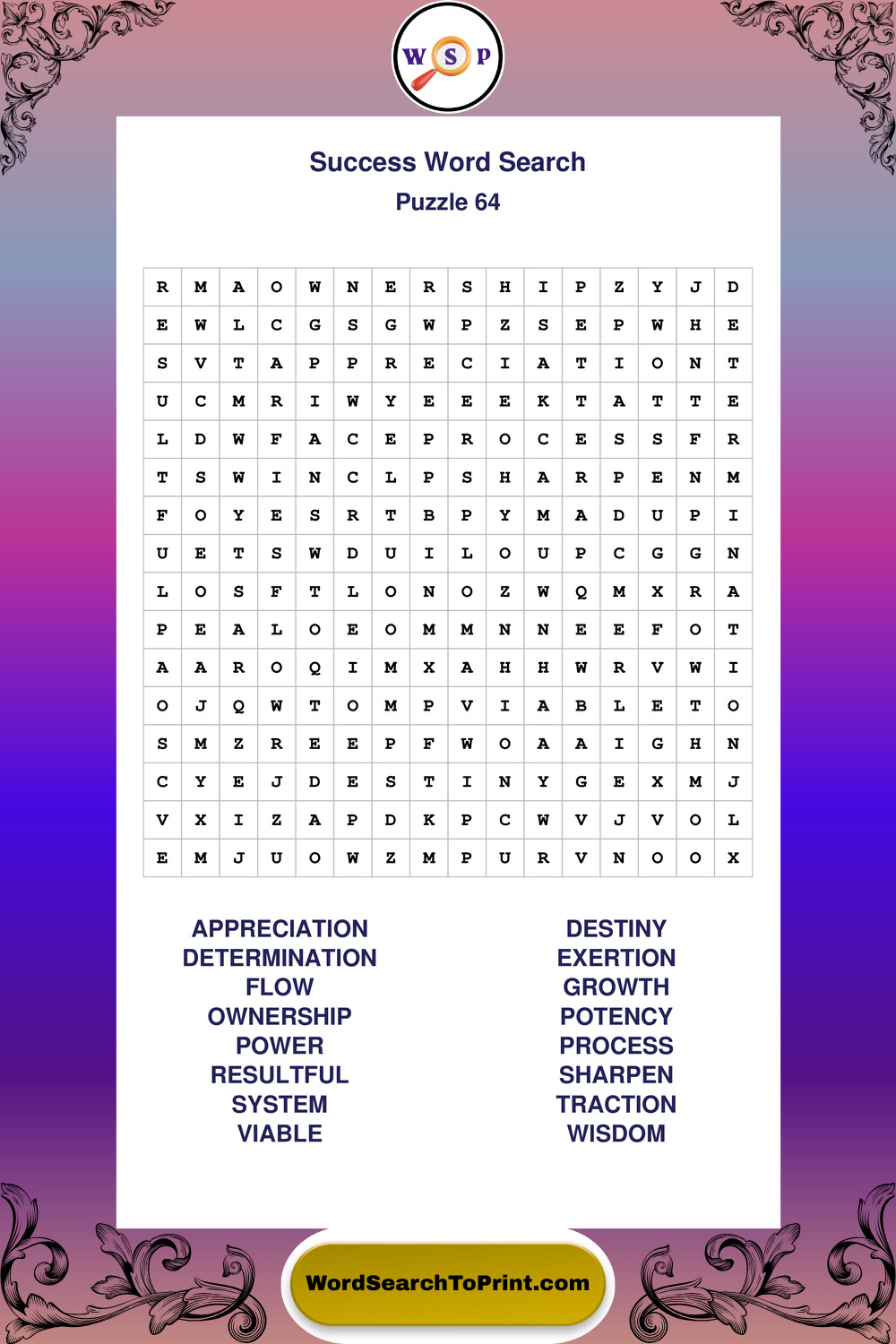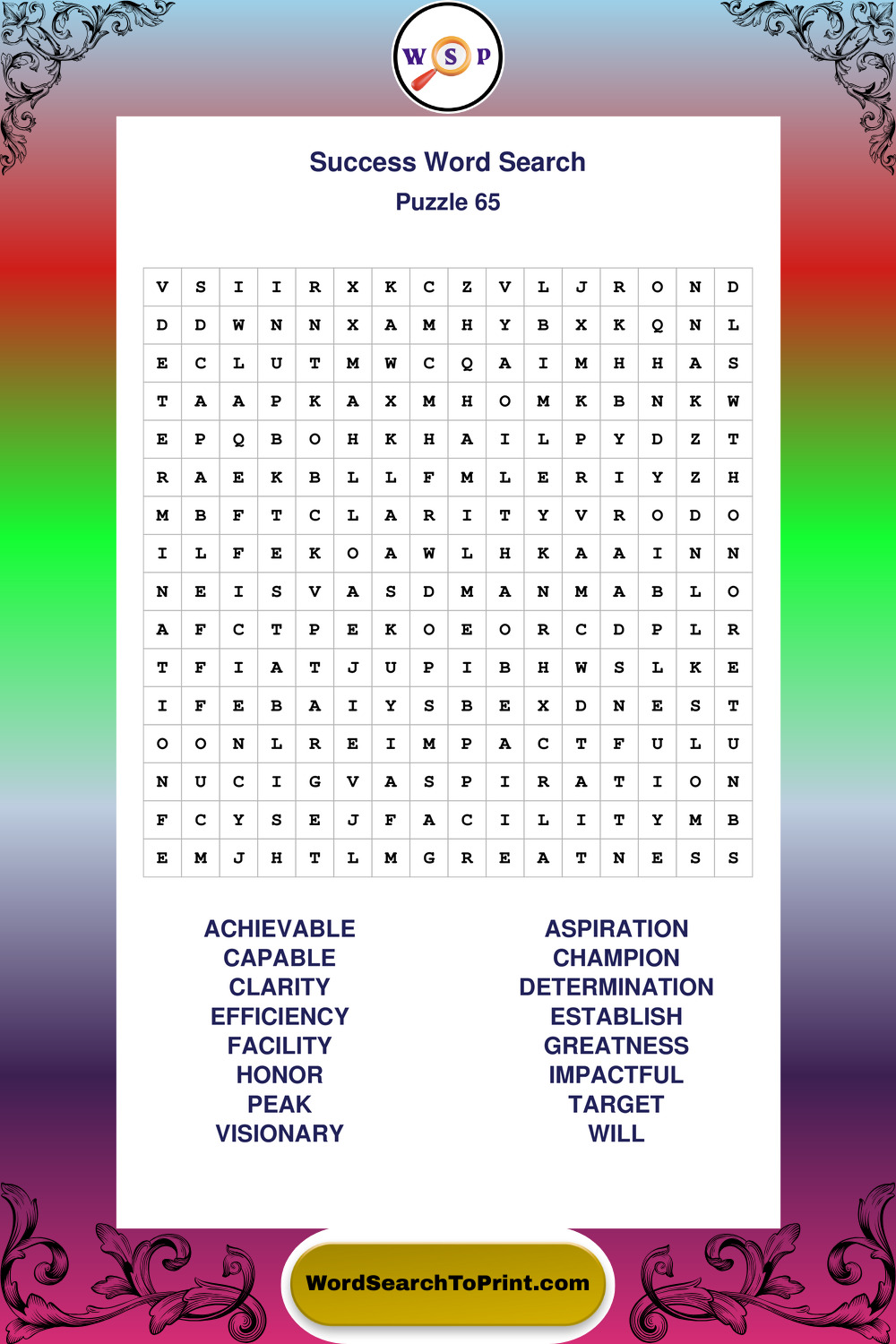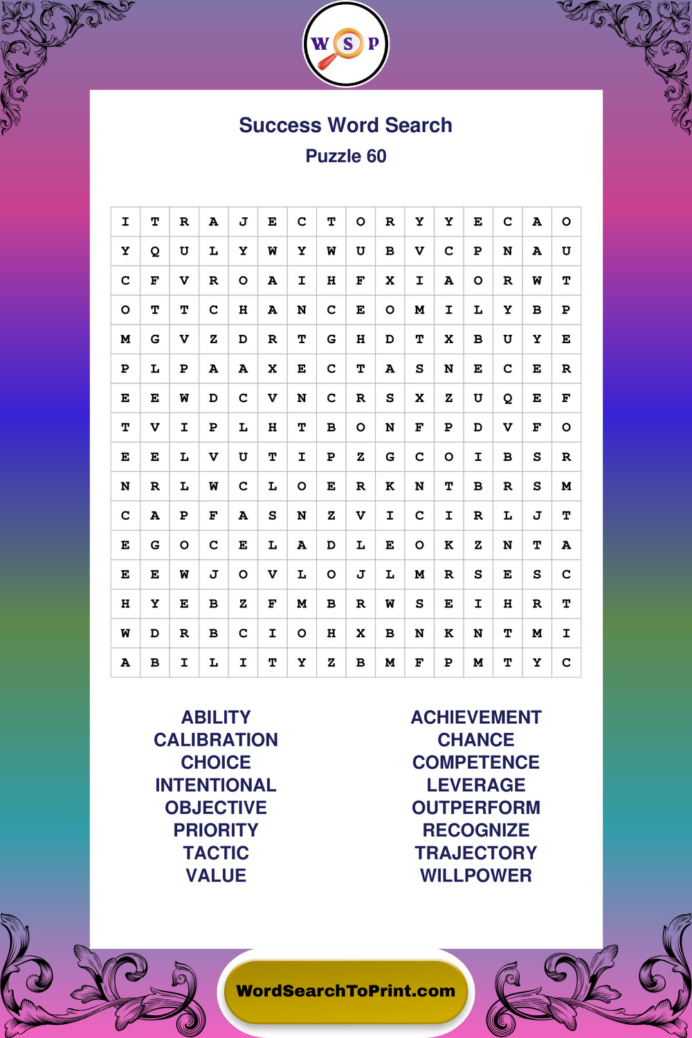 Printable Success Wordsearch Puzzles