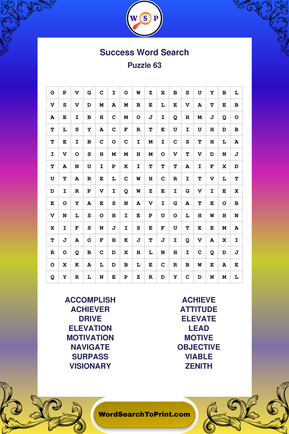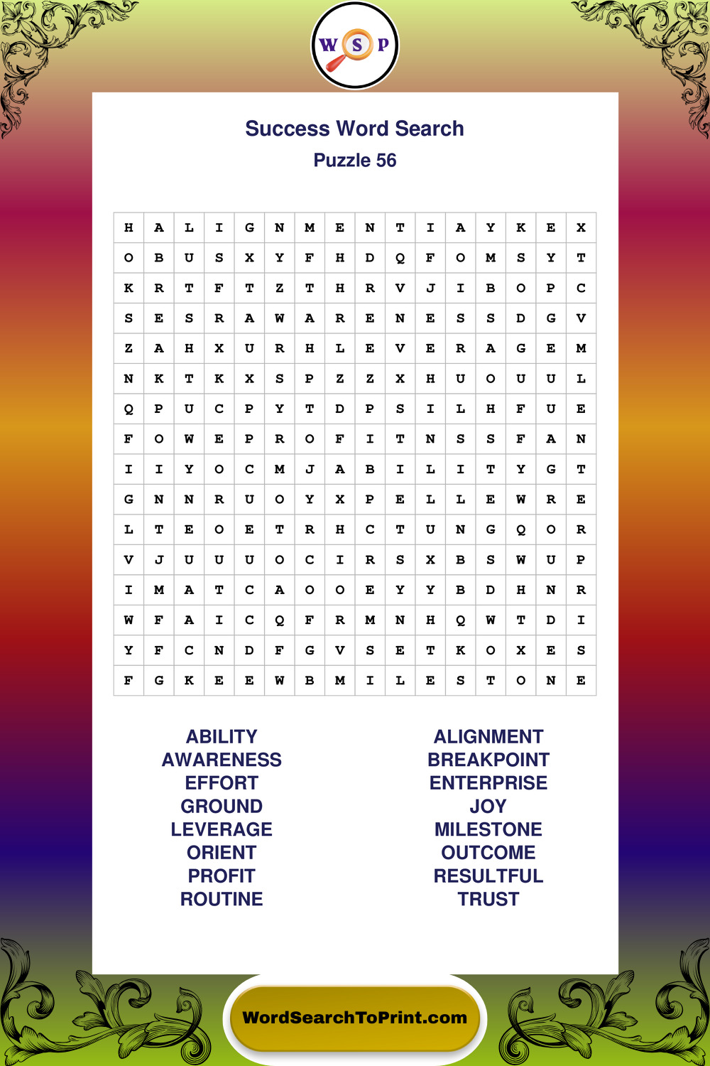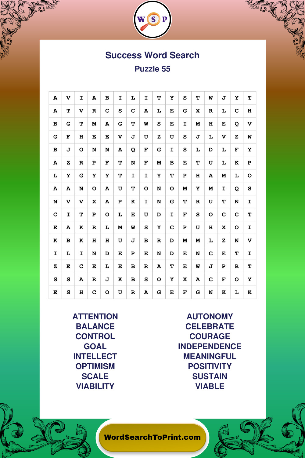 Printable Success Wordsearch Puzzles