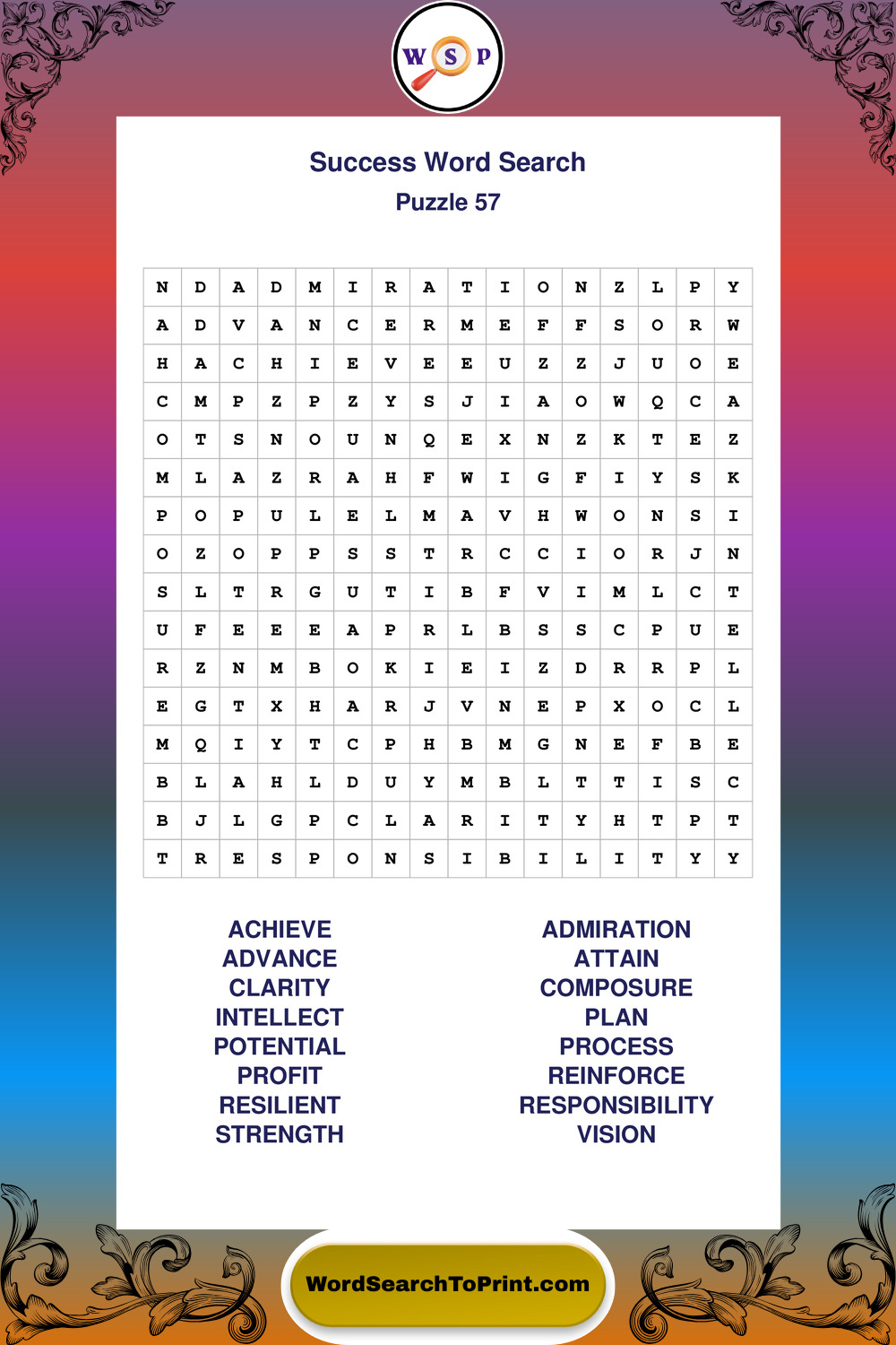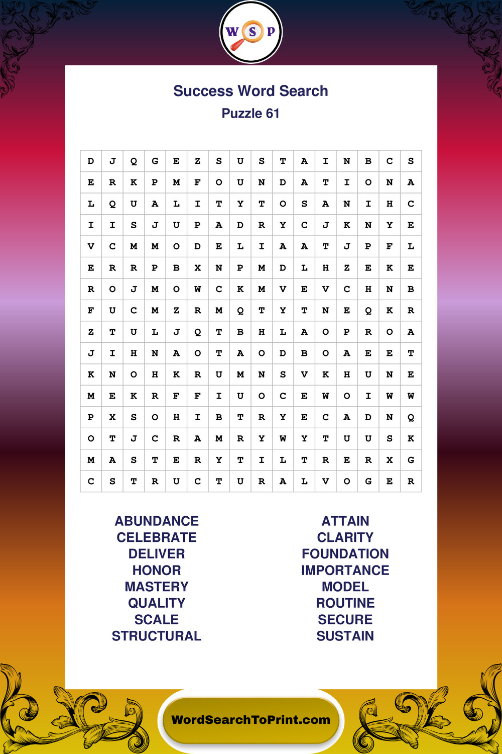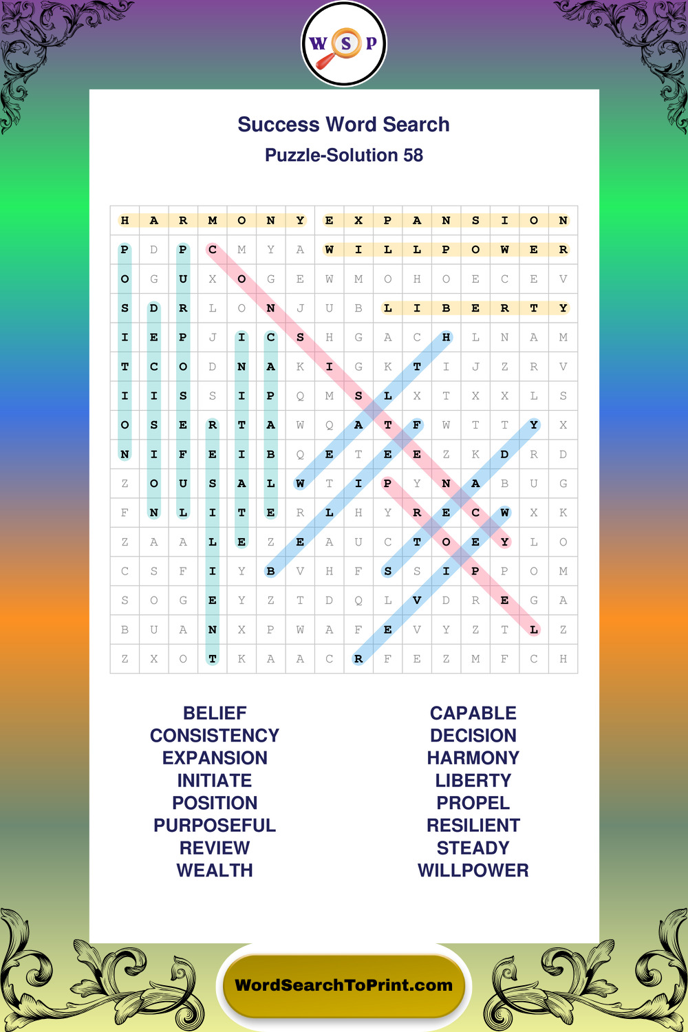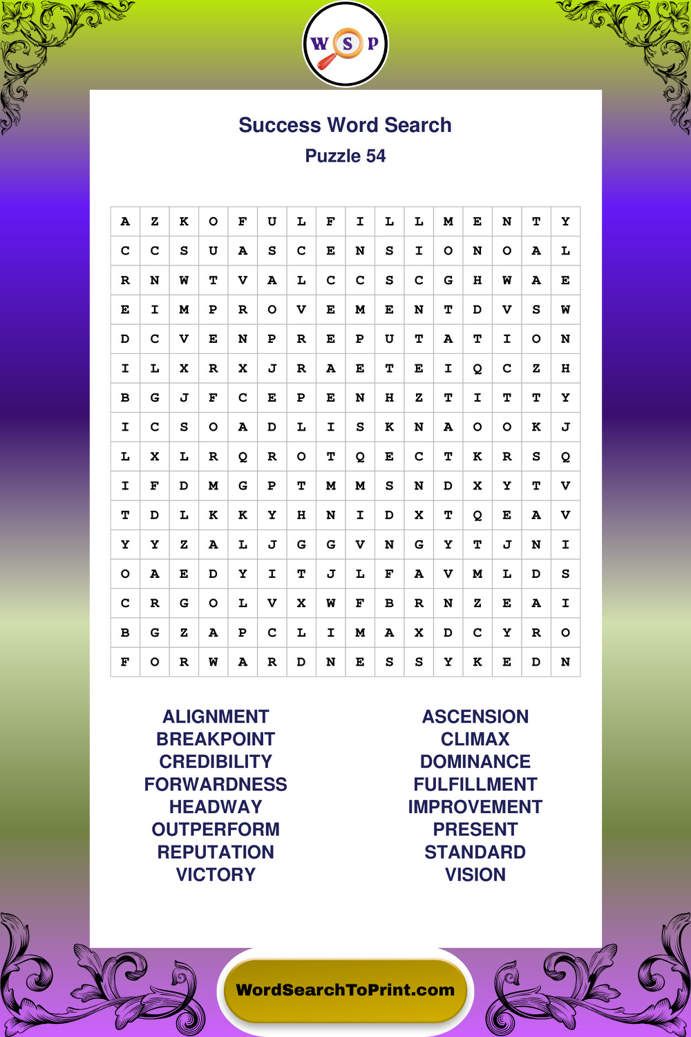 Printable Success Wordsearch Puzzles