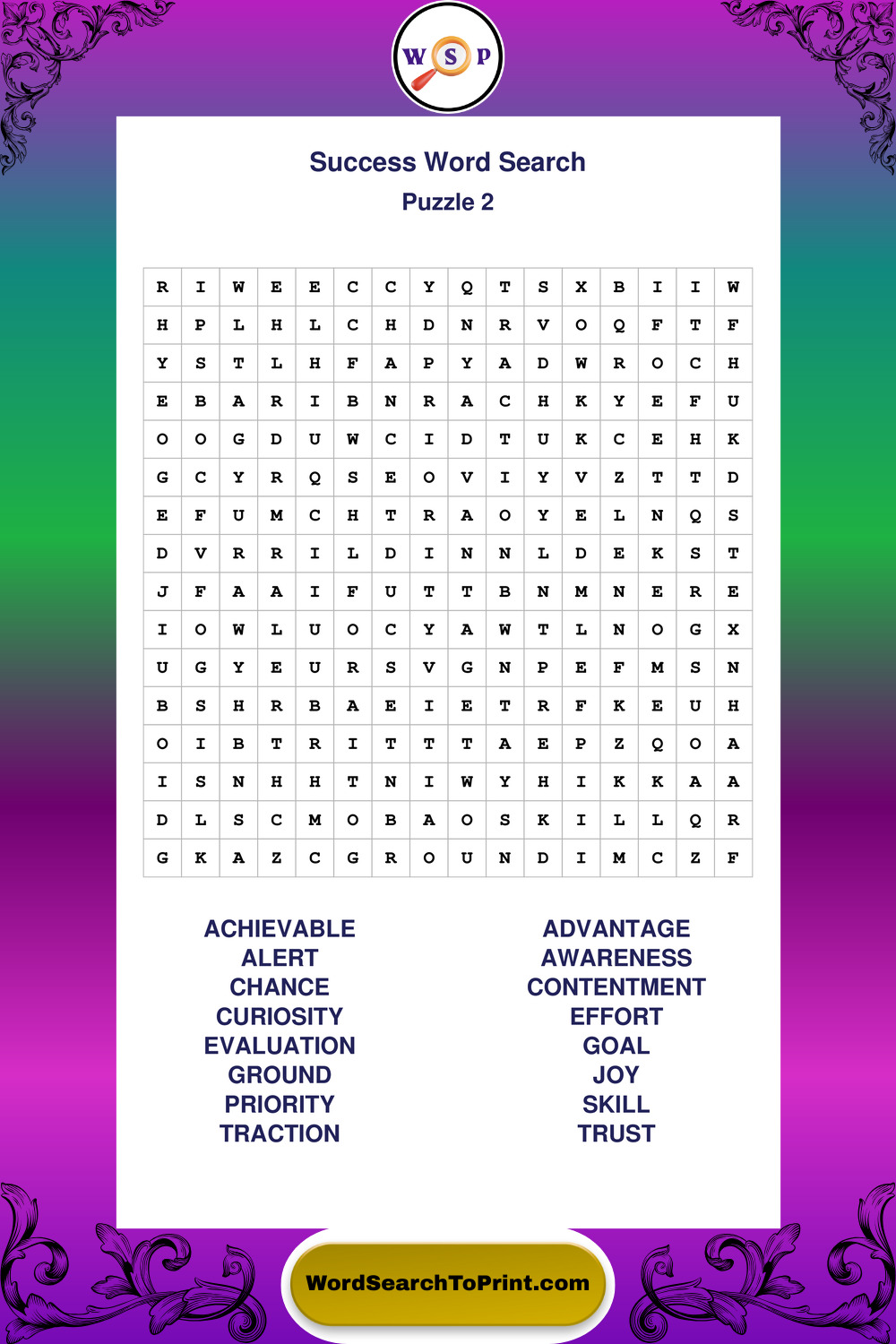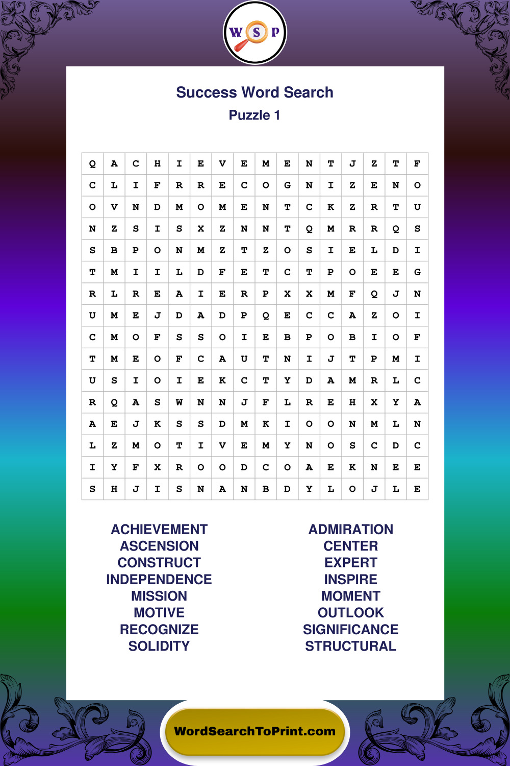 Printable Success Wordsearch Puzzles