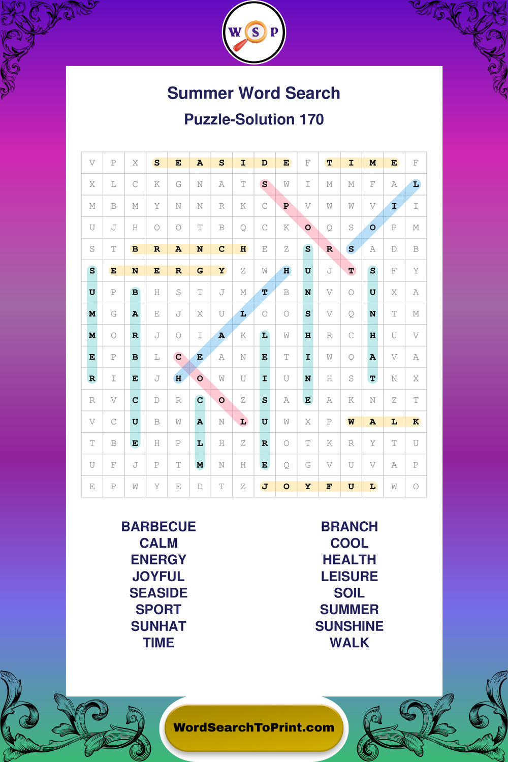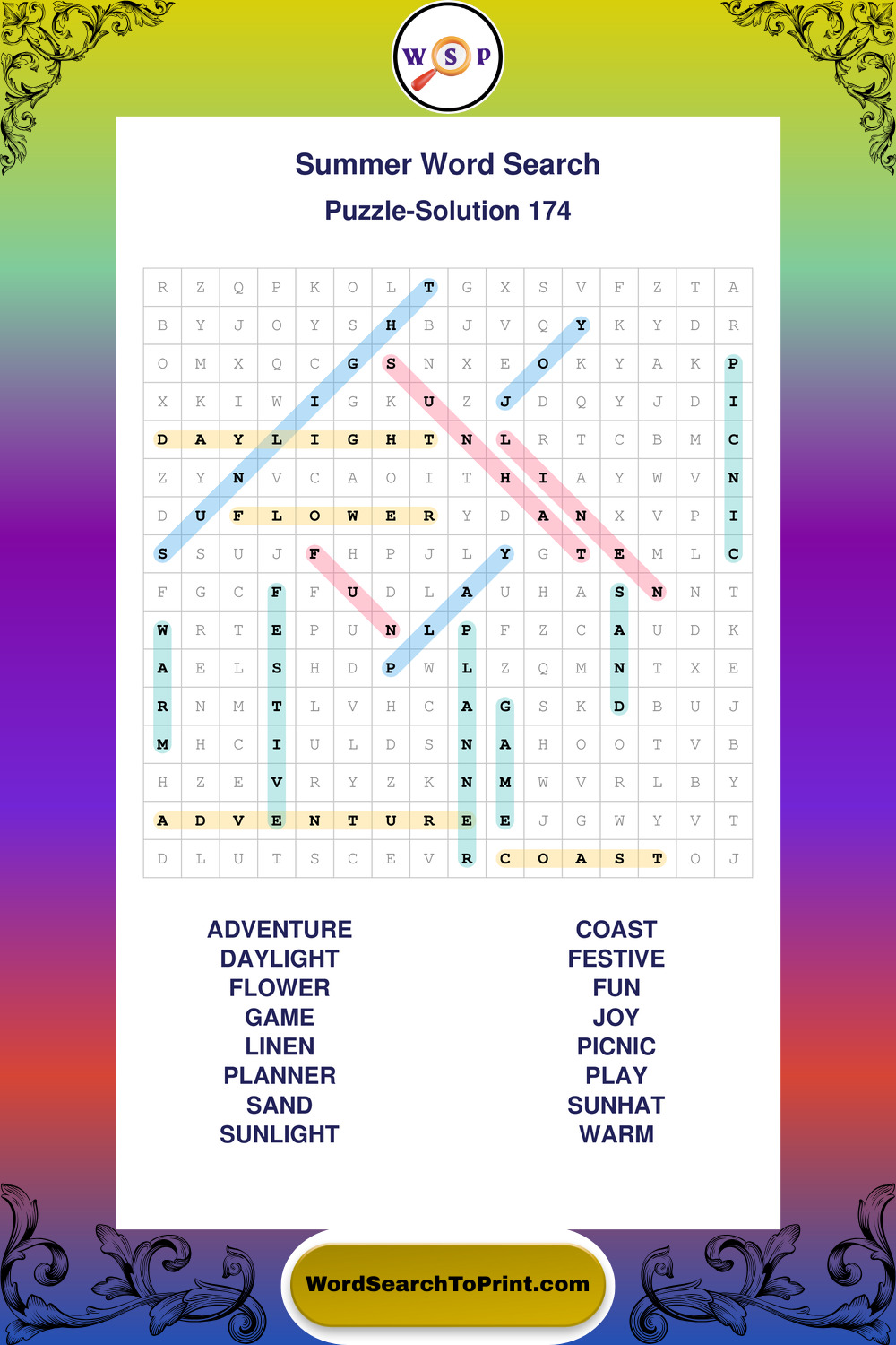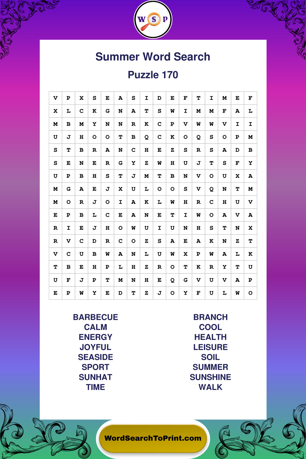Printable Summer Wordsearch Puzzles